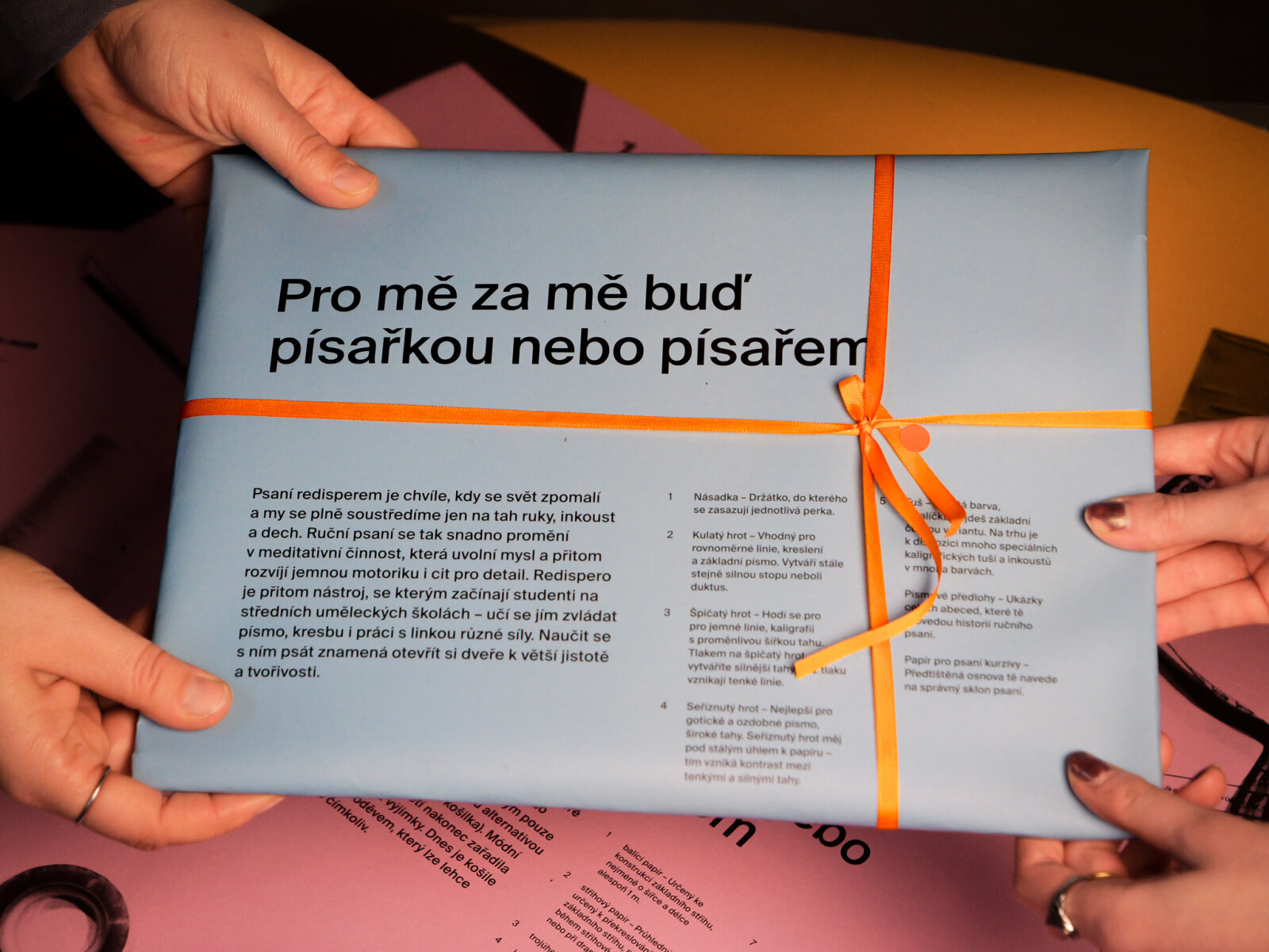 Balíček obsahuje podrobný postup a všechny potřebné rady spolu s těmito pomůckami: redispero s násadkami, černý inkoust, předlohy historických písem, směs kaligrafických a dalších papírů, papíry pro nácvik kurzívy