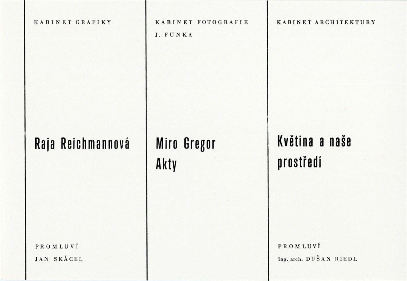 Raja Reichmannová: Dům umění města Brna/ Dům pánů z Kunštátu, 82. výstava Kabinetu grafiky, 7. 4. – 28. 4. 1967/ Text: Ludvik Kundera. – Brno: DUmB, 1967. – skládačka, 6 s., obr., DPK 337. – MZK; MG; MMB