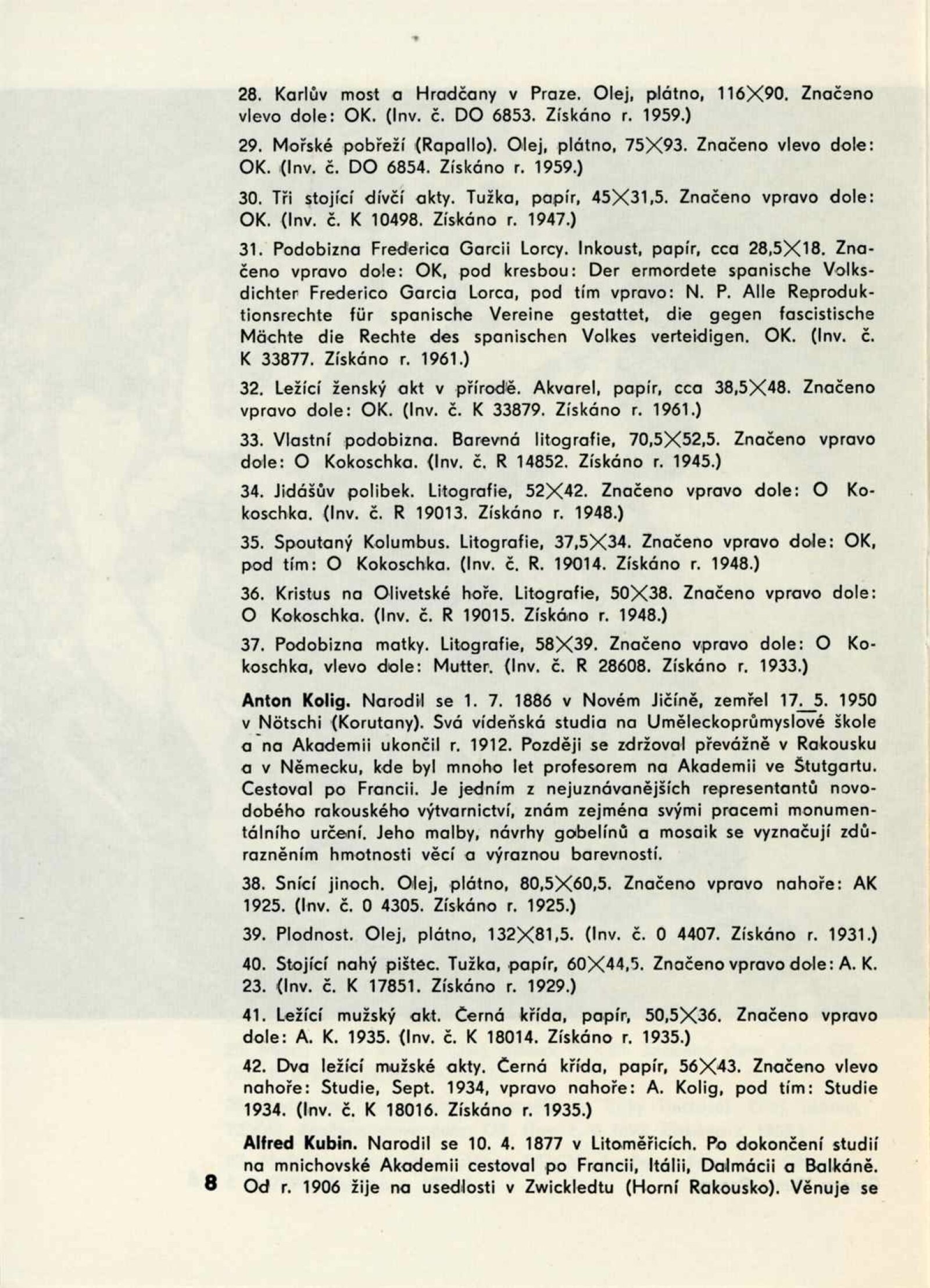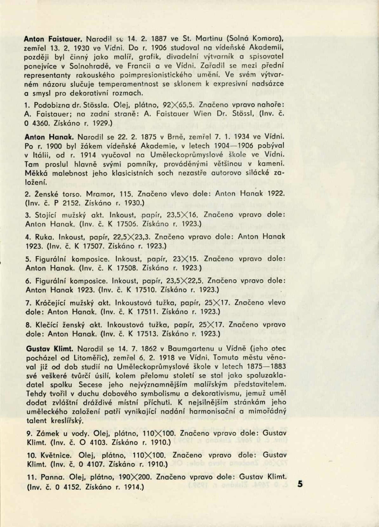 Rakouské umění 20. století: Dům umění města Brna, 1. patro, 23. 5. – 30. 6. 1963 / Text: Jaromír Zemina. – Brno: DUmB, 1963. – 10 s., obr., životní data, odborné popisy, DU 426. – MZK; MG
