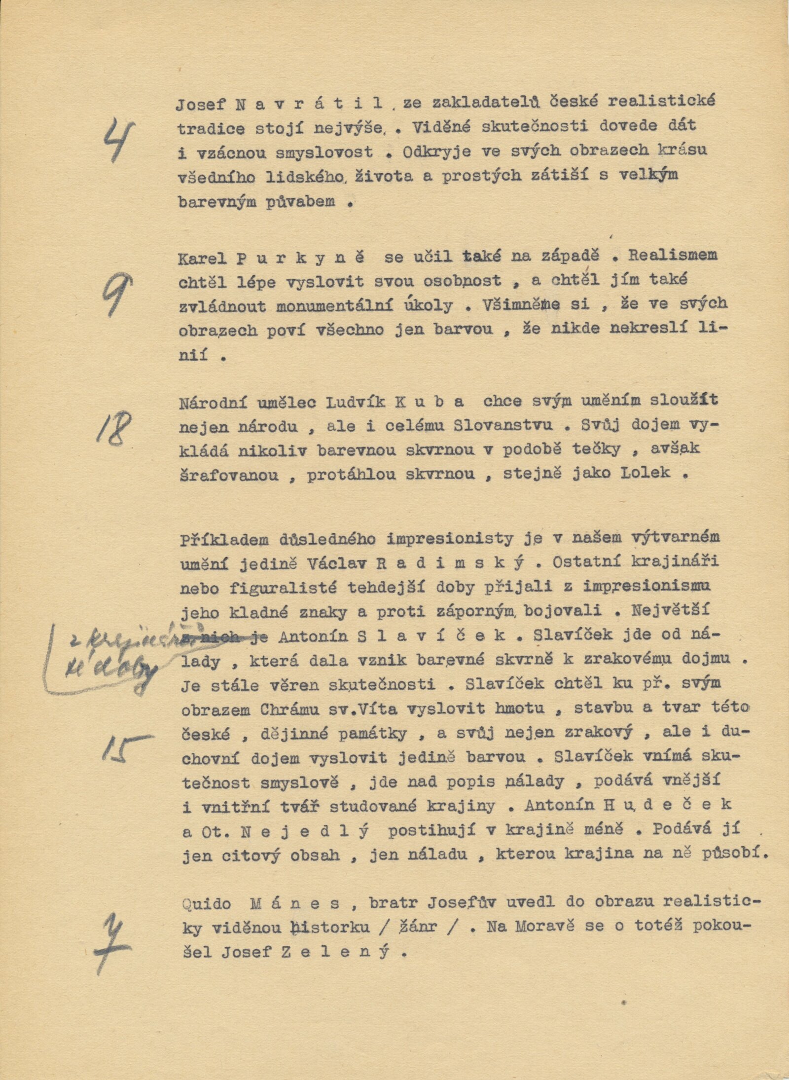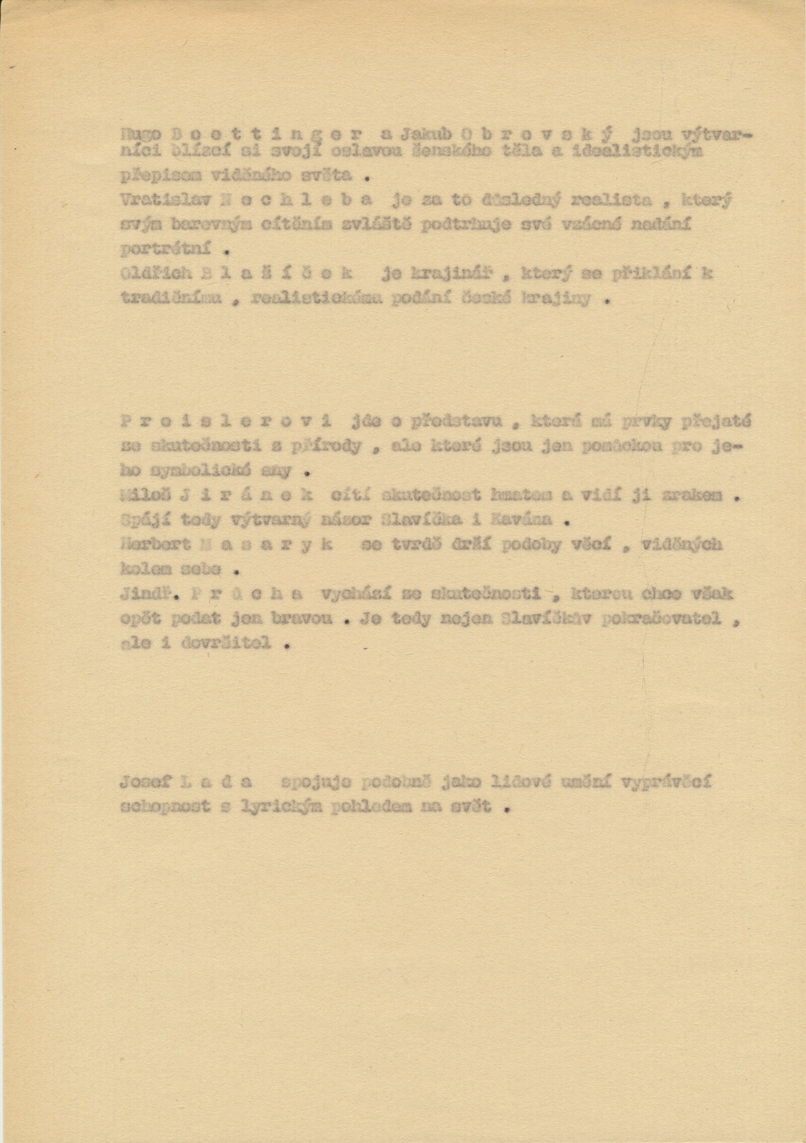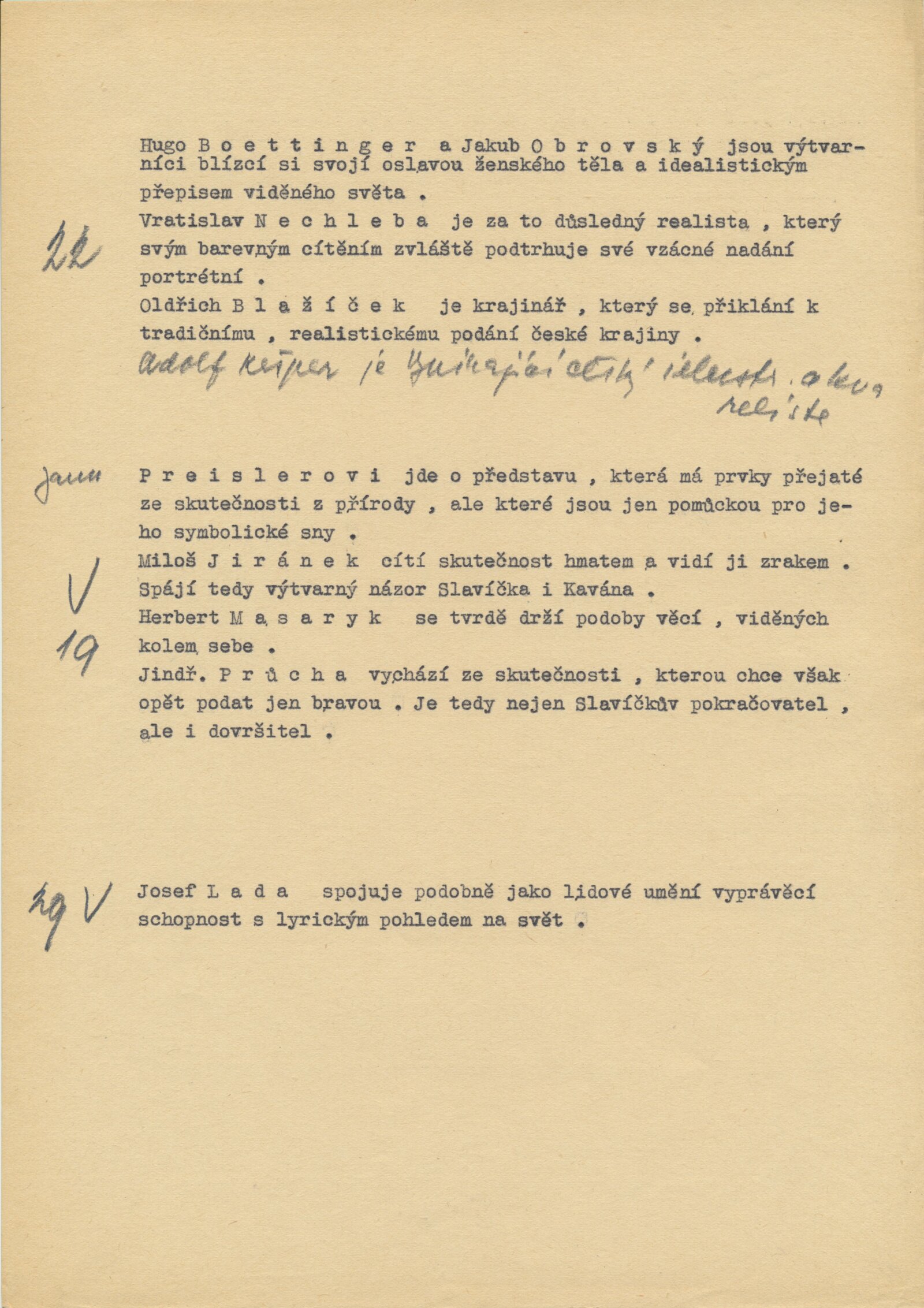 Jan Preisler, Miloš Jiránek, Jaroslav Průcha, Herbert Masaryk, Josef Čapek, Jan Zrzavý, Vlastimil Rada, Rudolf Kremlička, Otokar Kubín, Bohumil Kubišta, Emil Filla, Adolf Kašpar, Oldřich Blažíček, Jaroslav Orlovský, Vratislav Nechleba, Hugo Böttinger, František Šimon, Karel Špillar, Alfons Mucha, Augustin Němejc, Roman Havelka, Bohumil Dvořák, František Kaván, Stanislav Lolek, Alois Kalvoda, Josef Jambor, Otokar Nejedlý, Antonín Slavíček, Václav Radimský, Antonín Hudeček, Julius Mařák, Antonín Chittussi, Hanuš Schweiger, Václav Brožík, Vojtěch Hynais, Luděk Marold, Jaroslav Čermák, Soběslav Pinkas, Viktor Barvitius, Josef Mánes, Quido Mánes, Josef Zelený, Antonín Mánes, Adolf Kosárek, Hugo Ullik, Antonín Machek, Václav Tkadlík, Karel Holan, Vincenc Beneš, Bořivoj Župan, Bohumil Dvorský, Miloslav Holý, Vladimír Hroch, Vojtěch Sedláček, Václav Rabas, Janko Alexy, Mikuláš Gelanda, Cyprián Majerník, Eugen Lehotský, Eduard Milén, Linka Procházková, Jaroslav Král, Milan Mitrovský, František Foltýn, Jaroslav Dvořáček, Vincenc Makovský, Karel Pokorný, Josef Brož, Jaroslav Kousal, Jan Čumpelík, František Tkadlík, Felix Jenewein