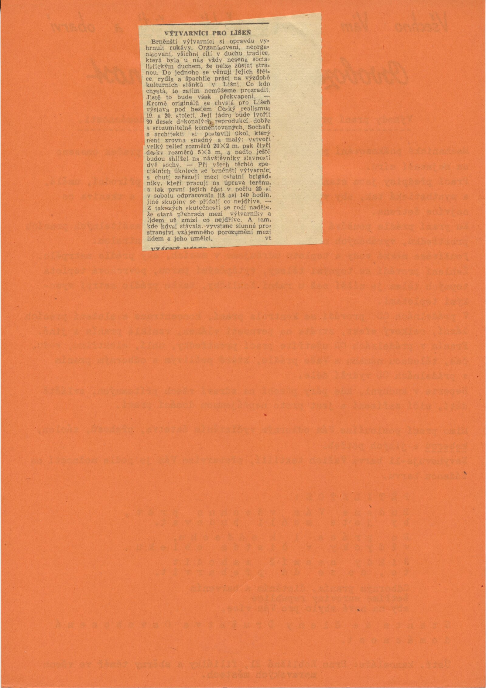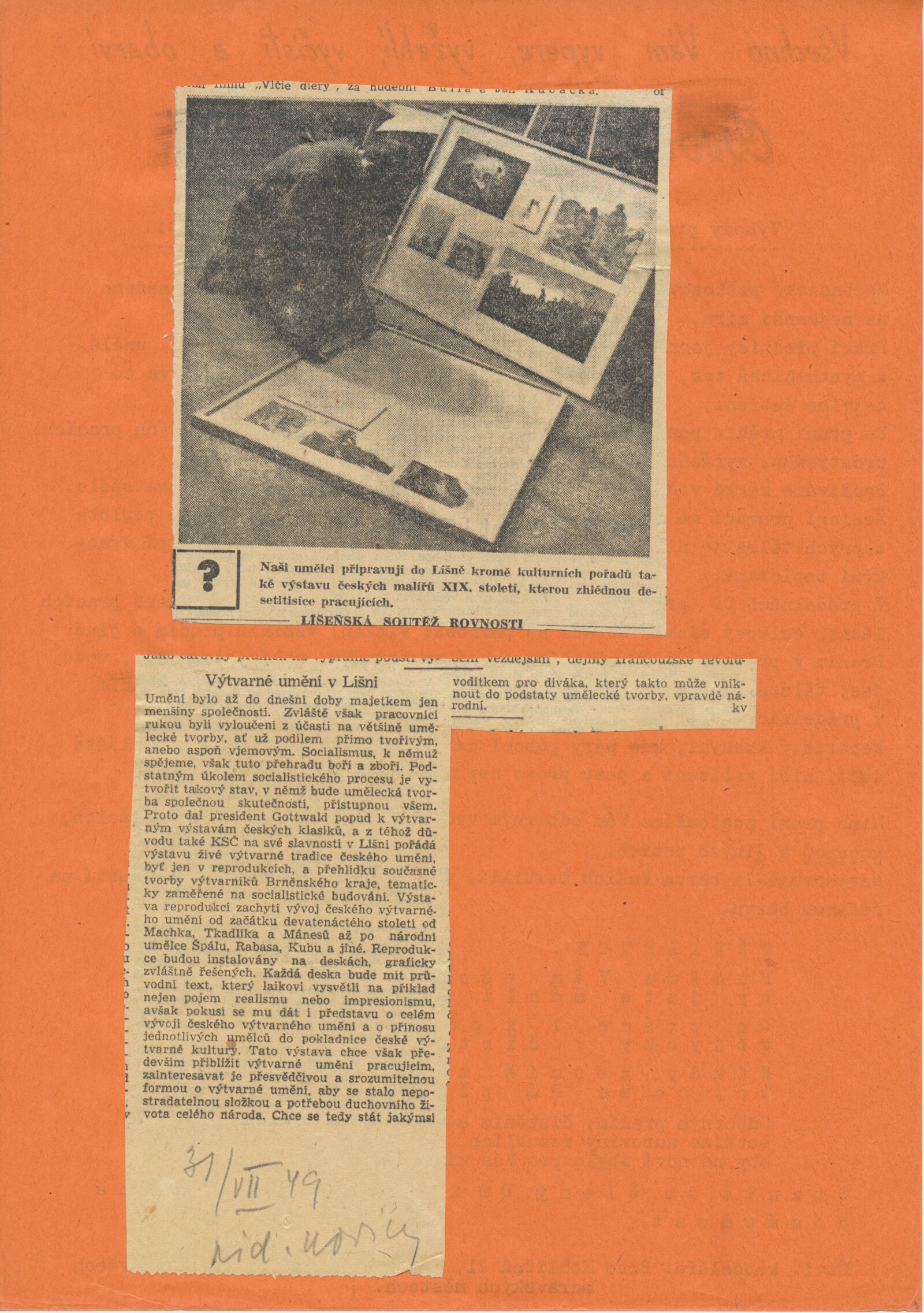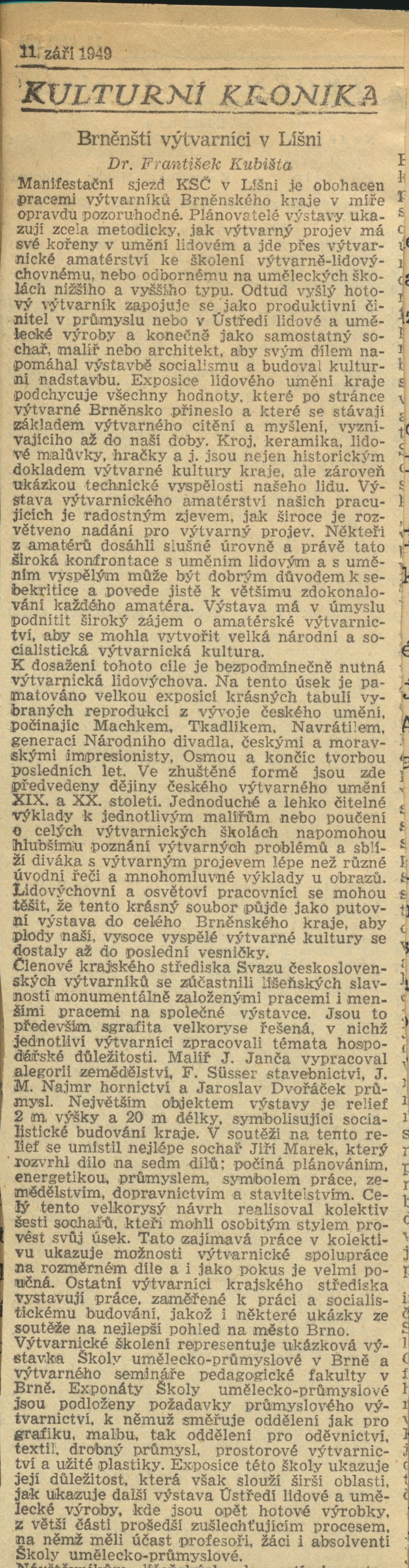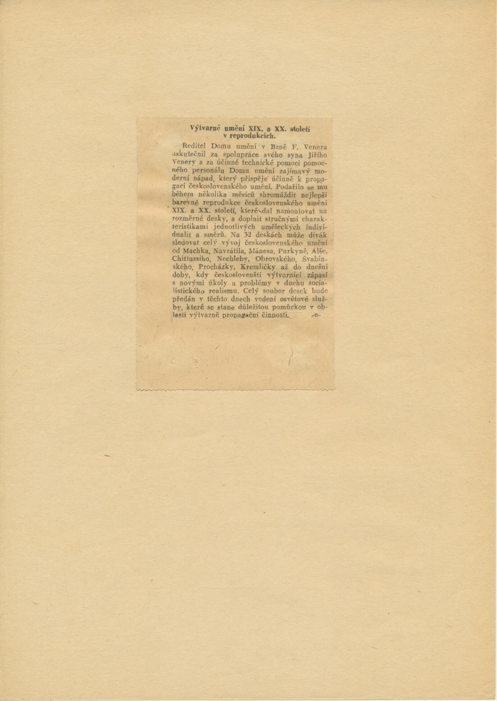 seznam umělců, medailony jednotlivých autorů, korespondence (Václav Rabas, Jan Zrzavý), provozní korespondence, recenze v tisku