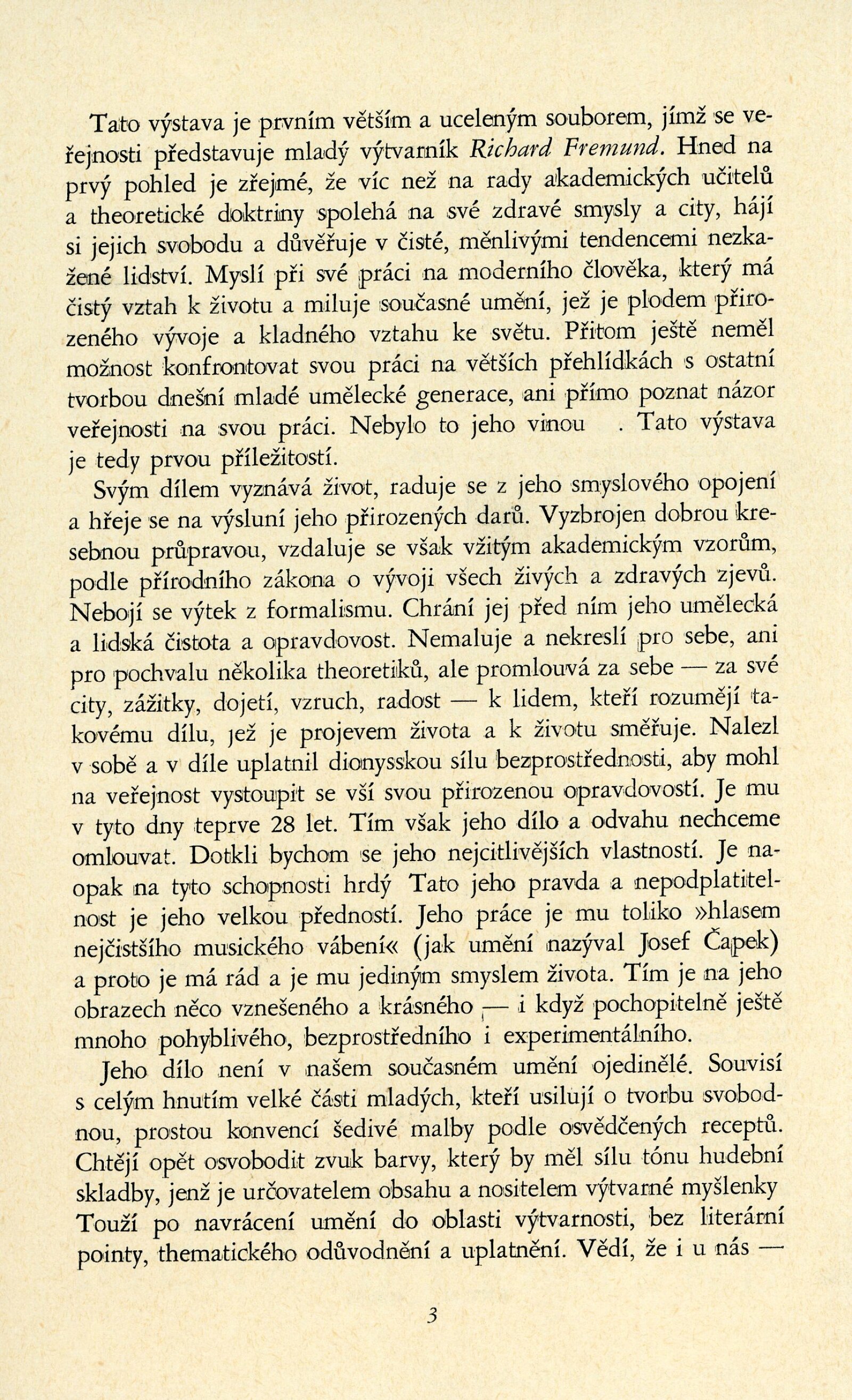 Richard Fremund: Dům umění, 24. 6. – 15. 7. 1956 / Text: Helena Motalová. – Brno: DUmB, 1956. – skládačka, 6 s., obr., DU 258. – MMB
