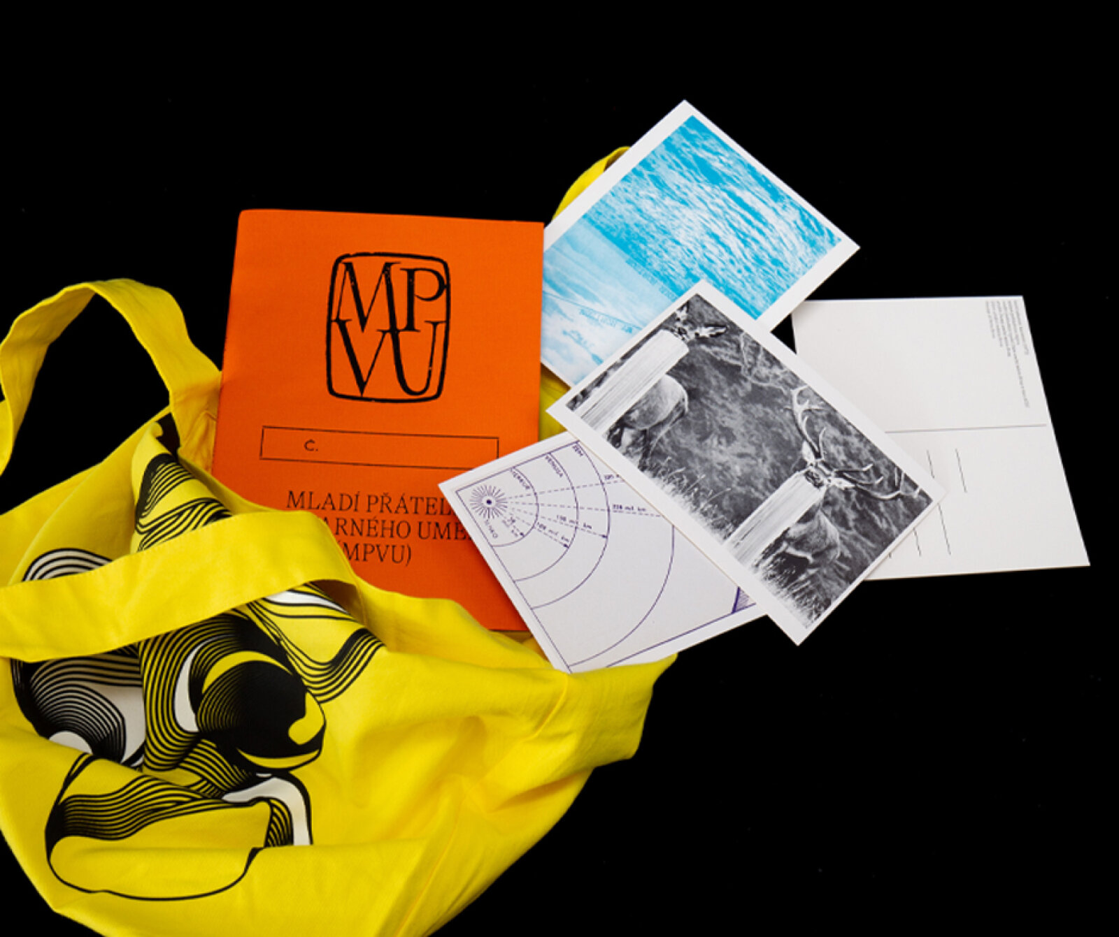 Taška obsahuje knížku Mladí přátelé výtvarného umění (MPVU) a pár pohlednic z reedice série autorských pohlednic, kterou MPVU vydalo v roce 1972.