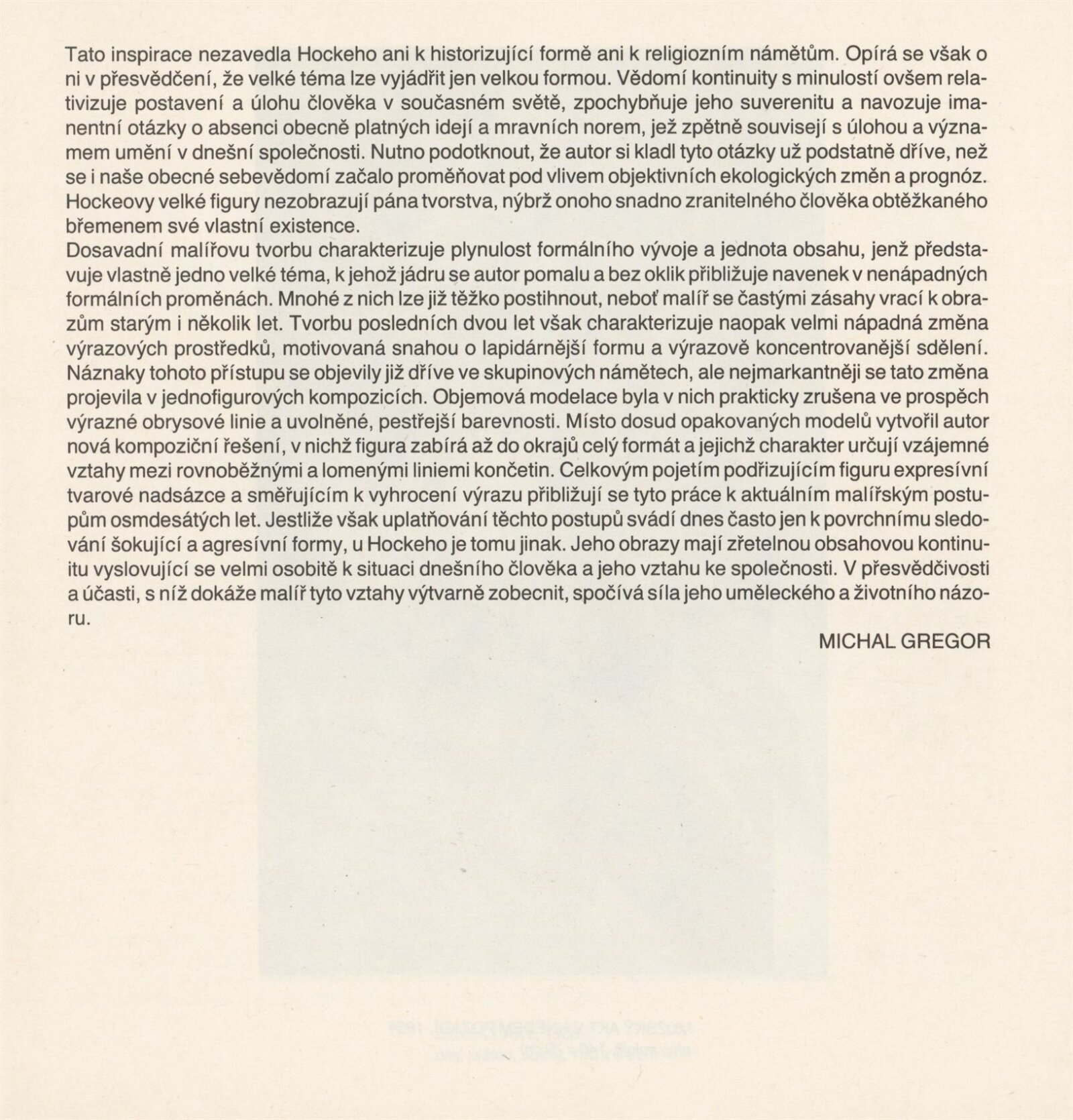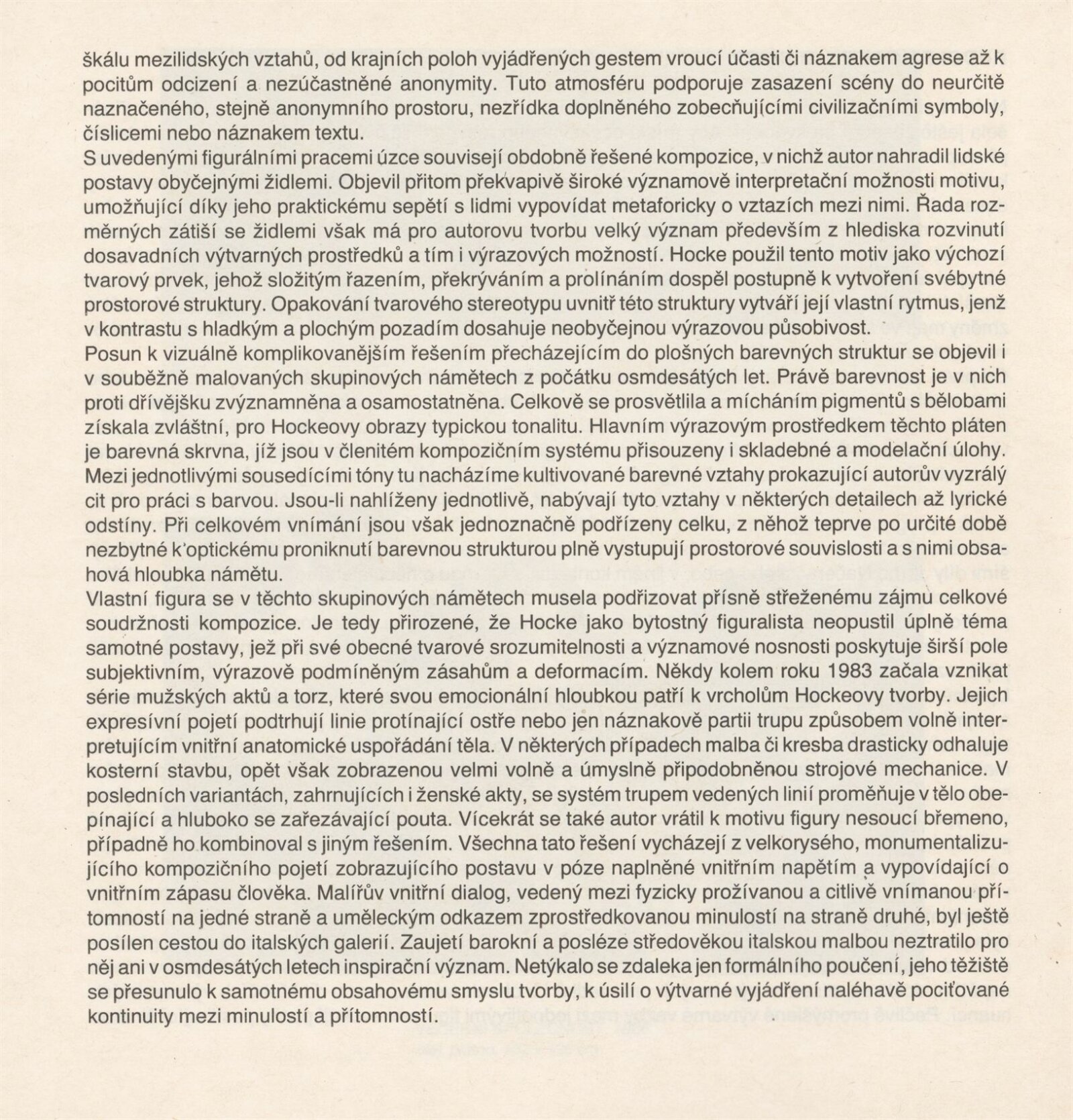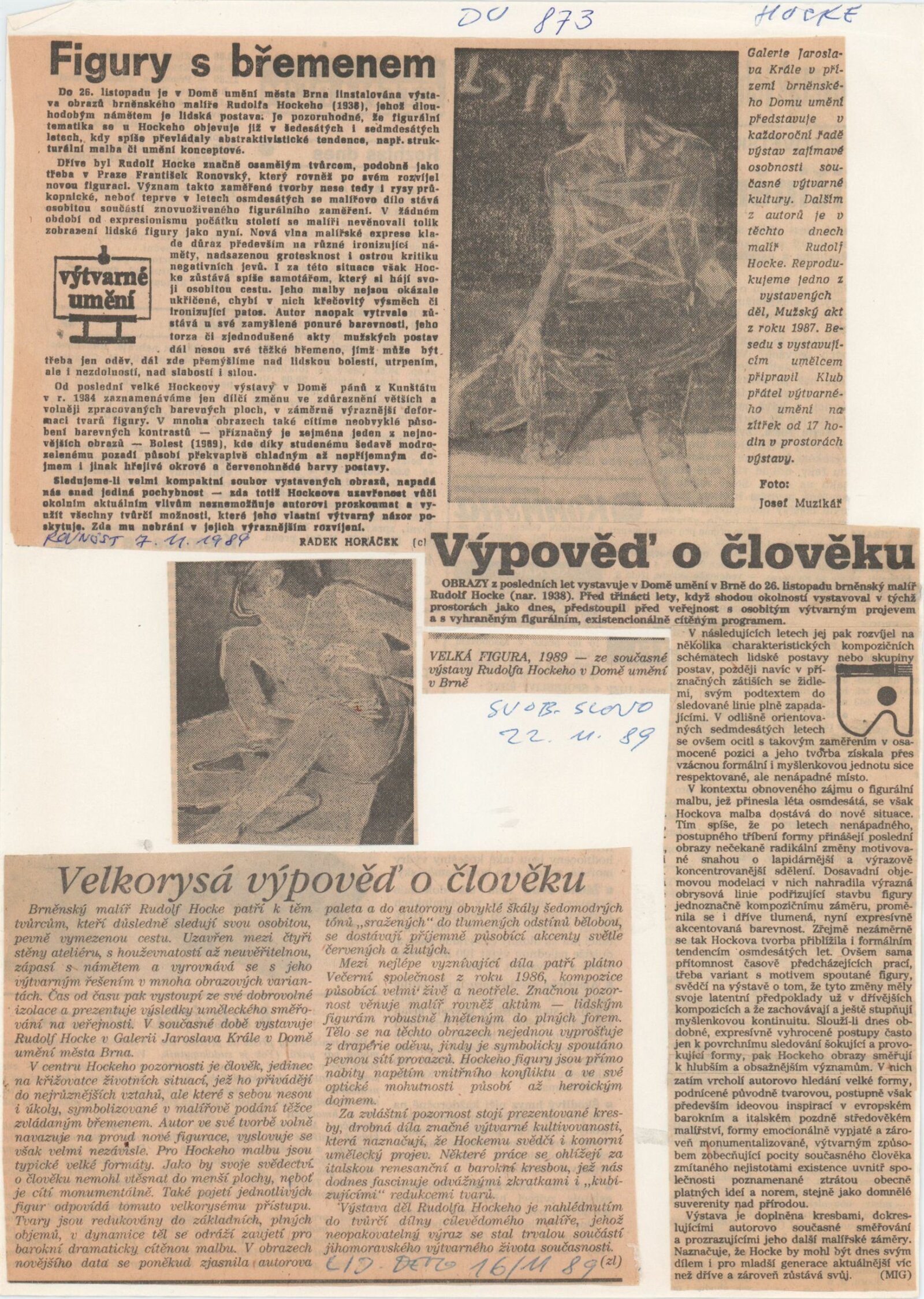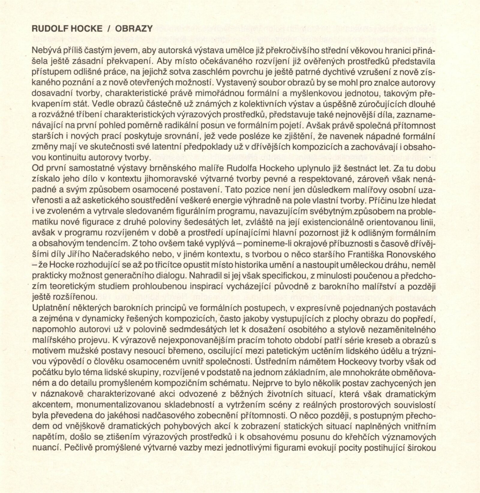 Rudolf Hocke. Obrazy, kresby: Dům umění, 153. výstava v Galerii Jaroslava Krále, 17. 10. – 26. 11. 1989 / Text: Michal Gregor. – Brno: ČFVU-Dílo, 1989. – [16] s., obr., životní data, výstavy, obrazy ve sbírkách, DU 873