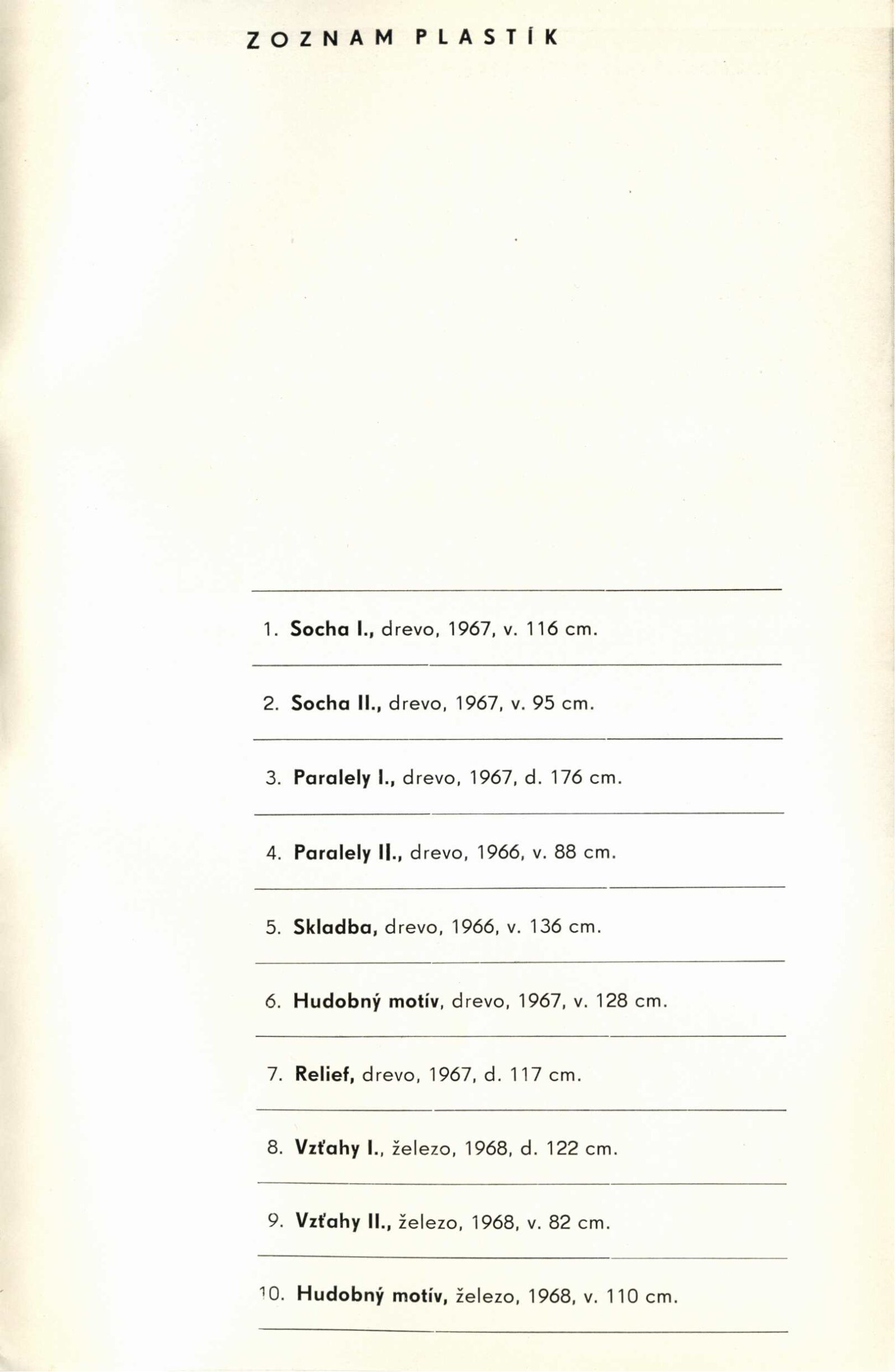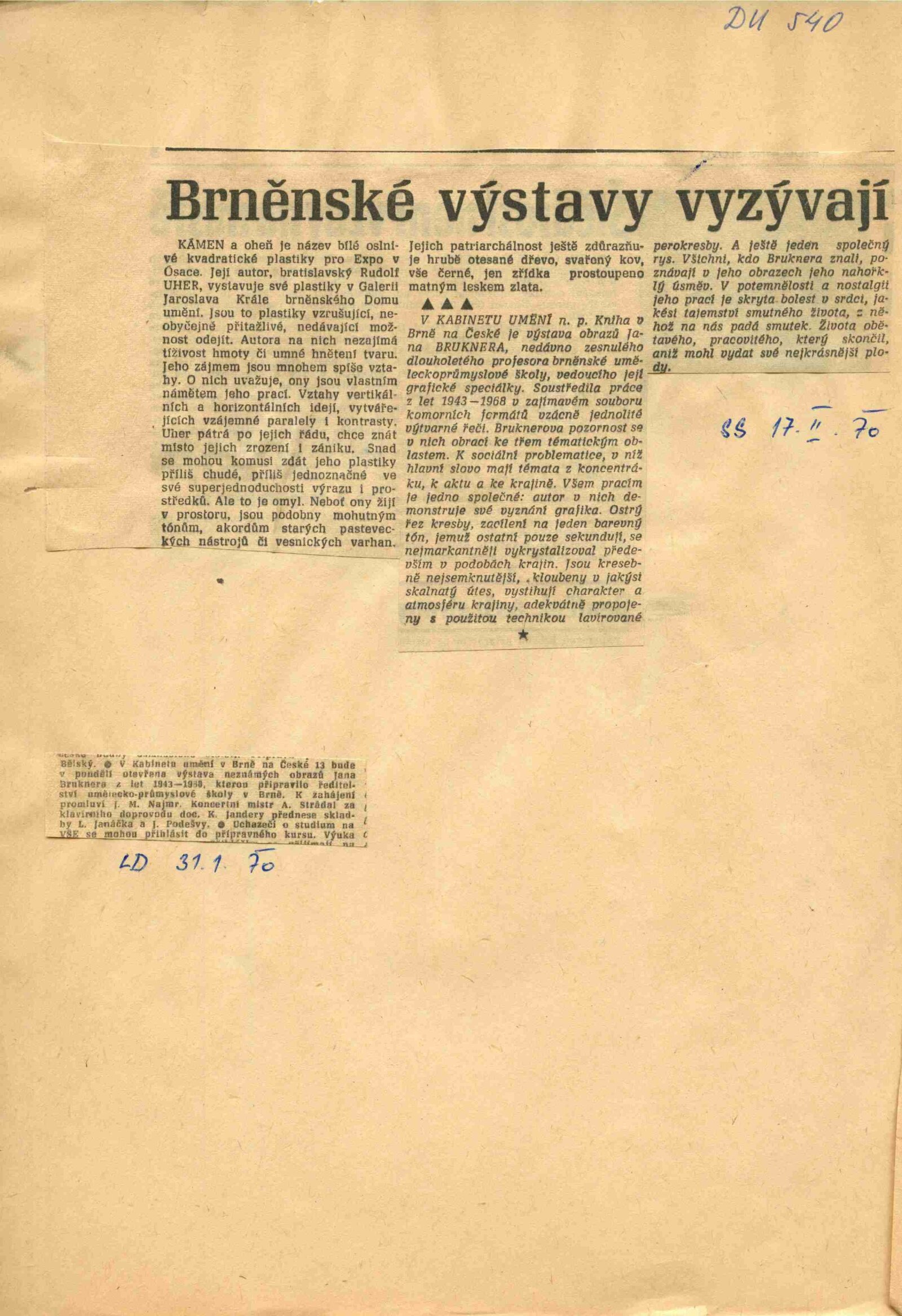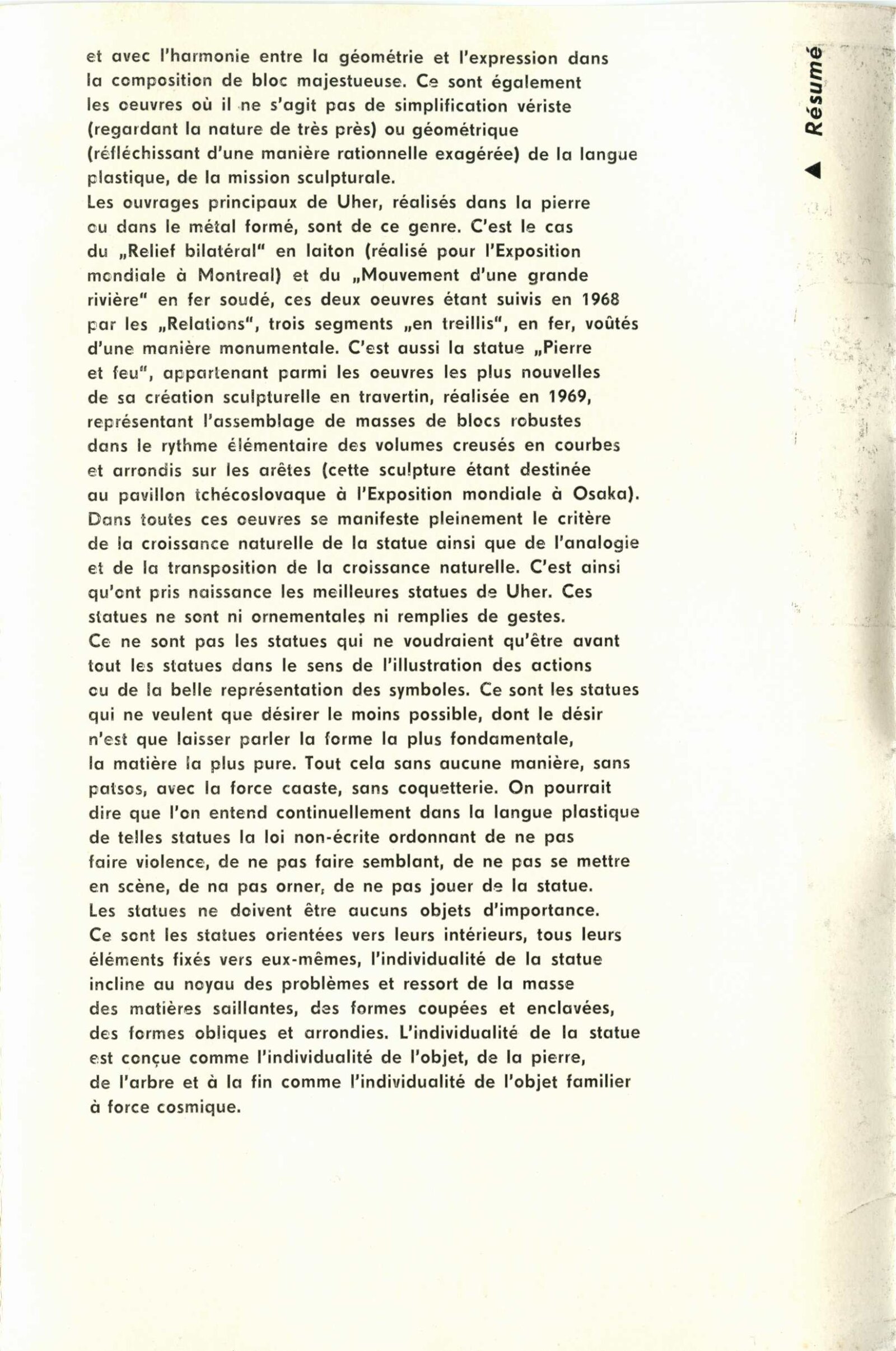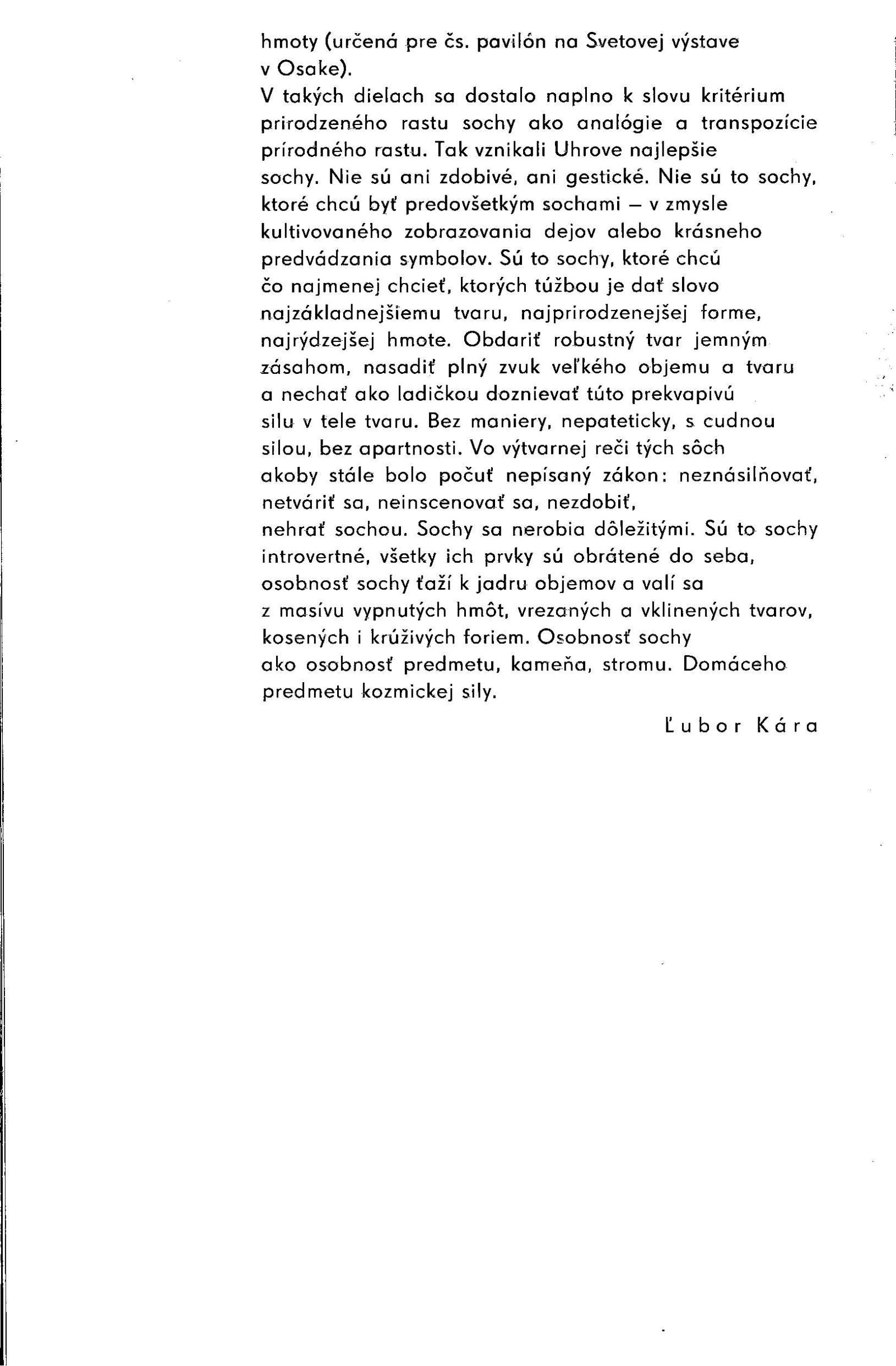 Rudolf Uher. Plastiky: Dům umění, 30. výstava v Galerii Jaroslava Krále, 17. 1. 1970 – 22. 2. 1970 / Text: Lubor Kára. – Brno: ČFVU, 1970. – 10 s., obr., portrét, životopis, DU 540. – MZK; MG; MMB