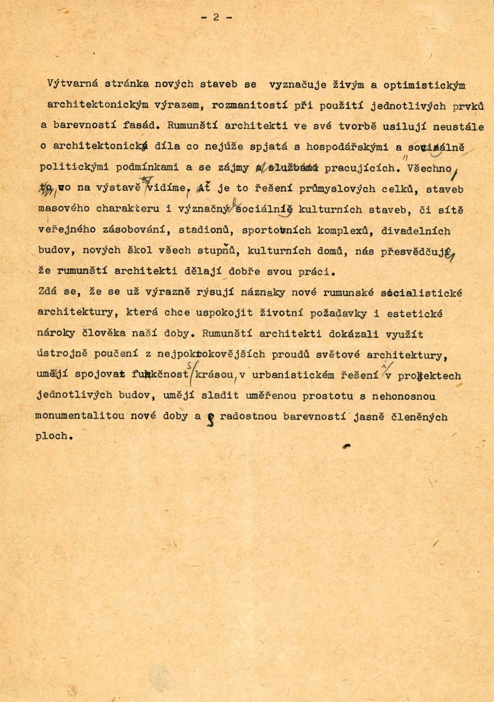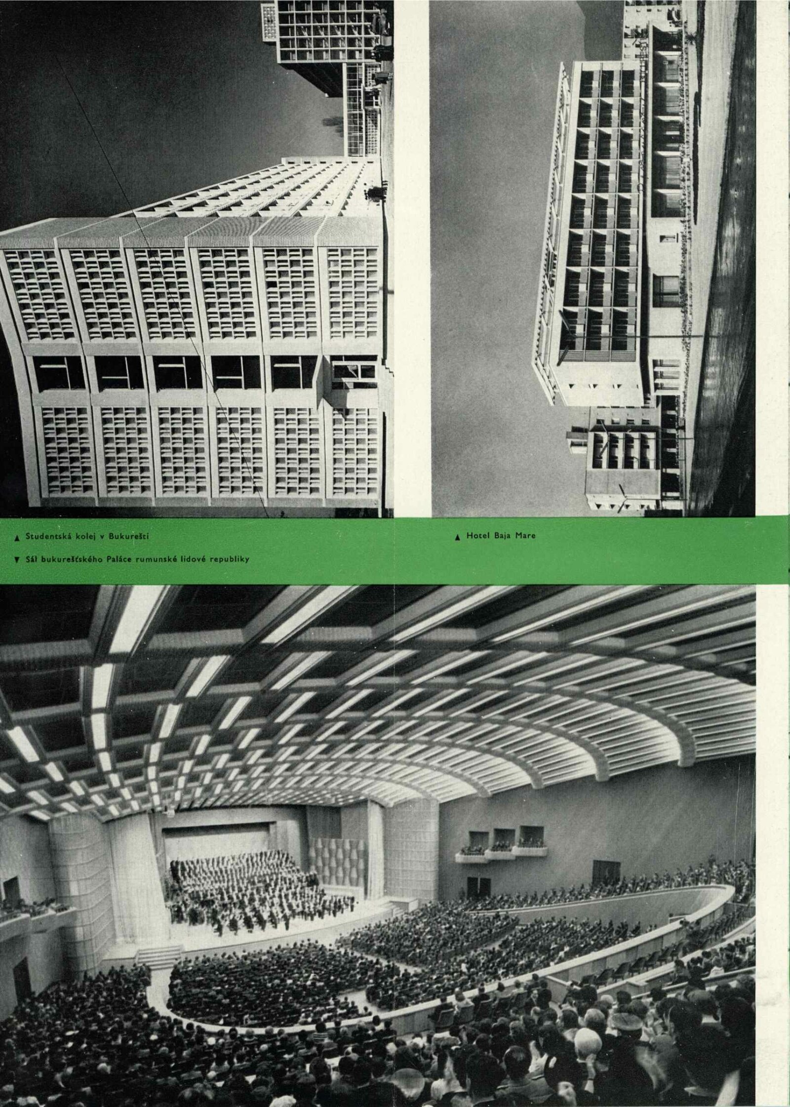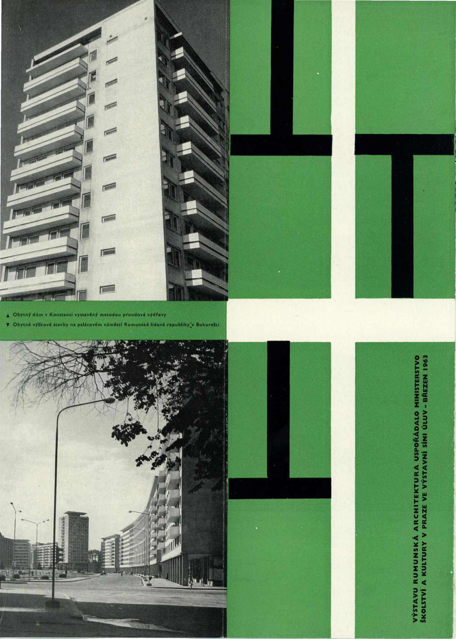 Rumunská architektura: Dům umění města Brna, Galerie Jaroslava Krále, 17. 5. – 30. 6. 1963 / Převzatý katalog. Rumunská architektura. Výstava obytných domů a kulturních zařízení: Praha, výstavní síň ÚLUV, březen 1963 / Praha: ministerstvo školství a kultury, 1963. – skládačka, 16 s., obr., DU 424
