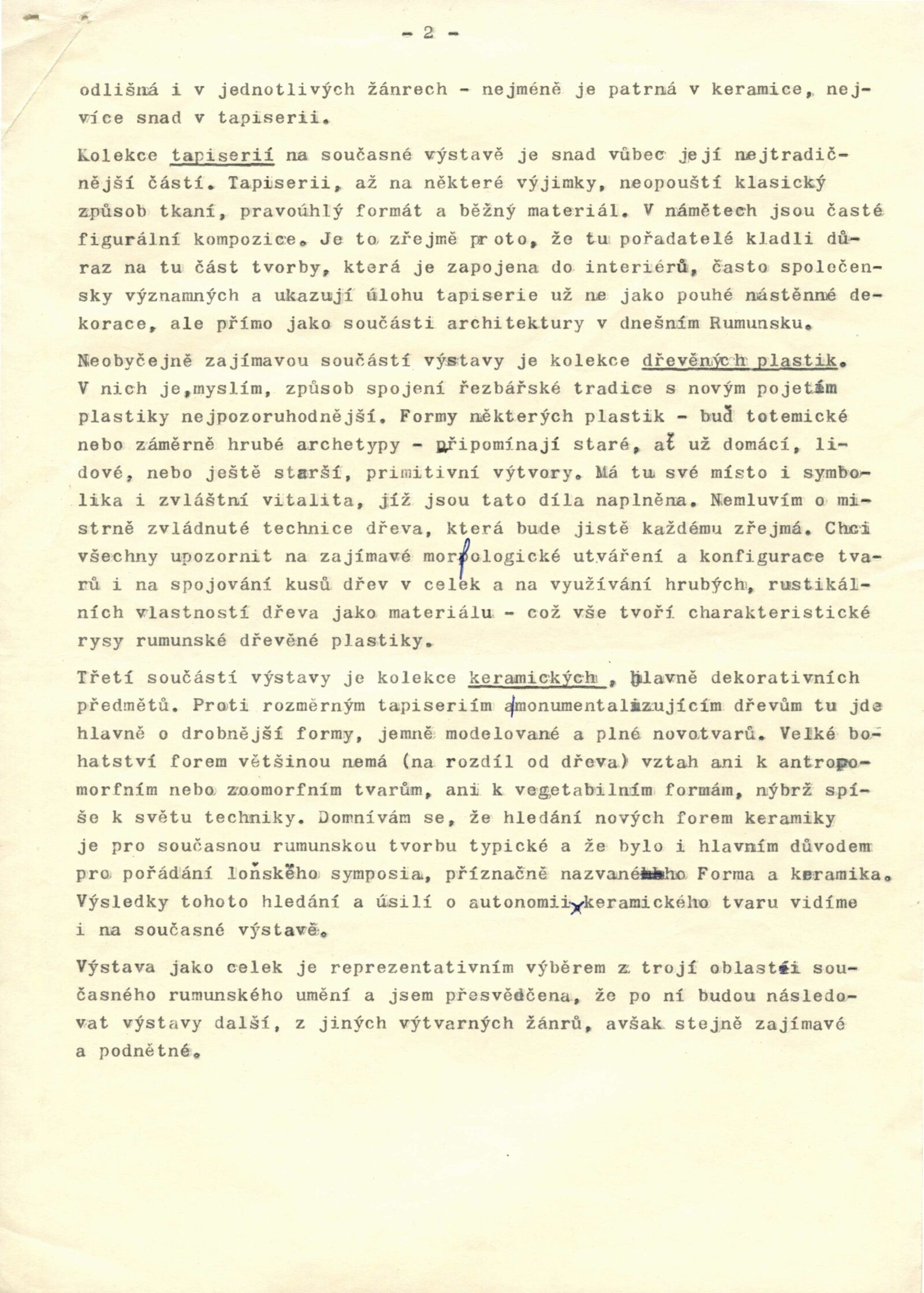 Rumunská tapisérie, dřevěná plastika, keramika: Dům umění města Brna, 16. 10. – 18. 11. 1973 / Převzatý katalog. Rumunská tapiserie, dřevěná plastika a keramika: Galerie umění Karlovy Vary, srpen–září 1973 / Karlovy Vary: Galerie umění, 1973. – 9 volných listů, DU 597. – MZK