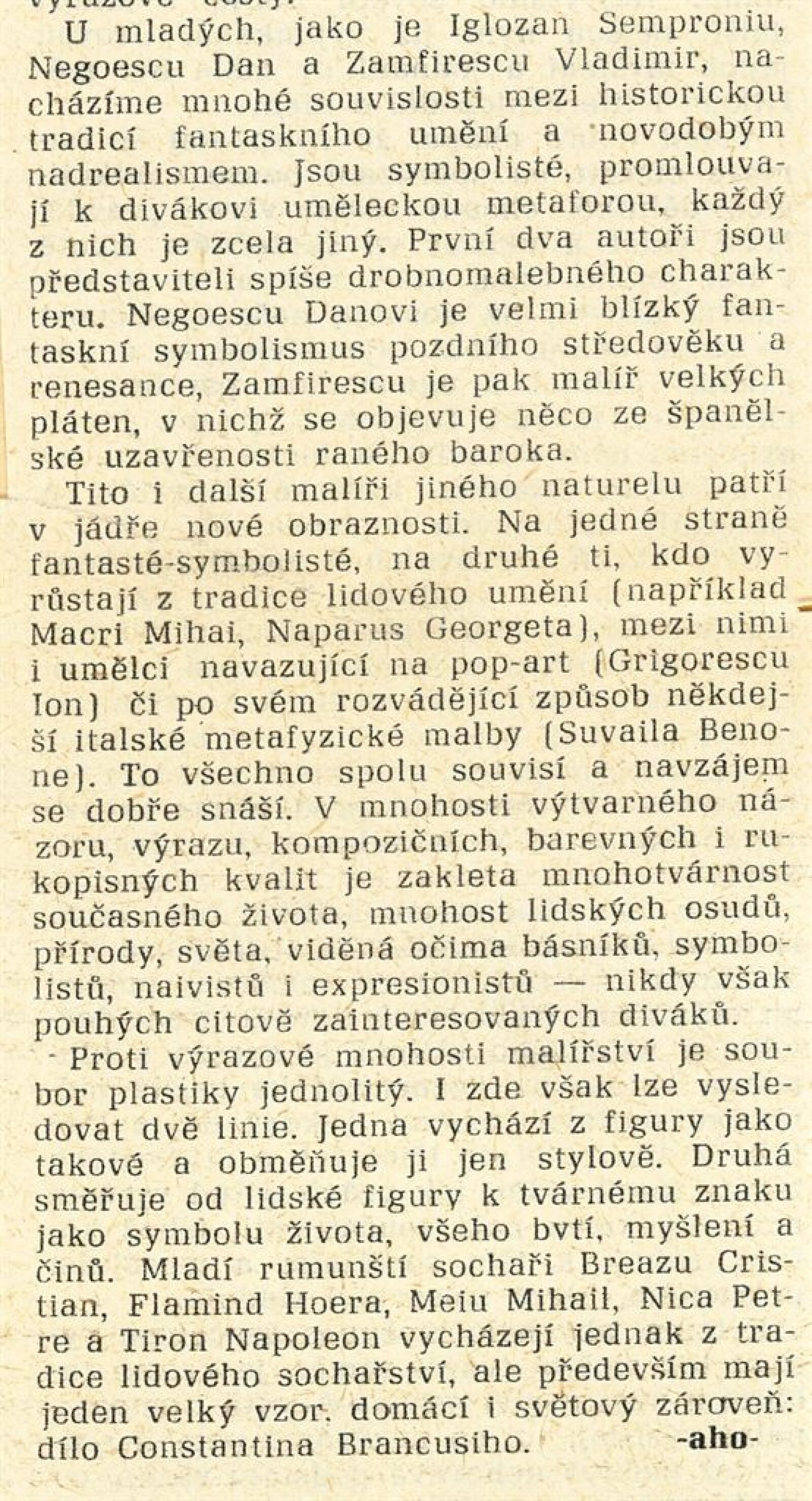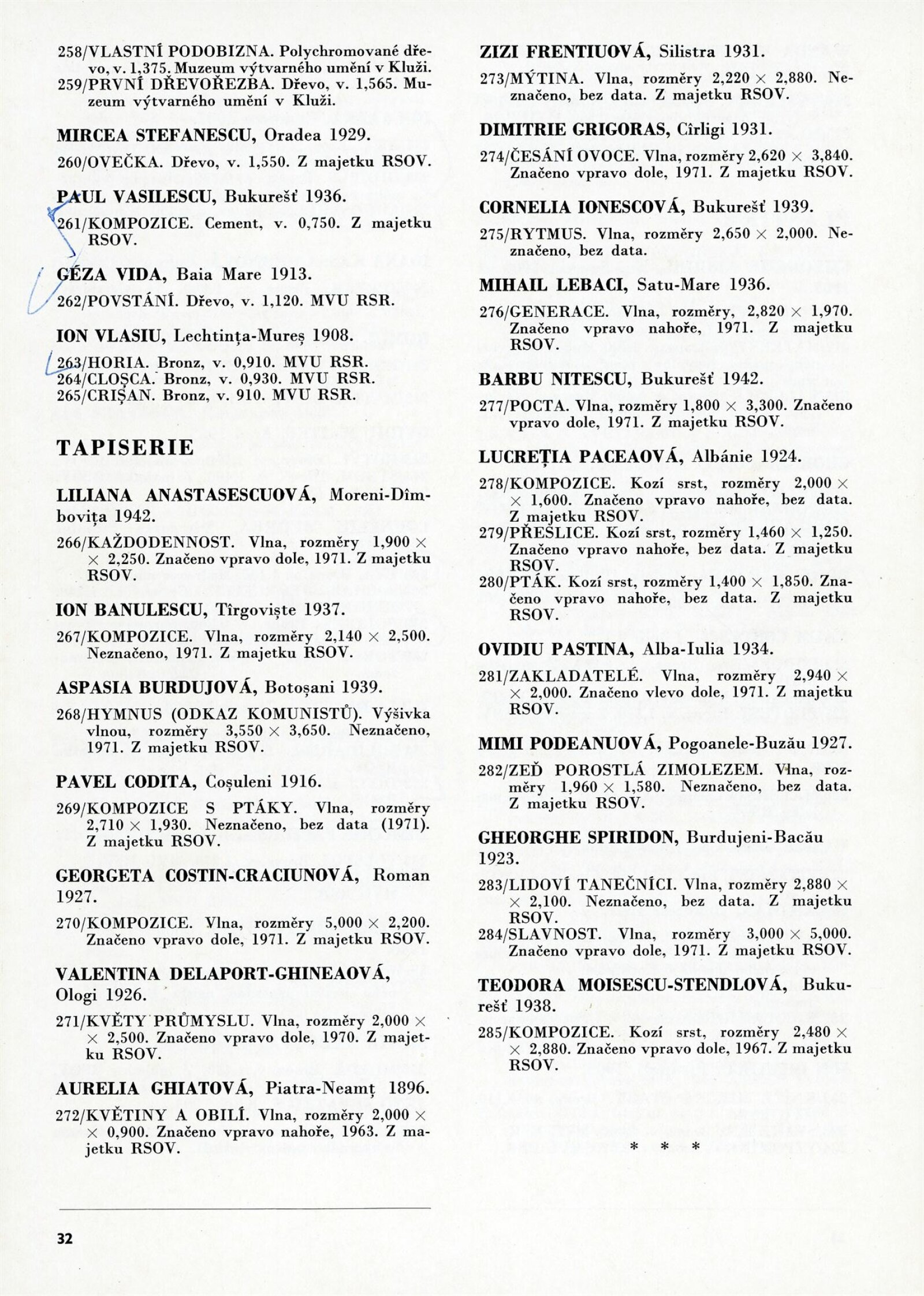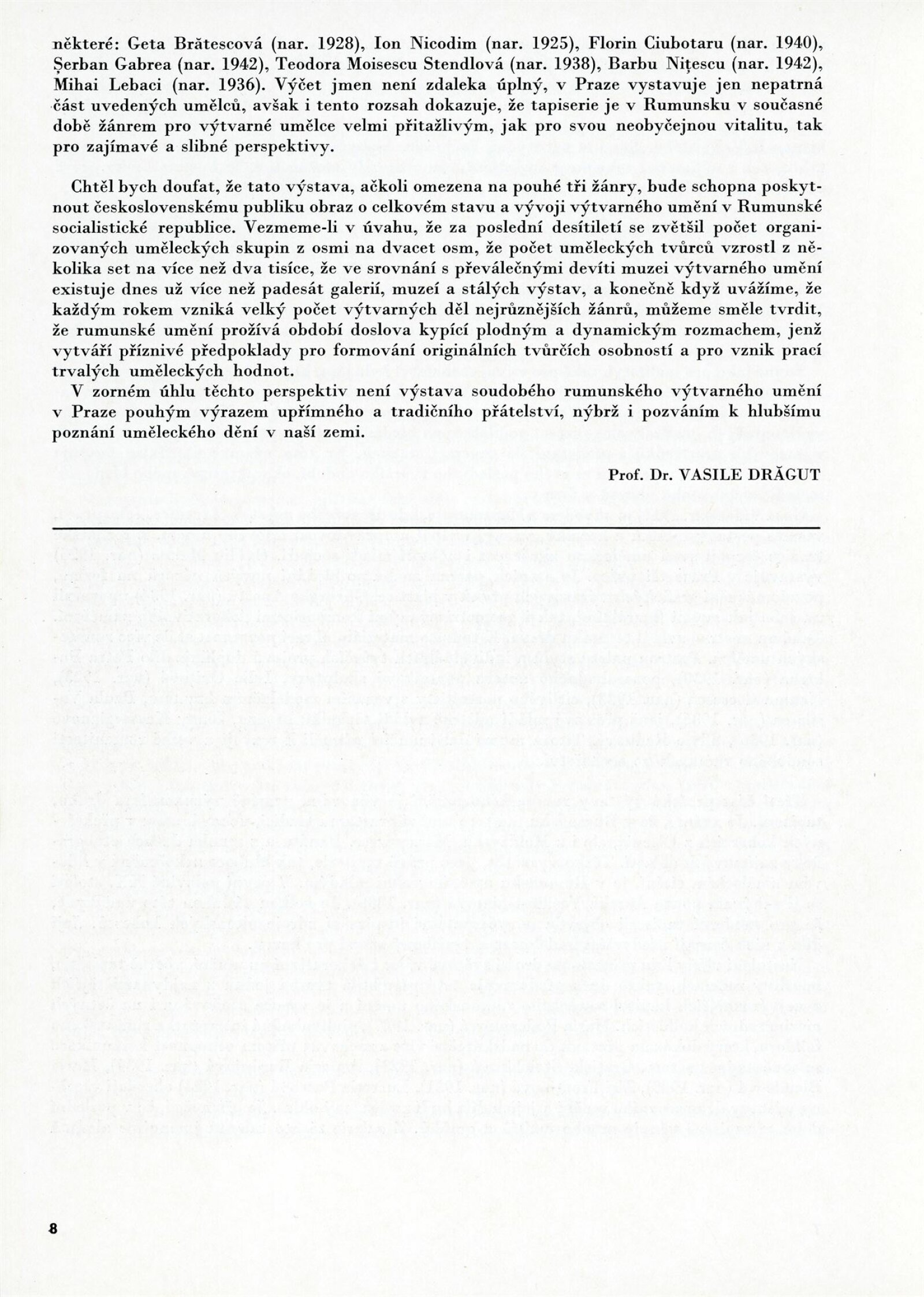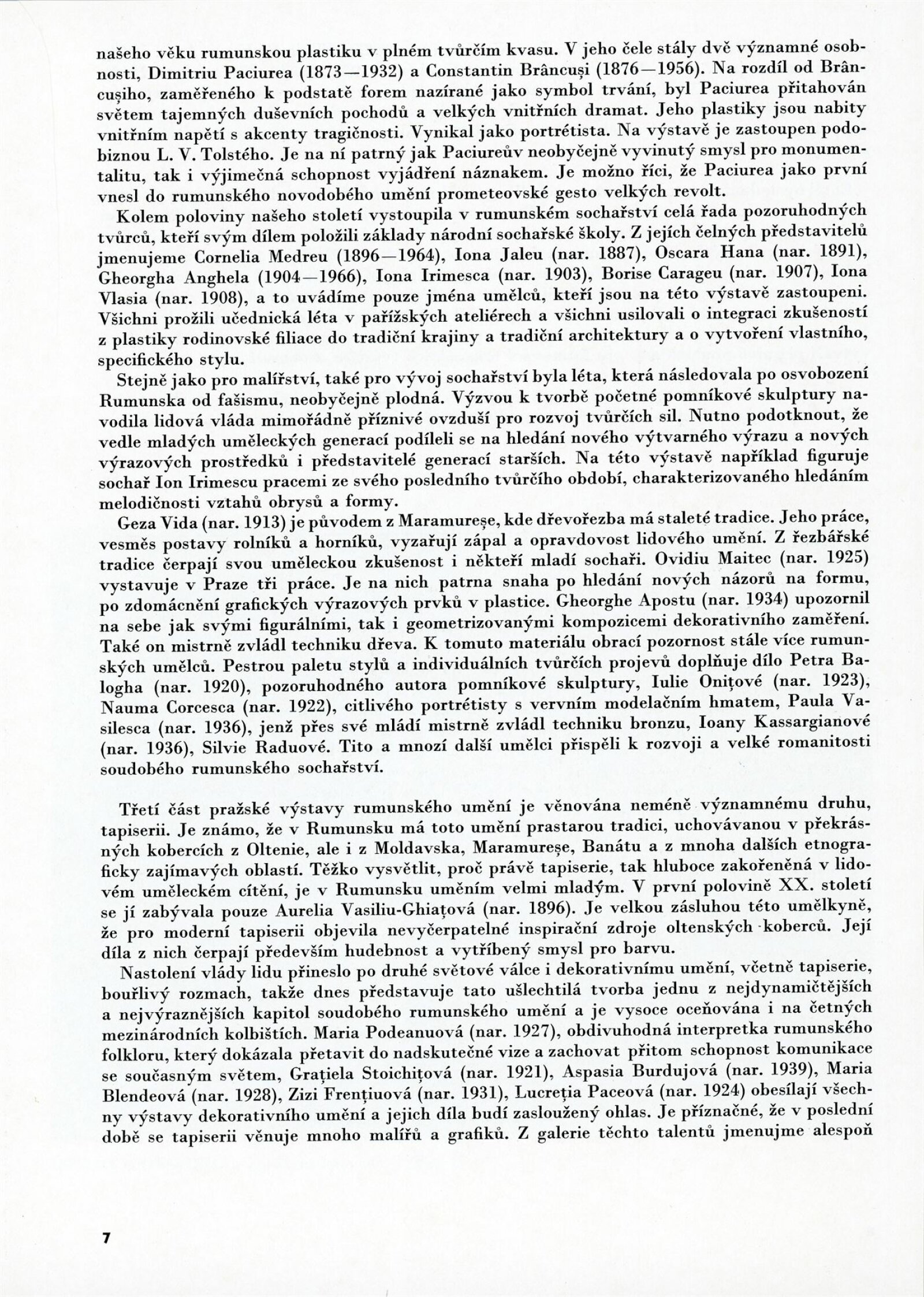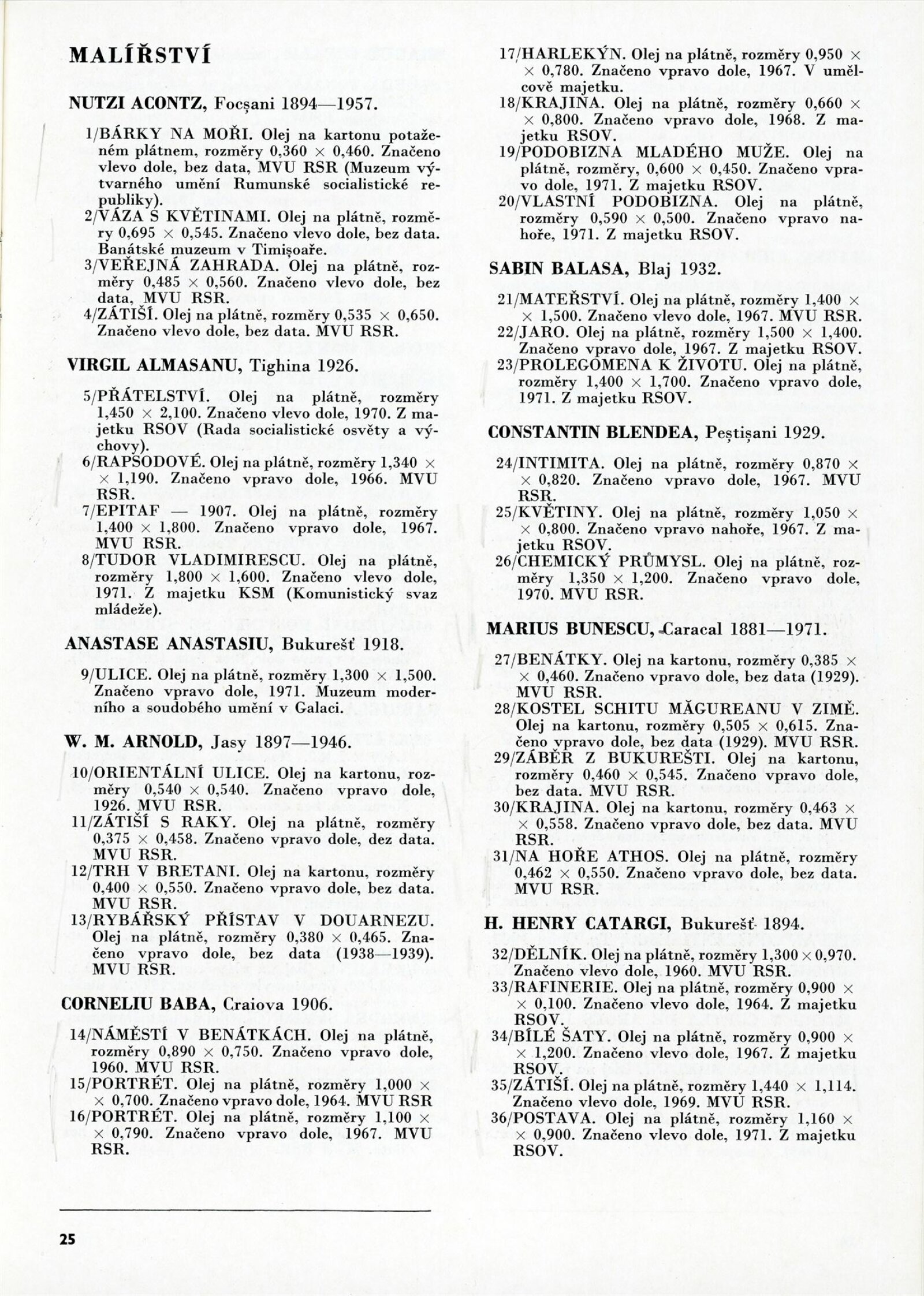 Rumunské výtvarné umění XX. století: Dům umění města Brna, 12. 10. – 5. 11. 1972 / Převzatý katalog. Rumunské výtvarné umění XX. století: Valdštejnská jízdárna, září–říjen 1972 / Text: Vasile Dragut. – Praha: Národní galerie, 1972. – 32 s., obr., 2 l. bar. obr., DU 575. – MZK; MG