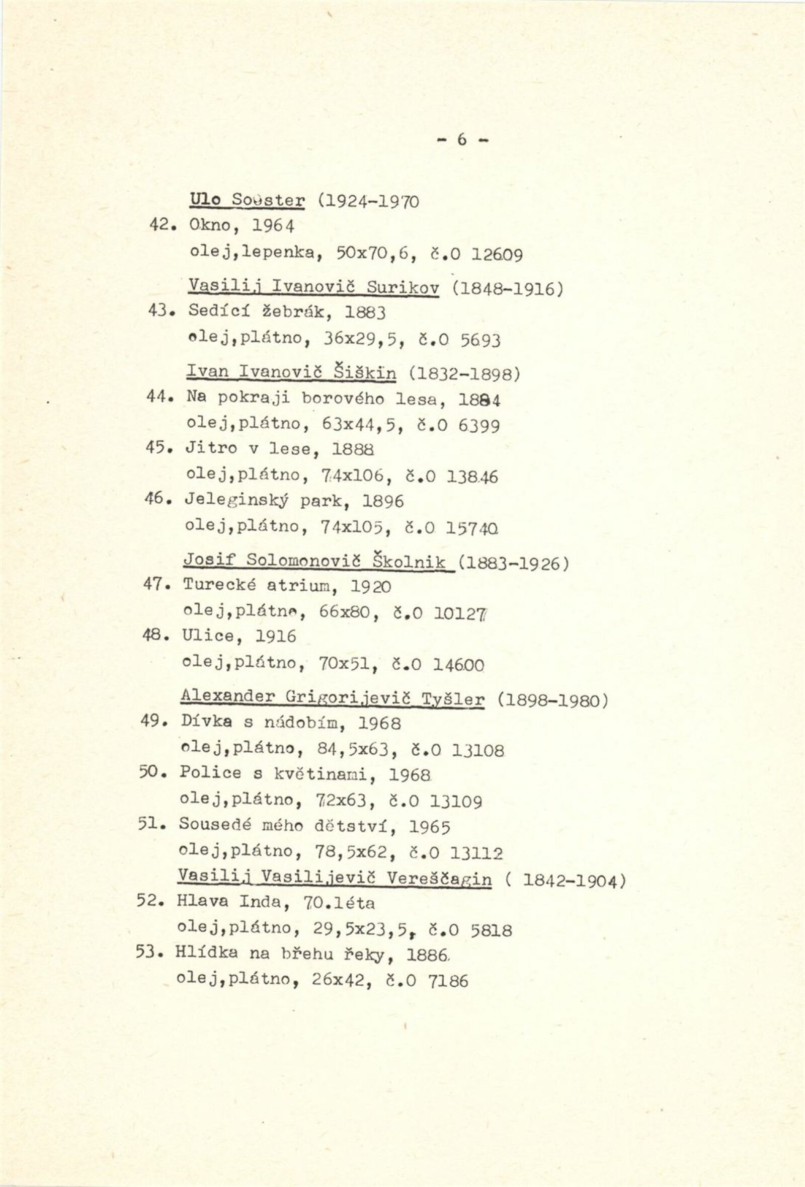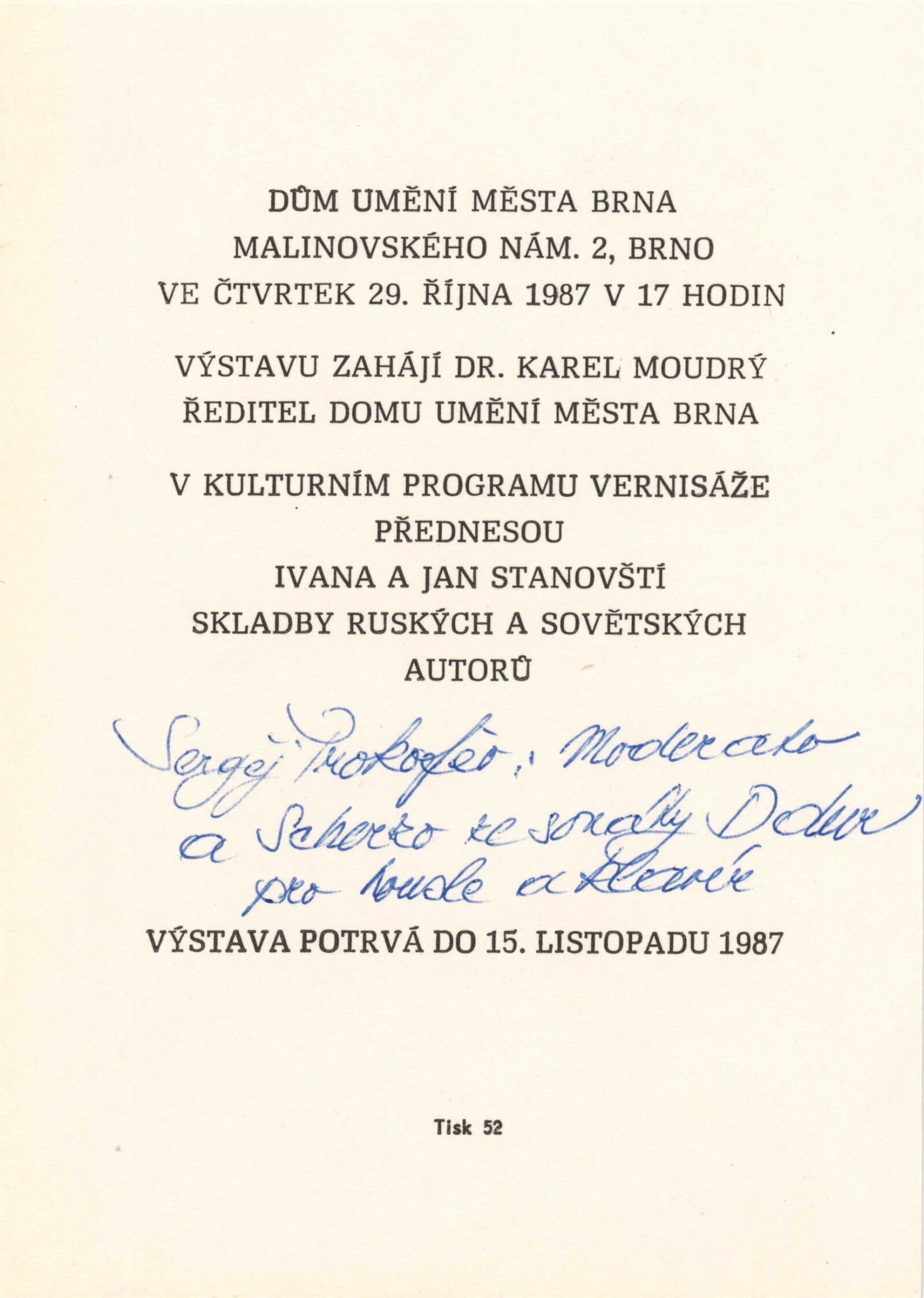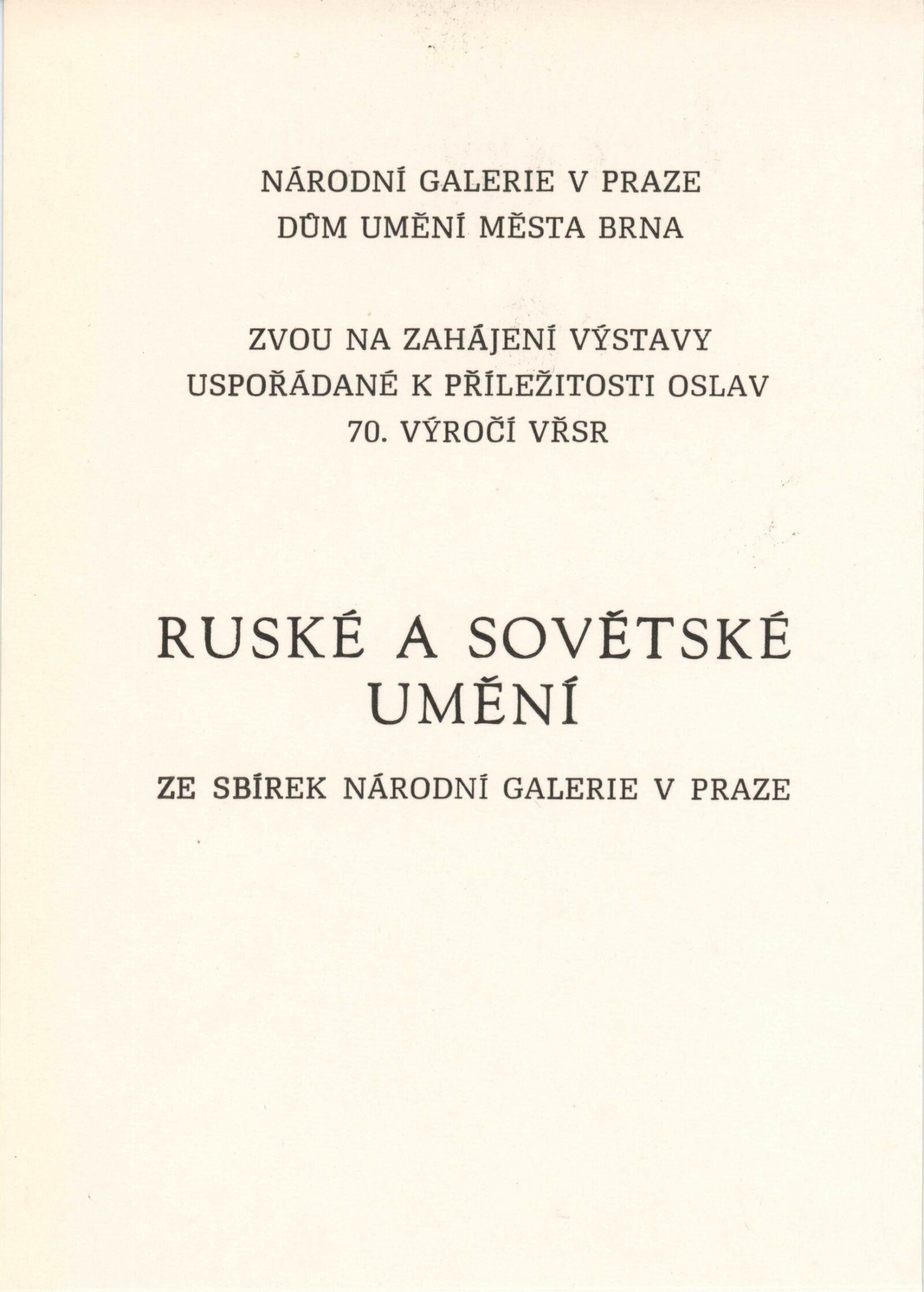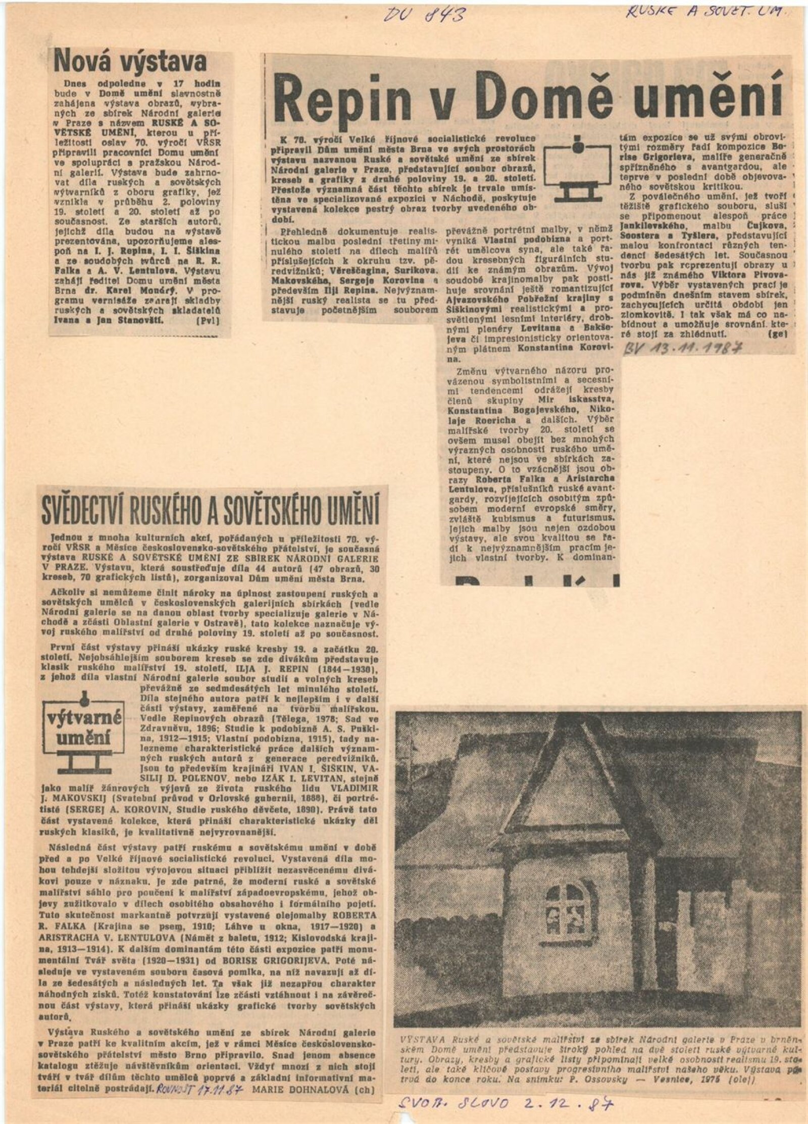 Ruské a sovětské umění ze sbírek Národní galerie v Praze: Dům umění města Brna, 29. 10. – 15. 11. 1987 / K výstavě rozmnožený katalog o 12 stranách. DU 843