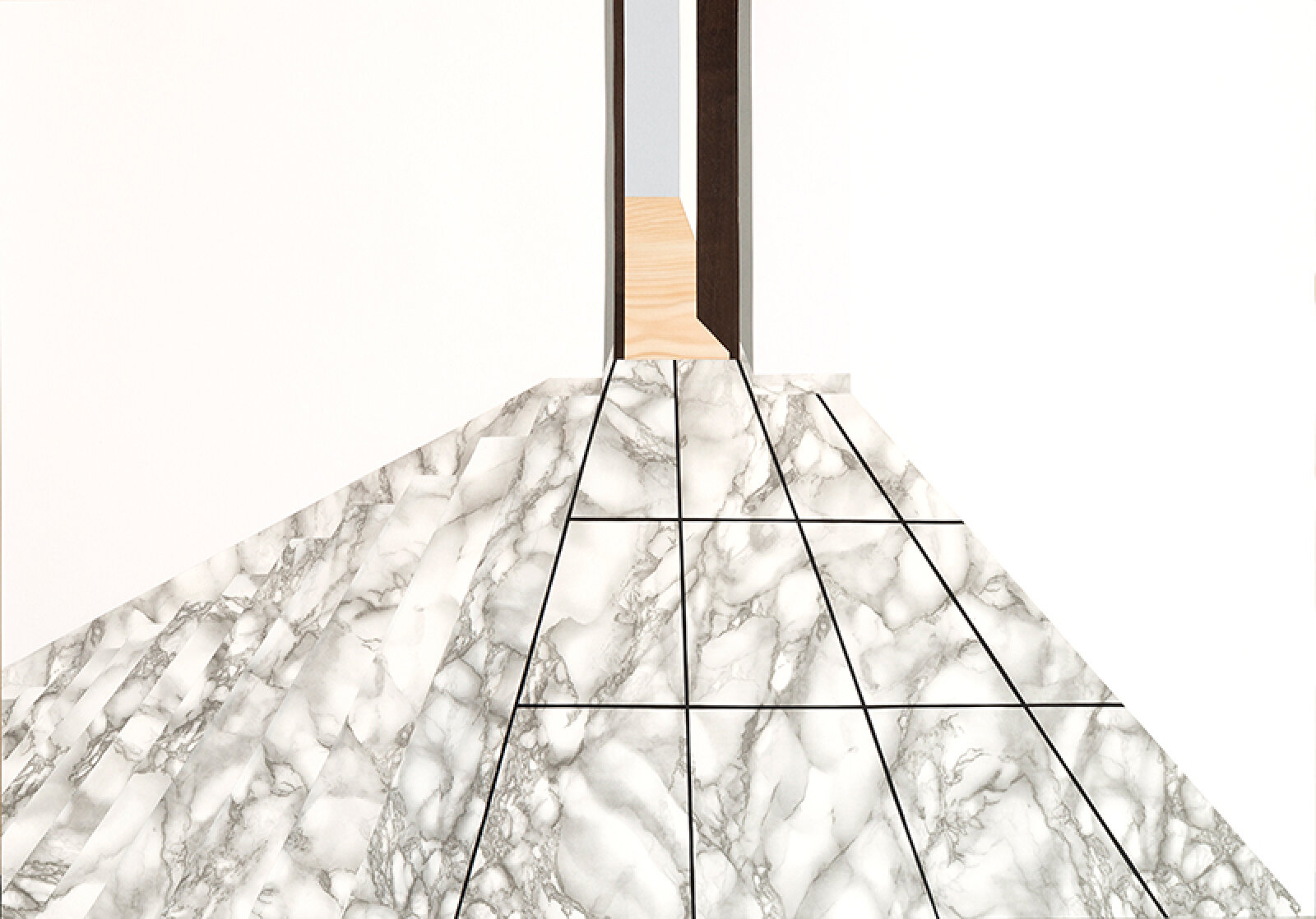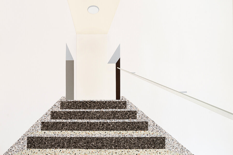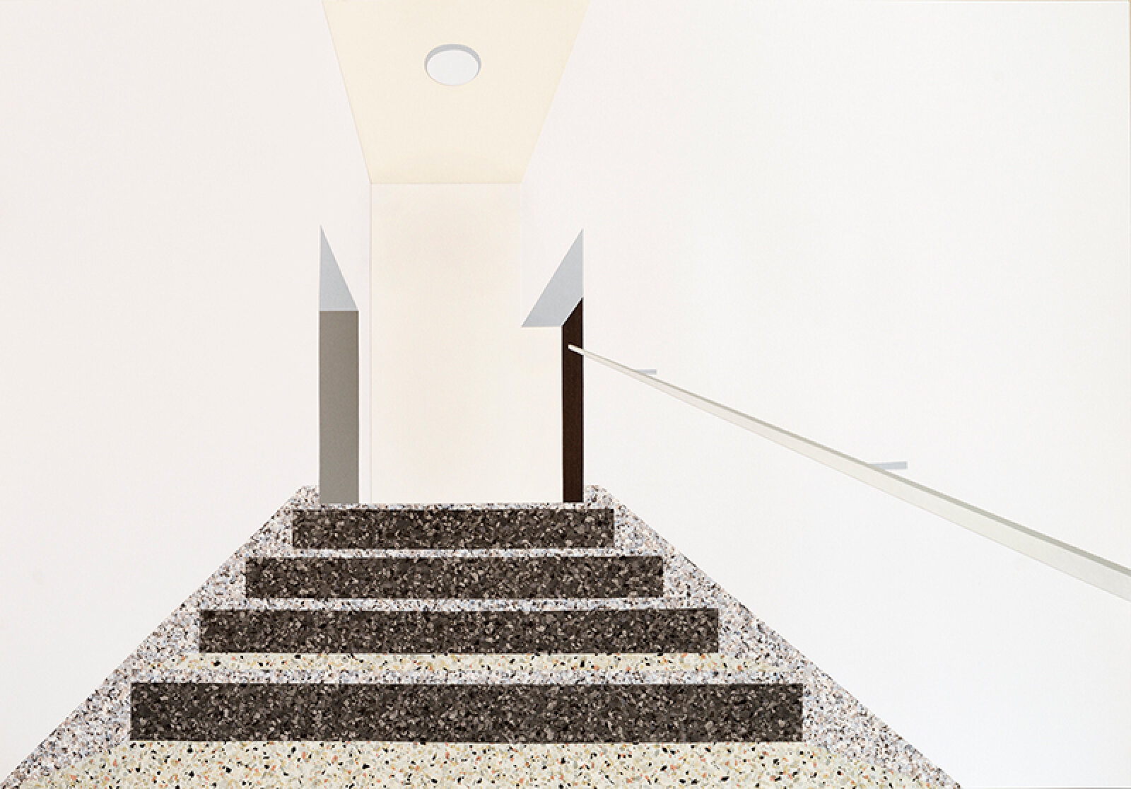 V Galerii Jaroslava Krále připravila Vendula Chalánková výstavu nazvanou Schodek, která představuje jen zlomek její práce. V instalaci se soustředí především na cykly koláží, které všechny vznikly v letošním roce. Ukazuje cyklus interpretující brněnskou Zbrojovku, kde má autorka již devět let svůj ateliér, a soubor Hotel Merkur, který připravila pro svou nedávnou výstavu v Dejvickém divadle. Koláží se Vendula Chalánková zabývá od roku 2013. Tehdy vytvořila nesmírně pracné, věrné obrazy elektronických obrazovek a nazvala je Handmade Photoshop Basic. Vystavené koláže interiérů provedla z papírů imitujících kámen, koženku či lakované materiály. Tvary staveb opět zjednodušila, takže se v nich objevuje rovina hry na modernistickou geometrickou kompozici.