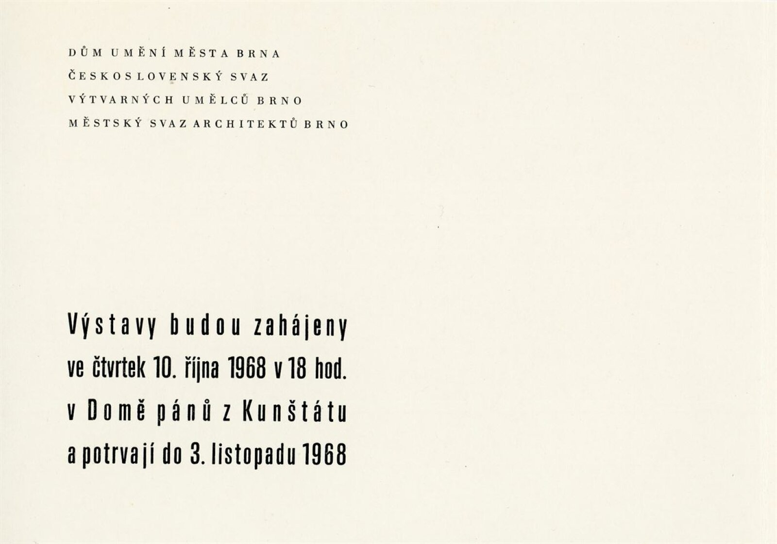 Šestá výstava moravské grafiky 68: Dům umění města Brna / Dům pánů z Kunštátu, Kabinet grafiky, 10. 10. – 3. 11. 1968 / Text: Helena Kusáková-Knozová. – Brno: SČSVU, 1968. – 4 s., DPK 388. – MMB
