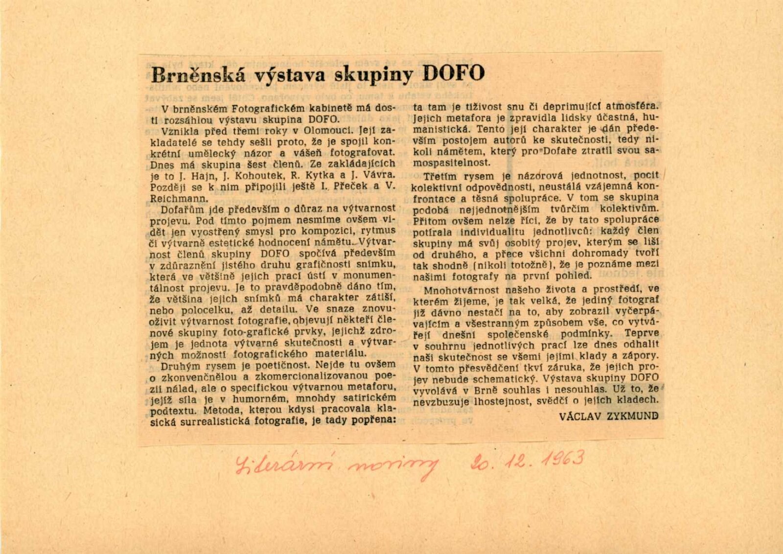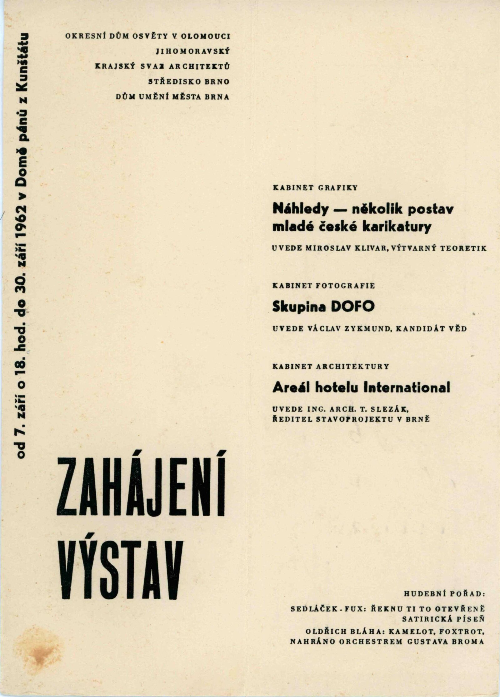 Skupina DOFO: Dům umění města Brna / Dům pánů z Kunštátu, 35. výstava Kabinetu fotografie Jaromíra Funka, 7. 9. – 30. 9. 1962 / Text: Václav Zykmund. – Brno: DUmB, 1962. – 23 s., obr., DPK 160. – MG