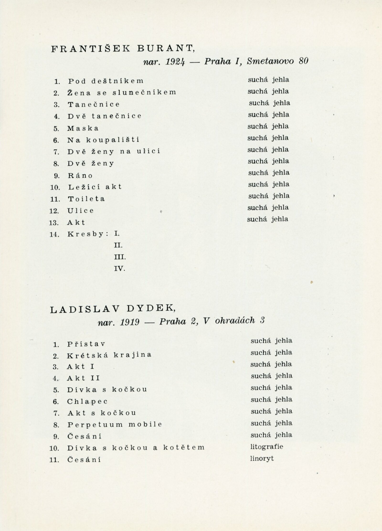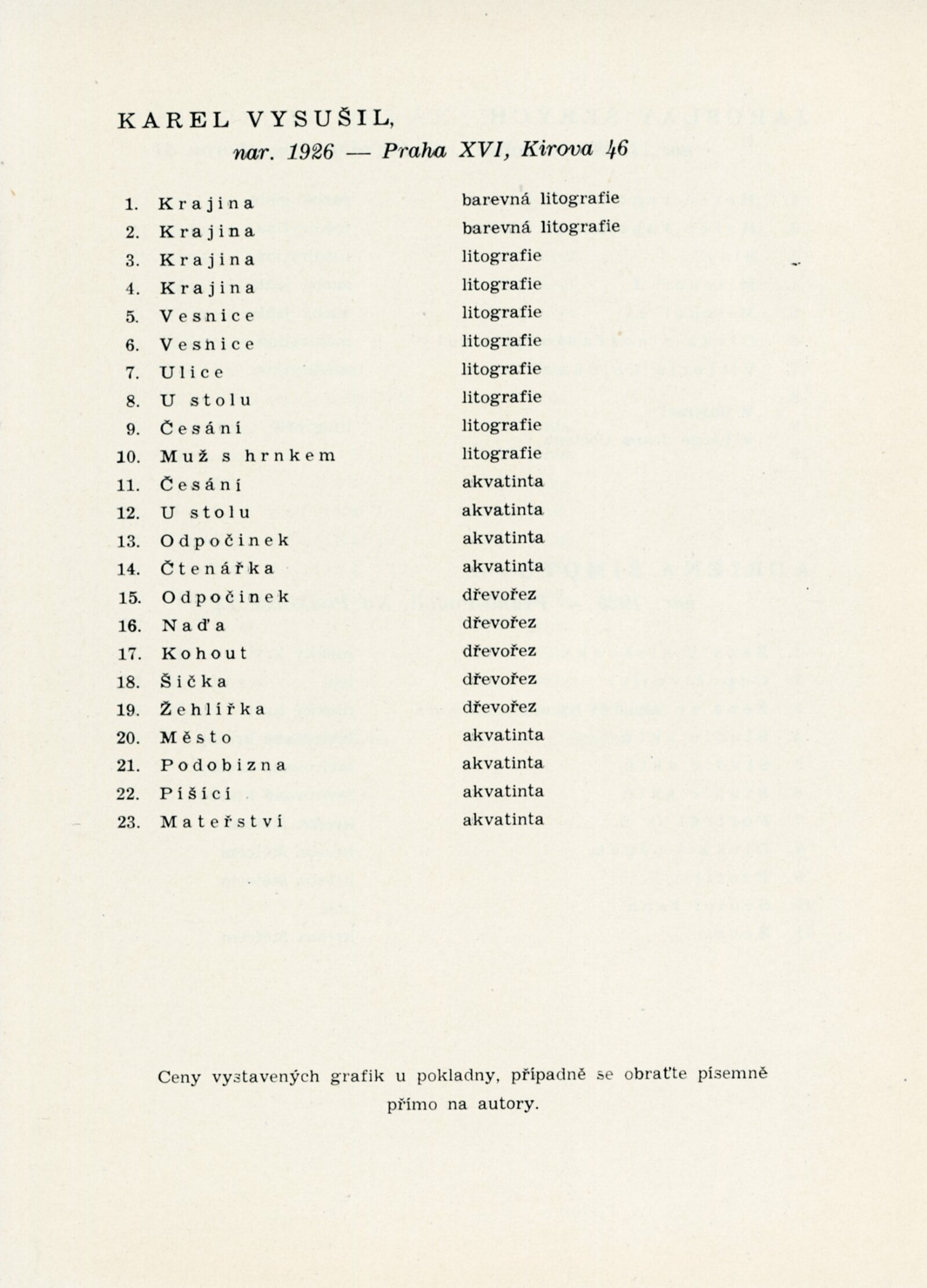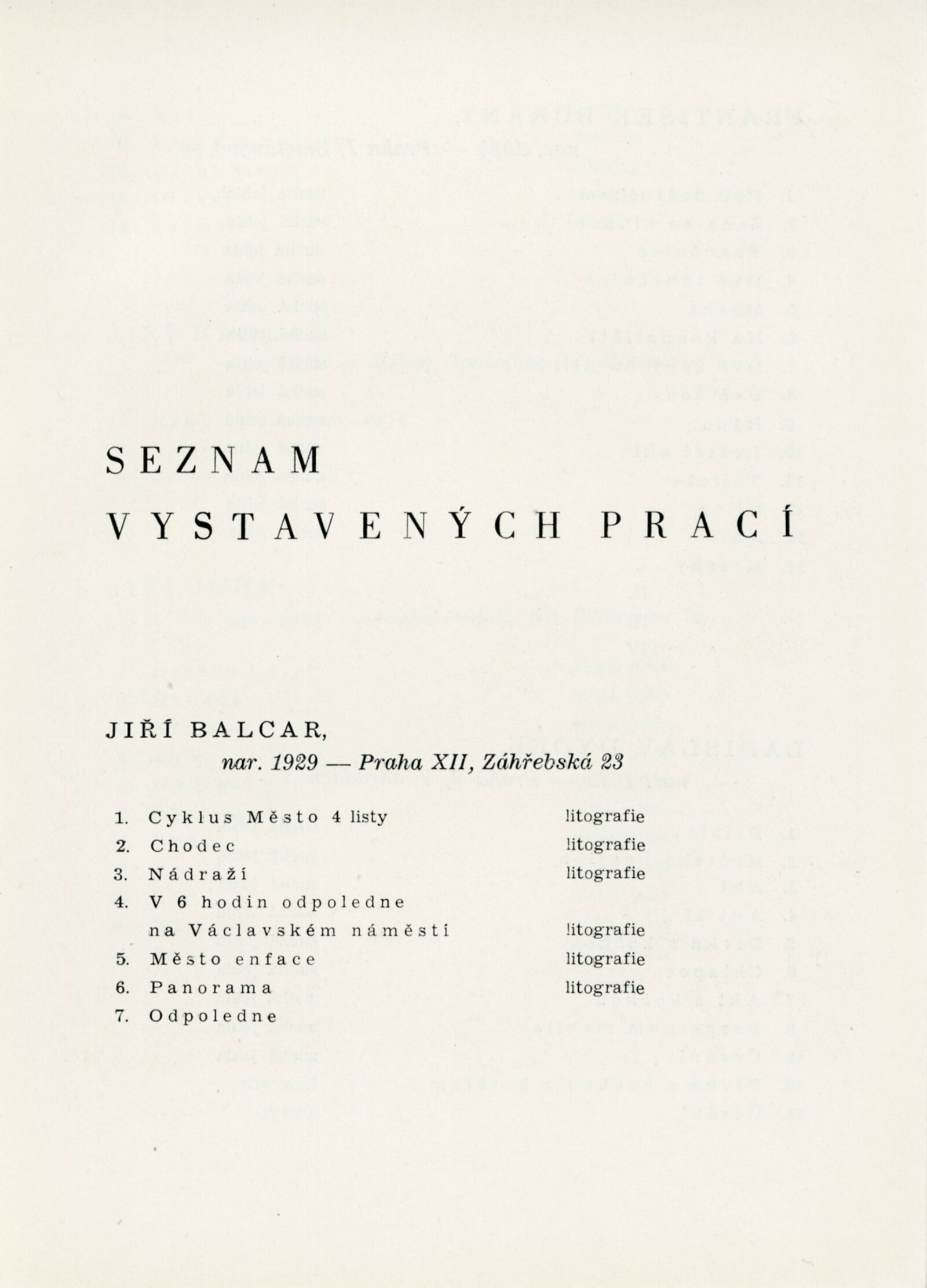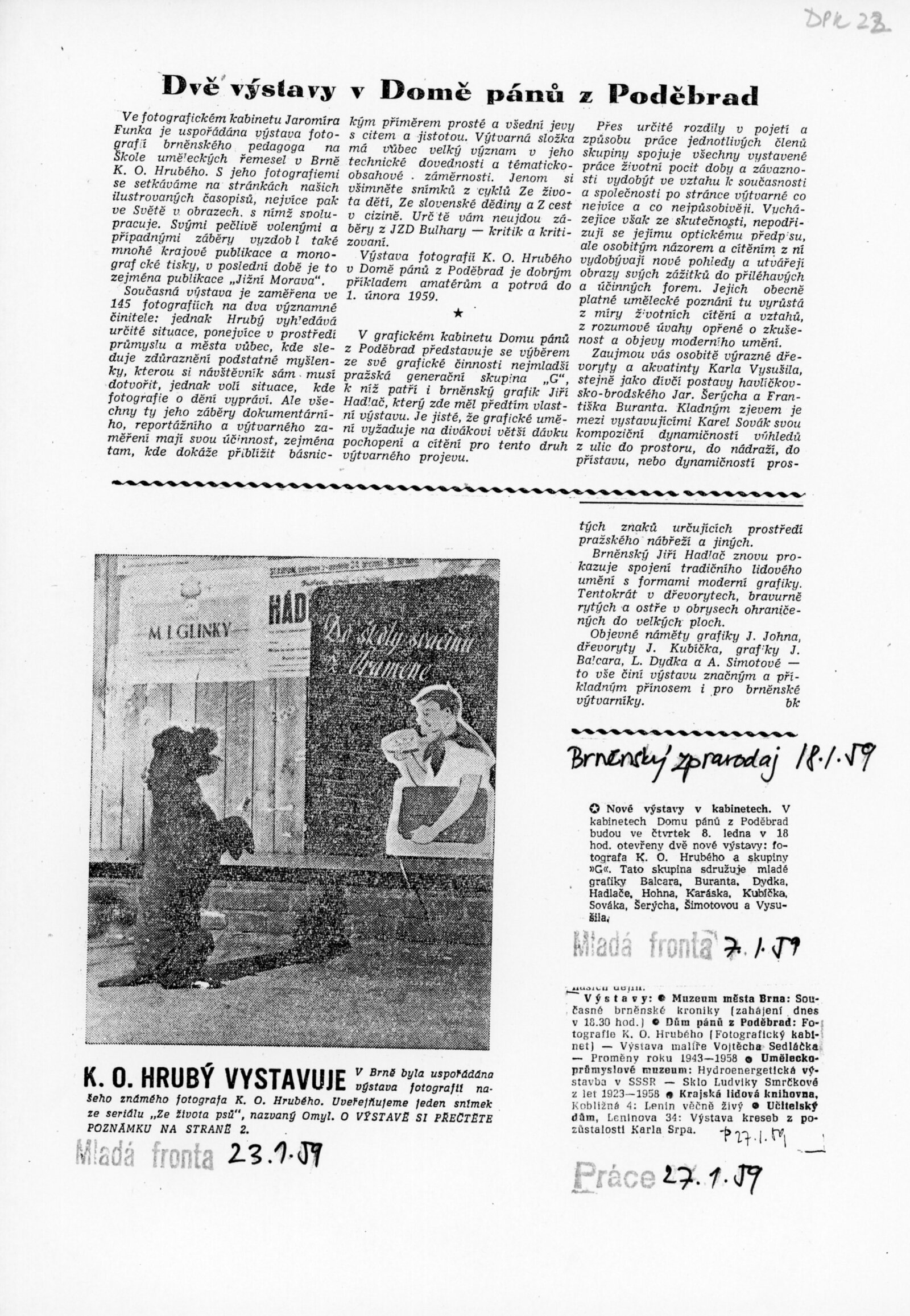 katalog, pozvánka, korespondence (provozní korespondence), žádost o uspořádání výstavy, recenze v tisku