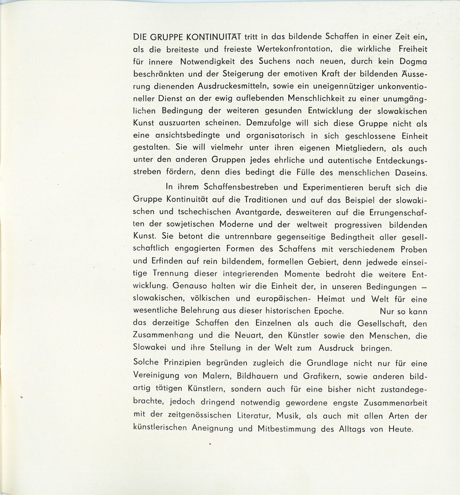 Výstava skupiny Kontinuita: Dům umění města Brna/ Dům pánů z Kunštátu, 1. patro, 29. 10. – 26. 11. 1967/ Převzatý katalog. Kontinuita: Bratislava, Nitra, 1967/ Text: anonymní. – Bratislava: Vydavateĺstvo SFVU, 1967. – 47 s., obr., portréty, životopisy vystavujících, DPK 357