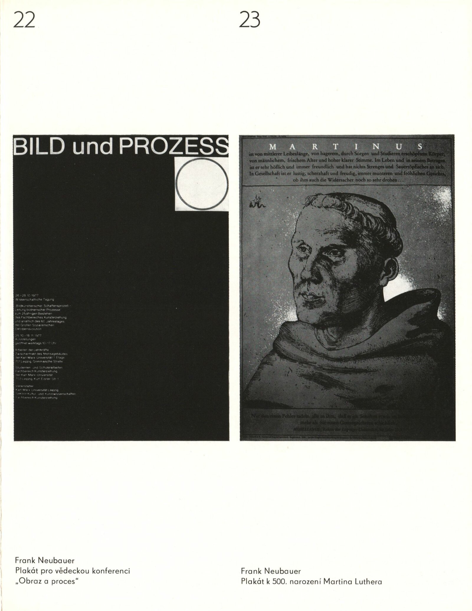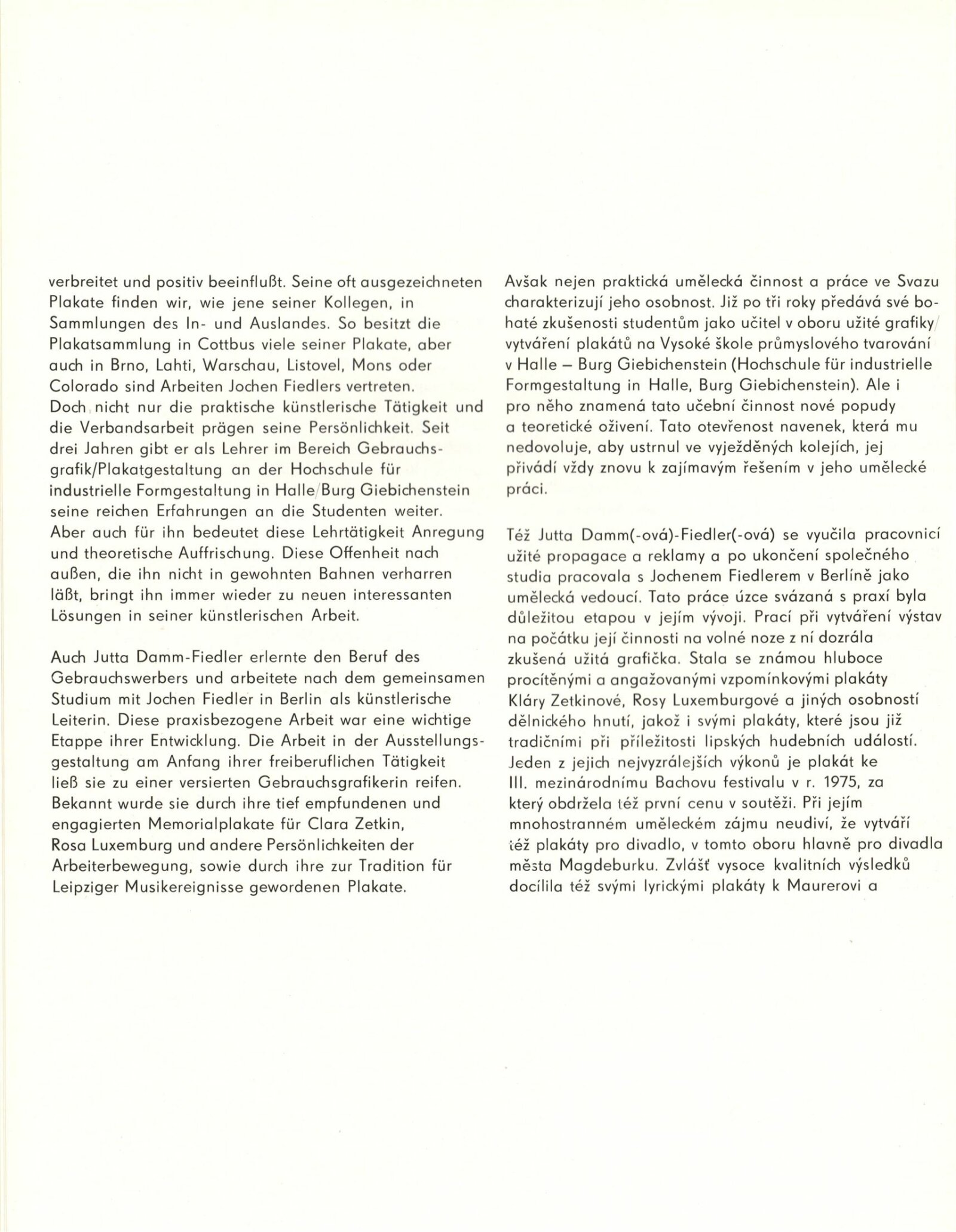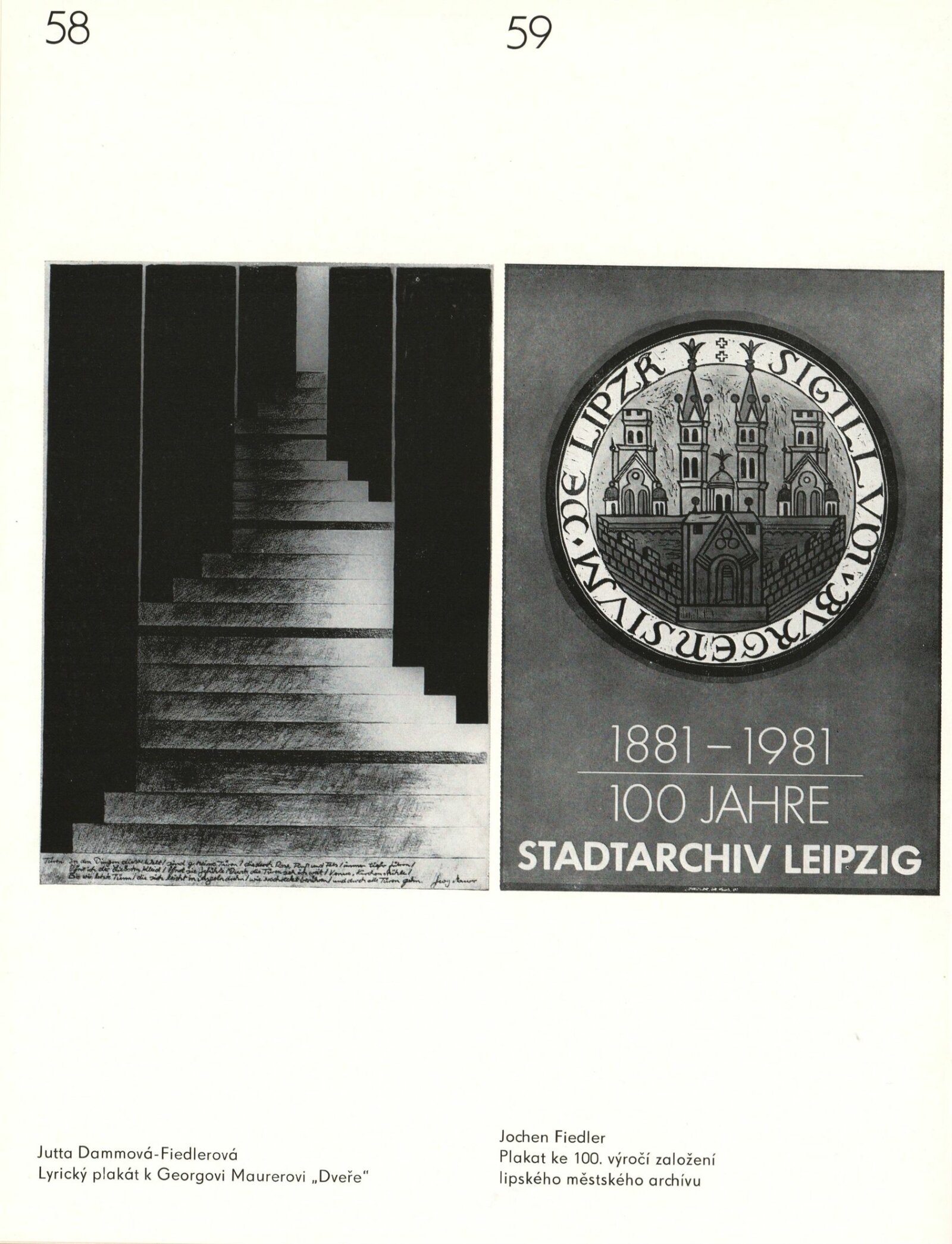 Skupina PLUS Lipsko v Brně (Jutta Damm-Fiedler, Jochen Fiedler, Frank Neubauer). Plakáty a užitá grafika: Dům umění, Galerie Jaroslava Krále, hala, 13. 9. – 9. 10. 1983 / Výstava u příležitosti Dnů kultury NDR v ČSSR. Text: Martin Marbach. – Leipzig: Rat des Bezirkes, Abt. Kultur, 1983. – 48 s., obr., portréty, životní data, název a text též německy, DU 766. – MG