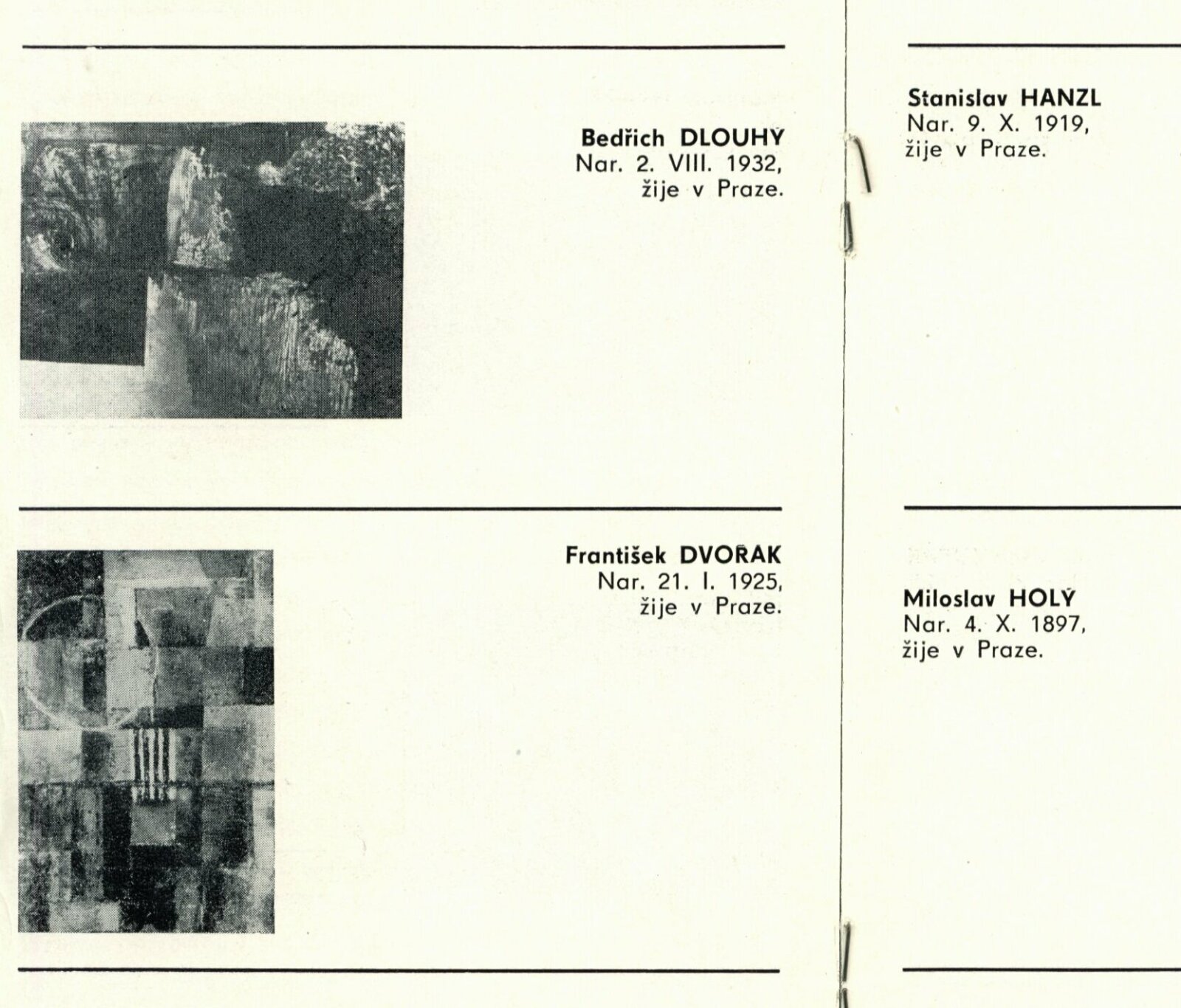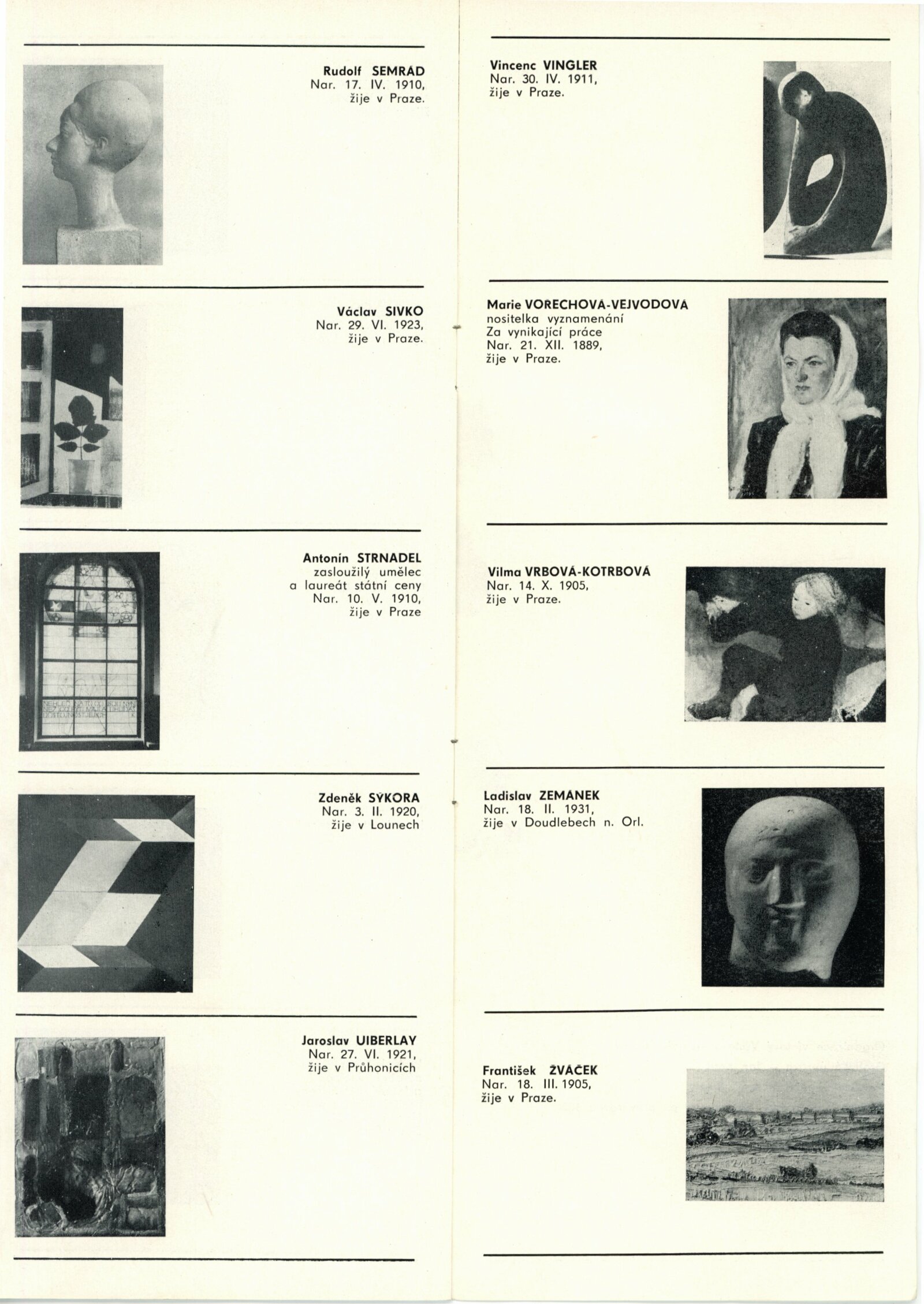 Zdeněk Balaš, Václav Bartovský, Cyril Bouda, Hugo Demartini, Bedřich Dlouhý, František Dvořák, Richard Fremund, Vladimír Fuka, Ľudovít Fulla, Stanislav Hanzl, Miloslav Holý, Jaroslav Hudec, Jan Jiřikovský, Josef Kaplický, Jiří Kolář, Ota Janeček, Jan Kotík, Radoslav Kutra