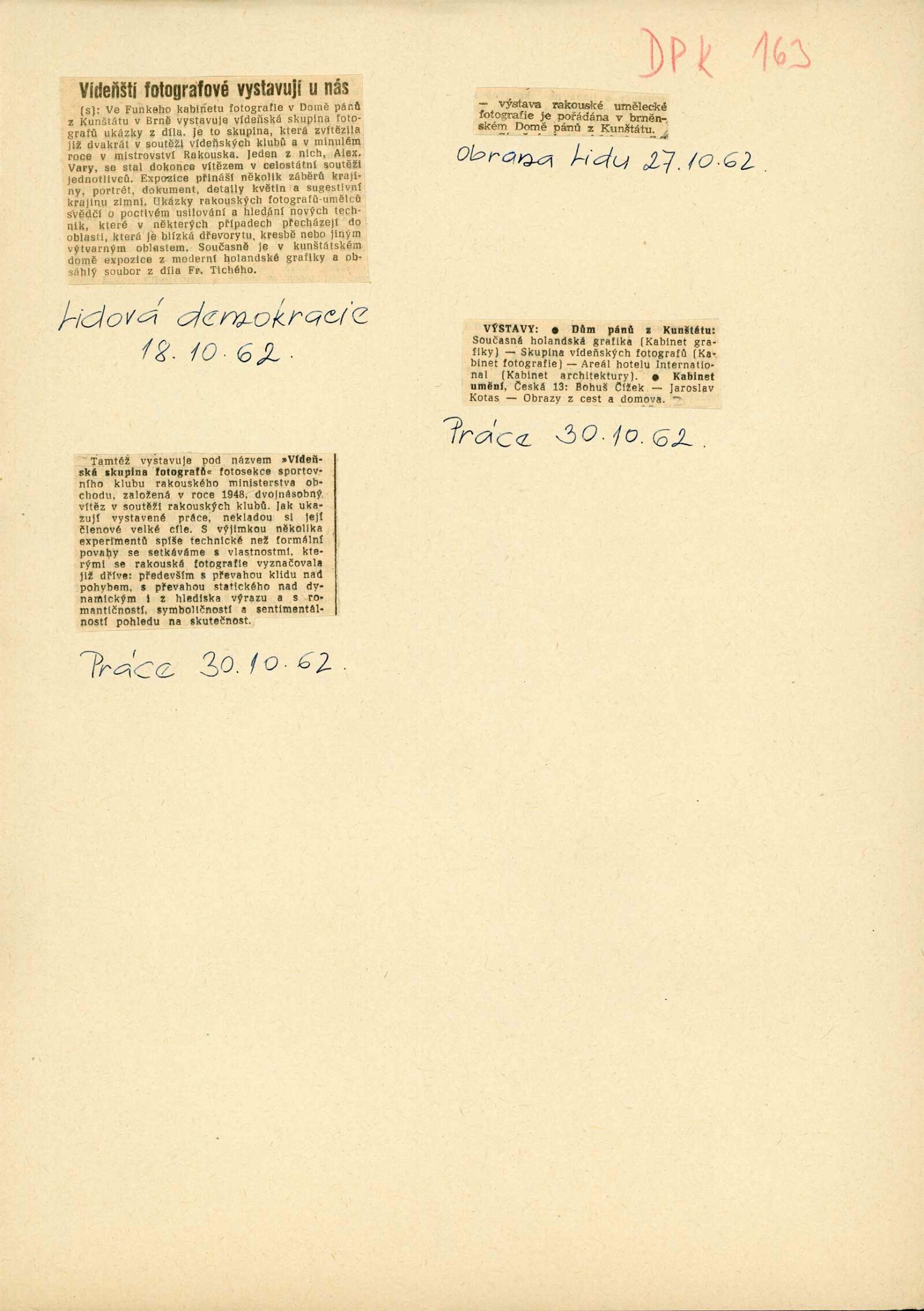 seznam vystavených děl, korespondence (DU s SK-Handelsministerium Sektion Foto), recenze v tisku
