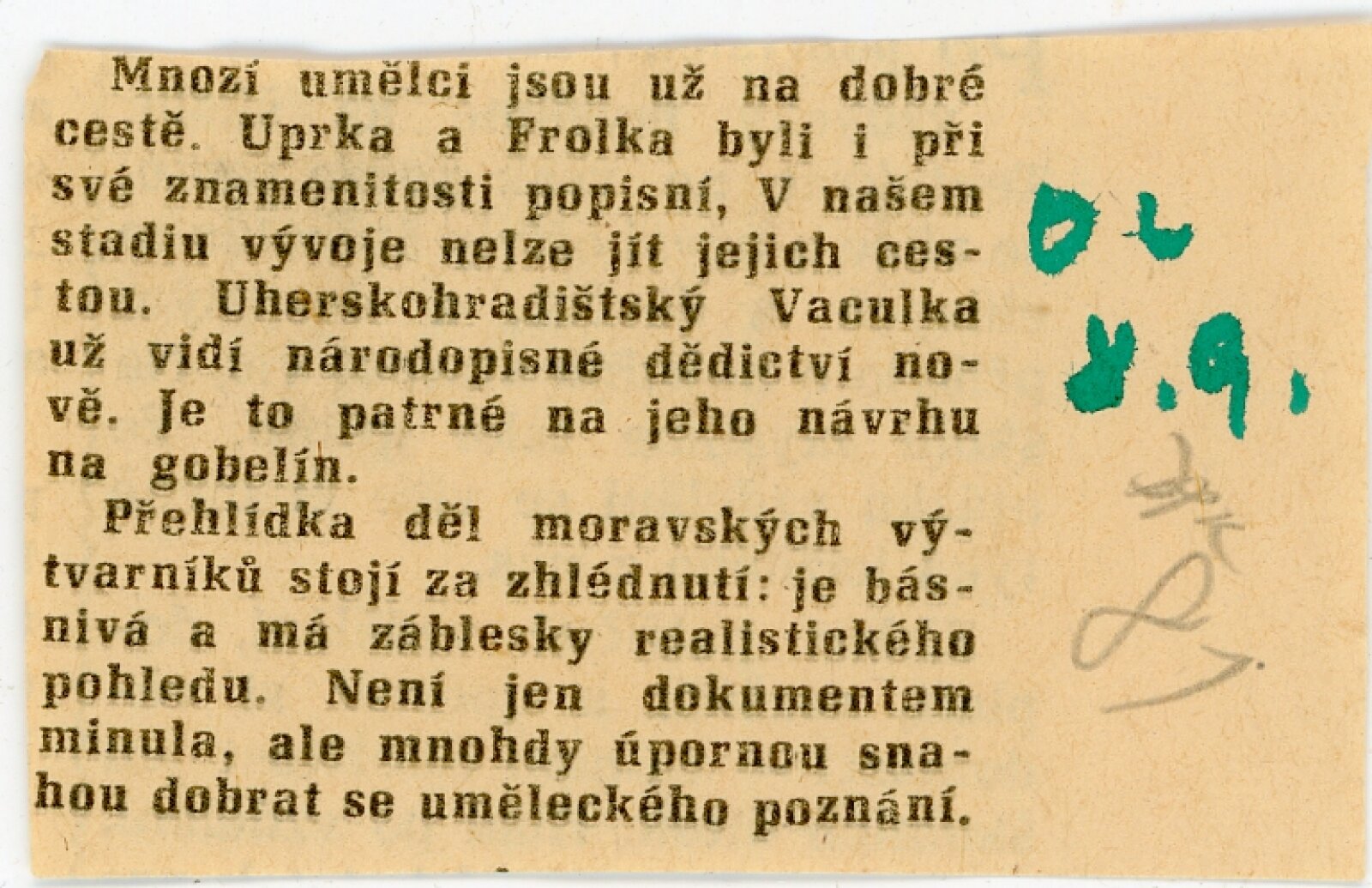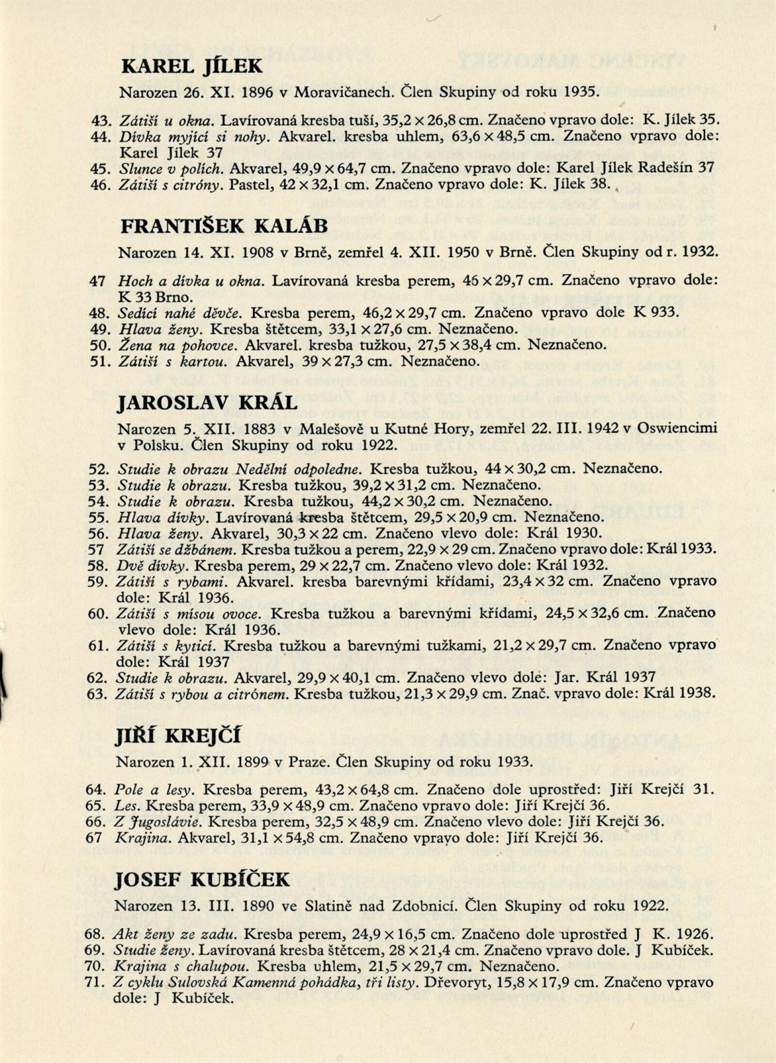 Skupina výtvarných umělců v Brně 1922–1938: Dům umění města Brna / Dům pánů z Kunštátu, 18. výstava Kabinetu grafiky, 8. 9. – 2. 10. 1960 / Text: Helena Kusáková. – Brno: DUmB, 1960. – 12 s., obr., DPK 81. – Kubíček 7601; MZK; MG; MMB