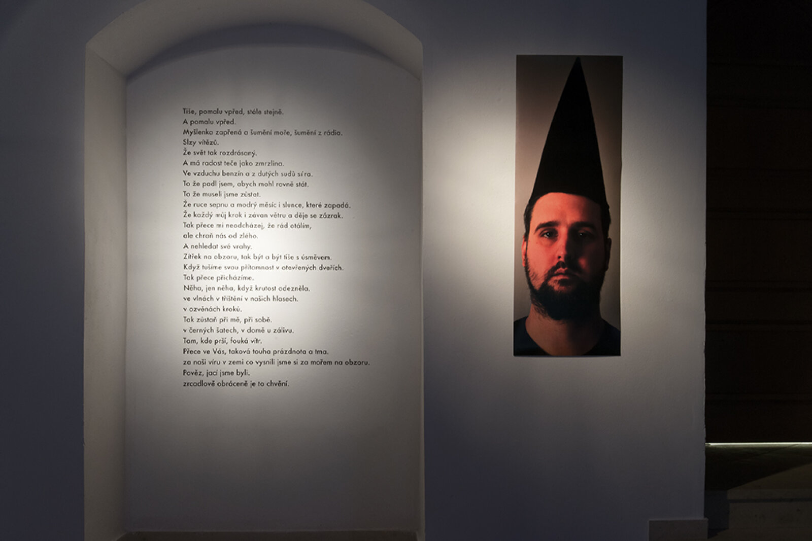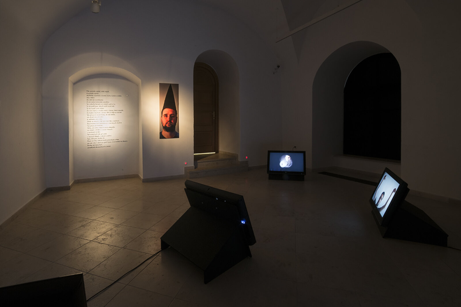 Galerie se v průběhu této výstavy stává domem s jediným všudypřítomným obyvatelem. Teplo domácího krbu nahrazuje pulsující světlo videí. Jedná se o minimalistické performance. Většina z nich je postavena na zviditelnění gestikulace, která funguje jako vnitřně velmi dynamický autorefereční znak (odkazuje jen sama na sebe). V mnohém je tak prostor totalizován skrze super-ego umělce, jeho osobní magii mířící - jak jinak - dosti vysoko, k vědomí křehkosti existence a věčnosti zároveň. Umělec je zde jeví jako nevyzpytatelné, superiorní stvoření, které nelze snadno pochopit. Zejména v okamžiku, když si jako předmět své umělecké činnosti volí polohu solitéra: analytika své vlastní existence. I když ruku na srdce, není právě tohle správná cesta?