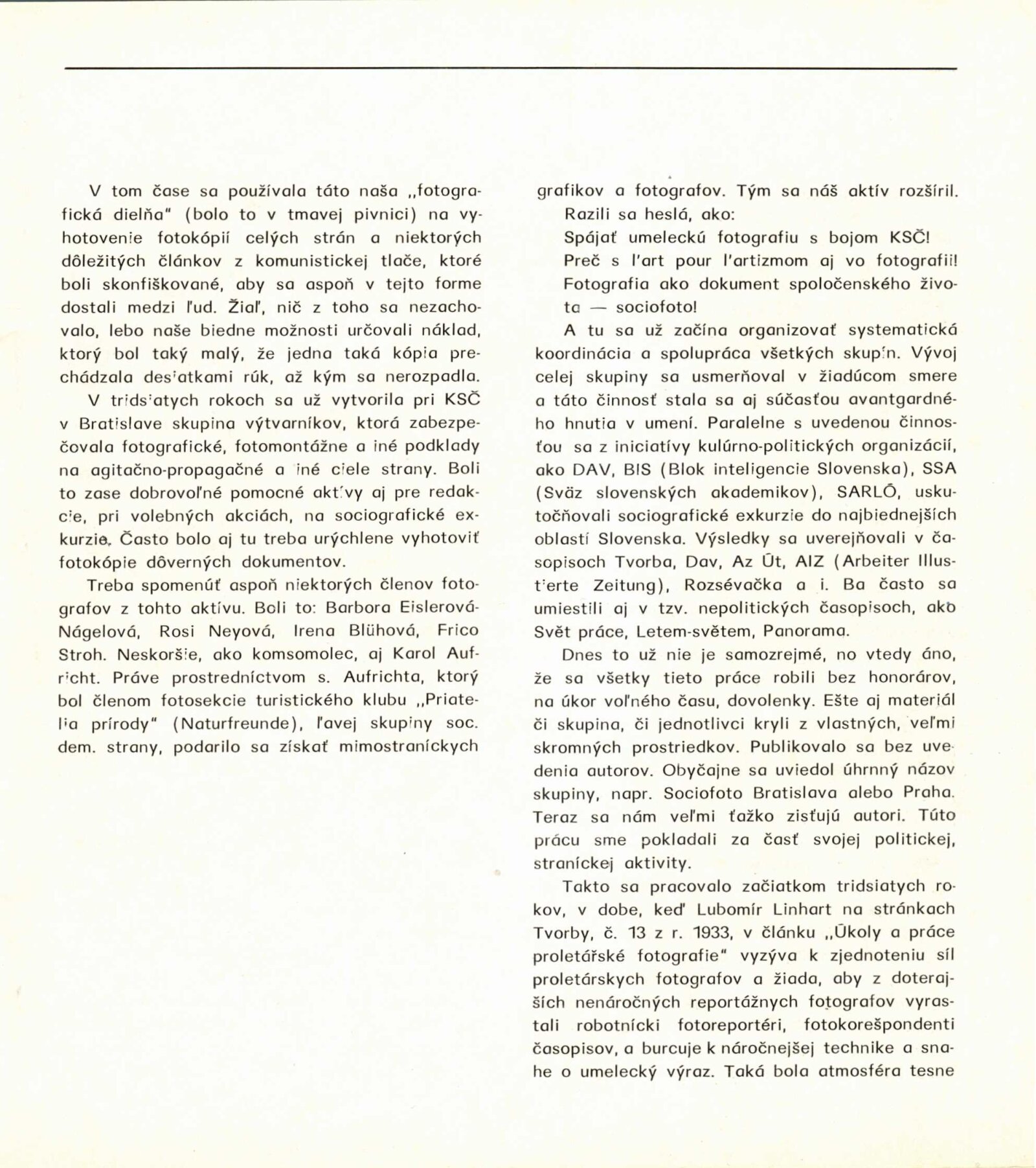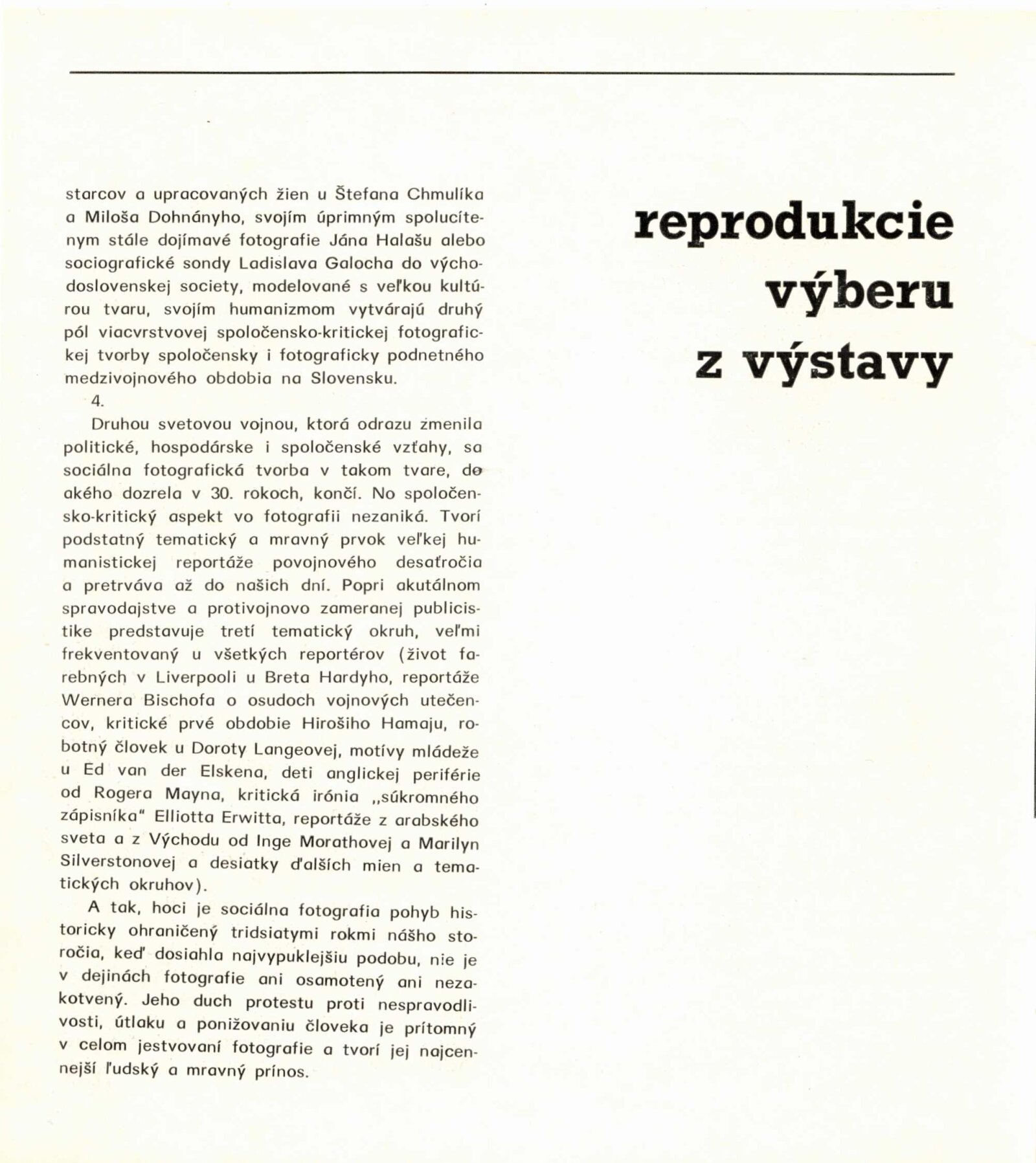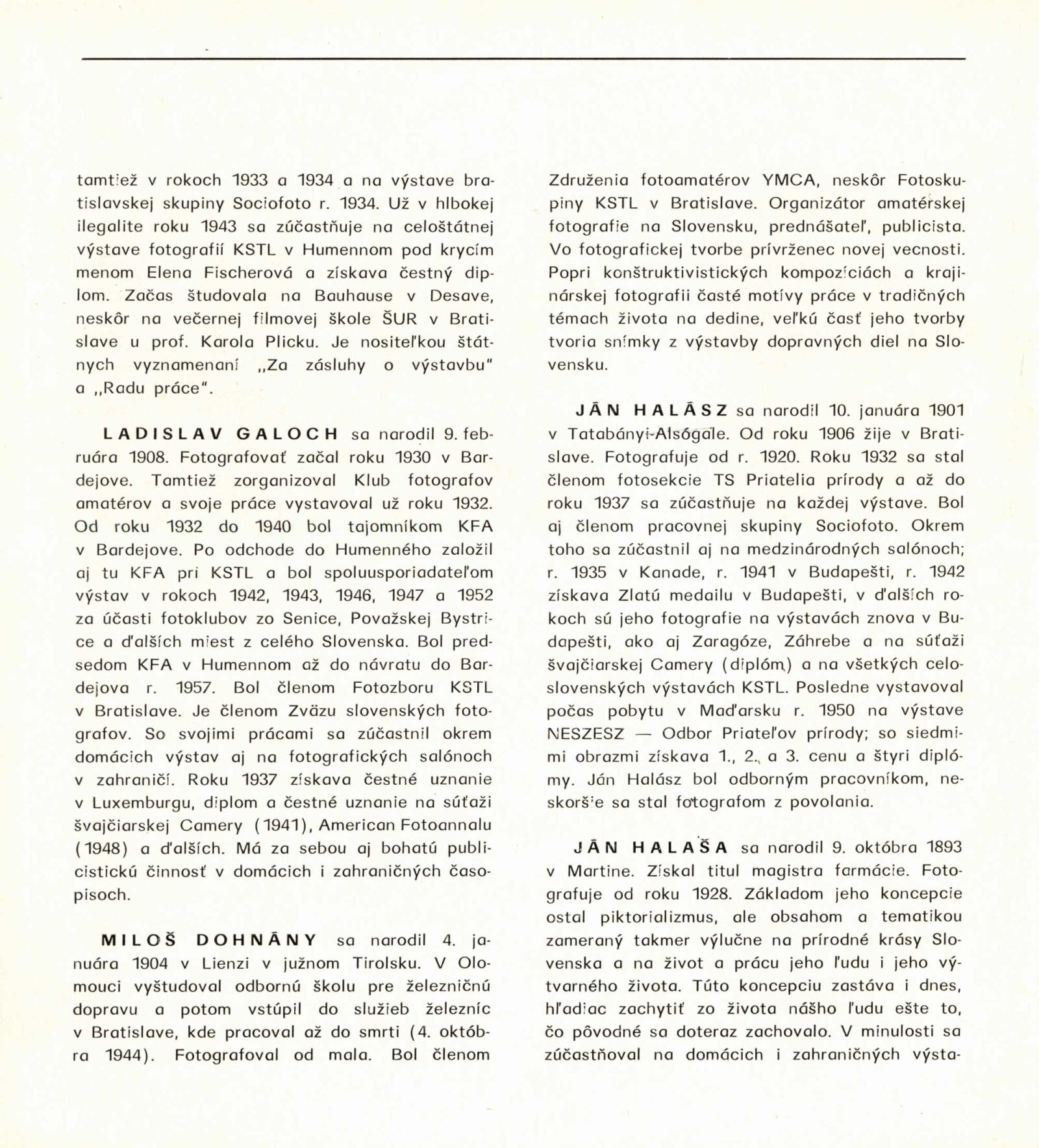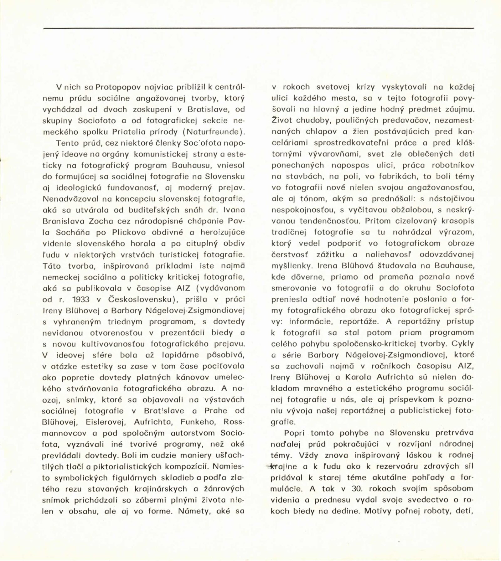 Sociální fotografie na Slovensku: hala DU 3. 4. – 27. 4. 1973 / Převzatý katalog Sociálná fotografia na Slovensku. Retrospektívna výstava 1971 k 50. výročiu KSČ: Výstavná sieň Dušana Jurkoviča Bratislava 21. 10. – 7. 11. 1971 / Text: Irena Blühová, Karol Aufricht, Ľudovít Hlaváč. Bratislava: Mestský dom kultury a osvety, 1971. – 58 s., obr. – DU 588