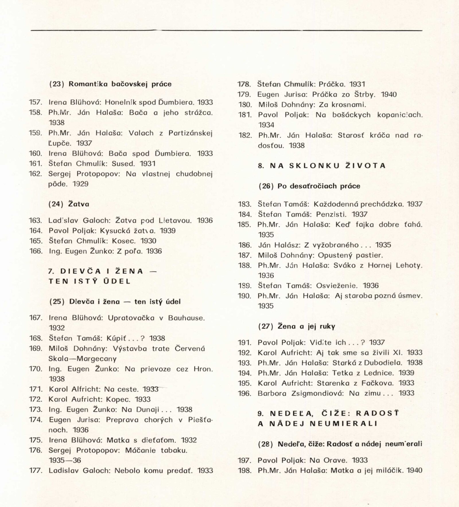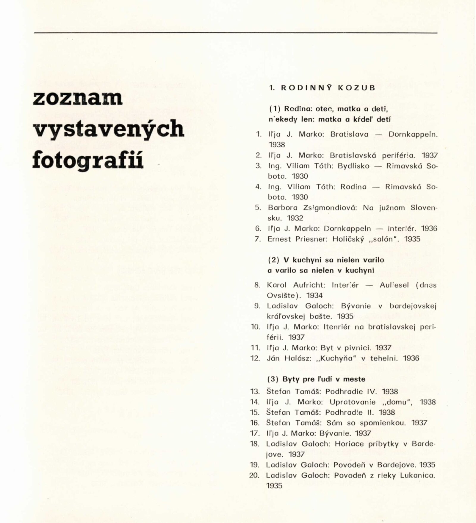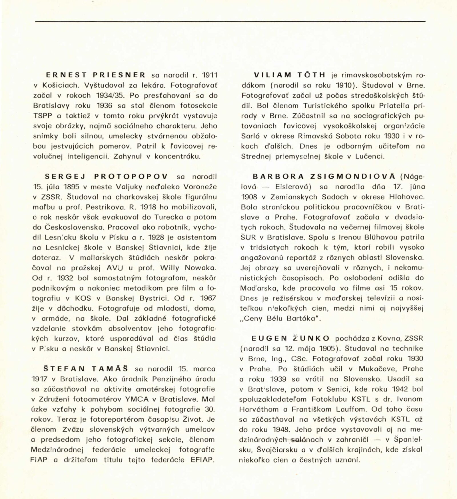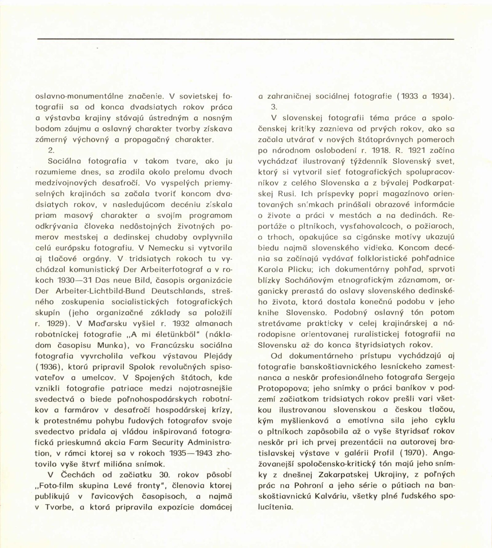Sociální fotografie na Slovensku: hala DU 3. 4. – 27. 4. 1973 / Převzatý katalog Sociálná fotografia na Slovensku. Retrospektívna výstava 1971 k 50. výročiu KSČ: Výstavná sieň Dušana Jurkoviča Bratislava 21. 10. – 7. 11. 1971 / Text: Irena Blühová, Karol Aufricht, Ľudovít Hlaváč. Bratislava: Mestský dom kultury a osvety, 1971. – 58 s., obr. – DU 588
