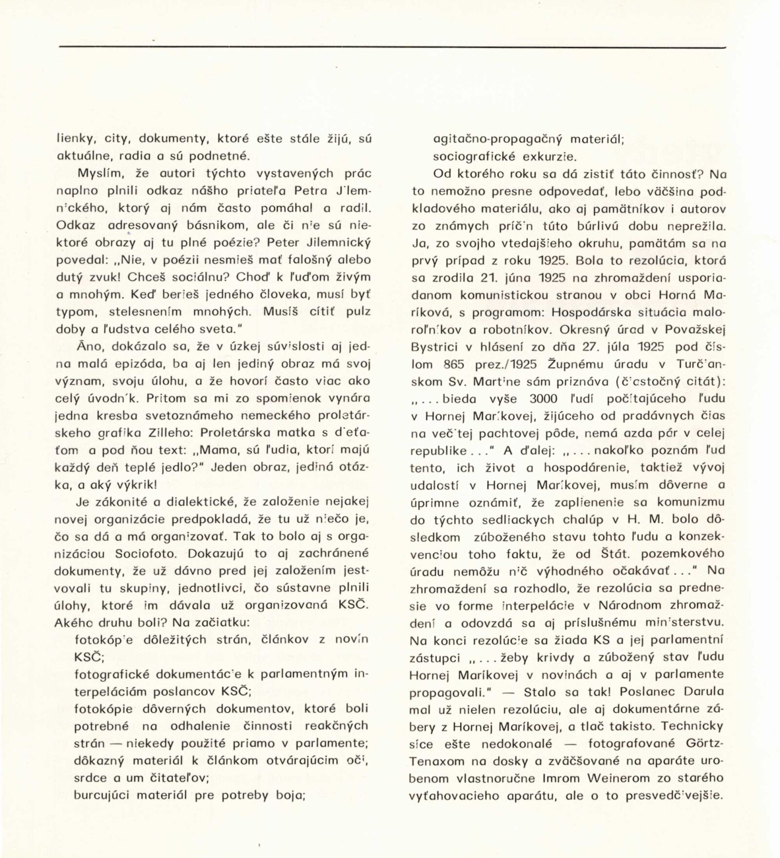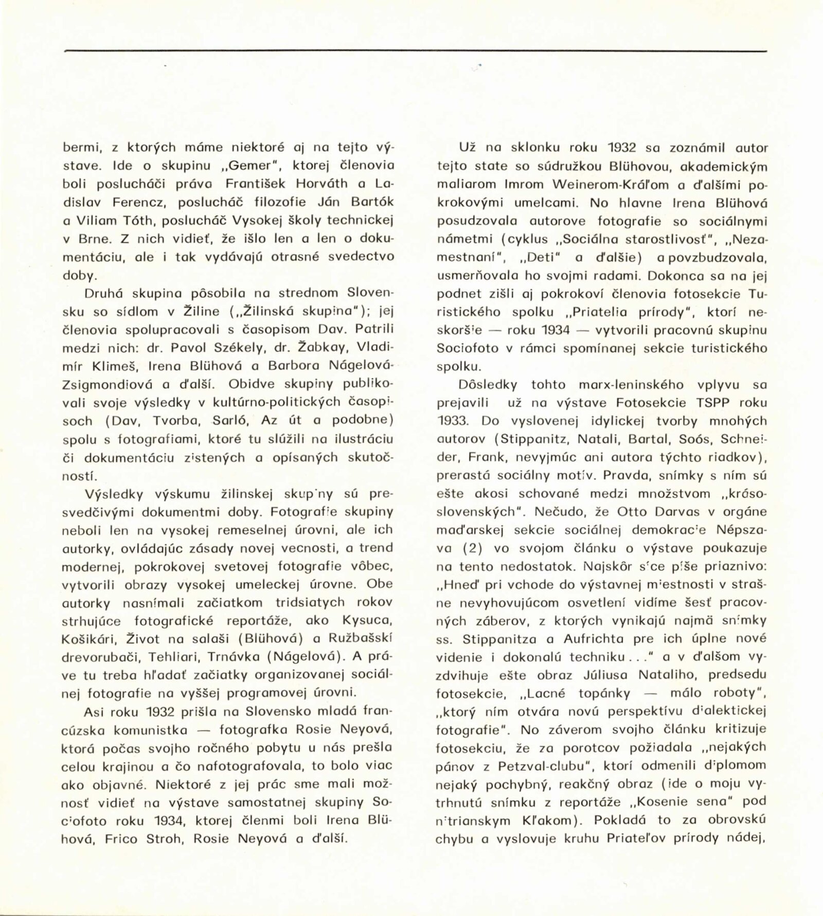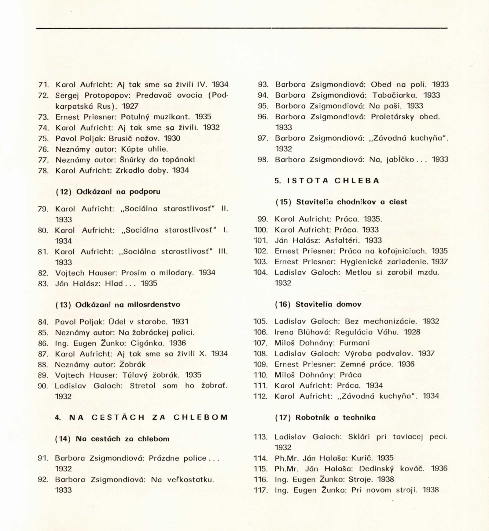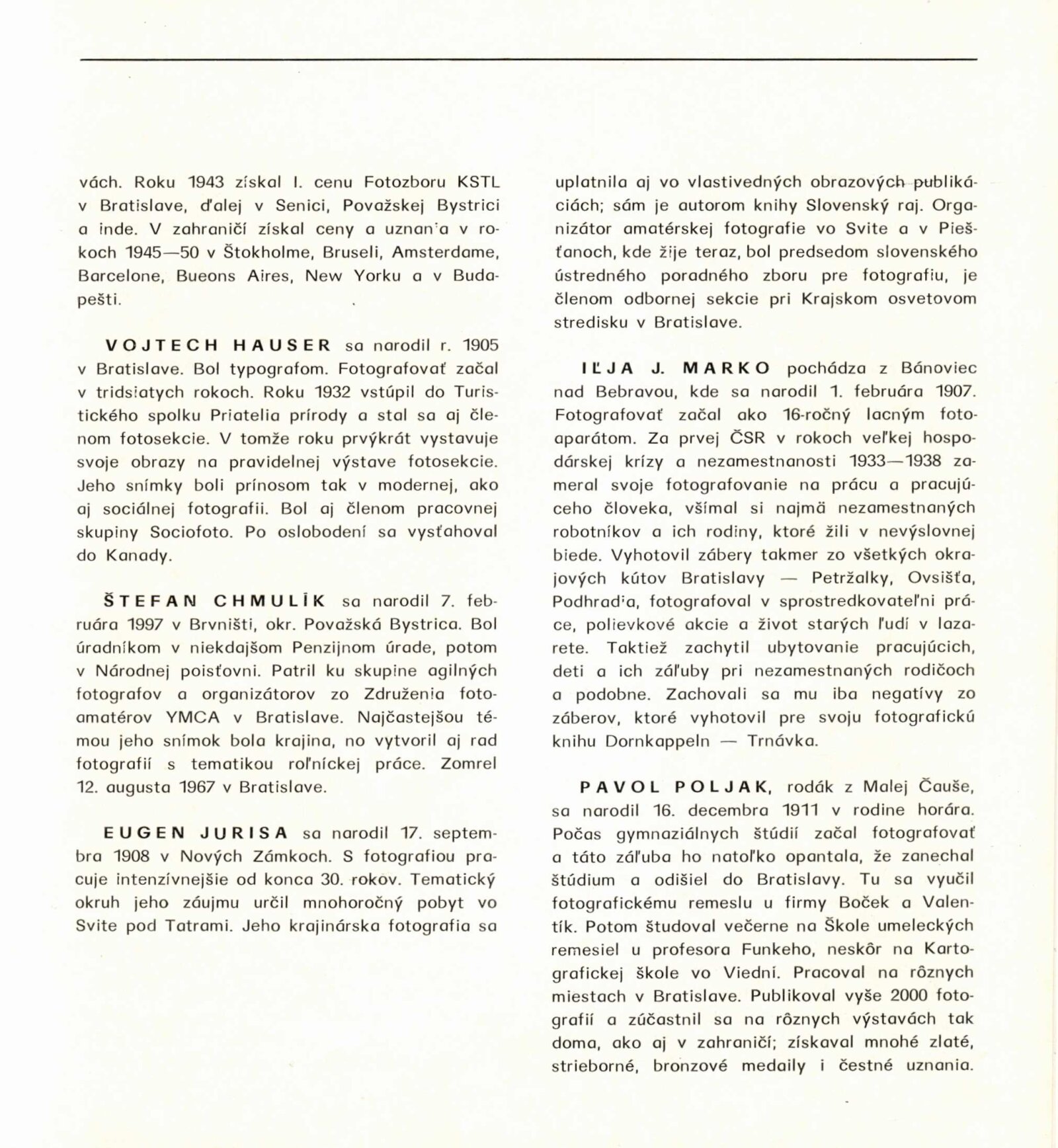 Sociální fotografie na Slovensku: hala DU 3. 4. – 27. 4. 1973 / Převzatý katalog Sociálná fotografia na Slovensku. Retrospektívna výstava 1971 k 50. výročiu KSČ: Výstavná sieň Dušana Jurkoviča Bratislava 21. 10. – 7. 11. 1971 / Text: Irena Blühová, Karol Aufricht, Ľudovít Hlaváč. Bratislava: Mestský dom kultury a osvety, 1971. – 58 s., obr. – DU 588