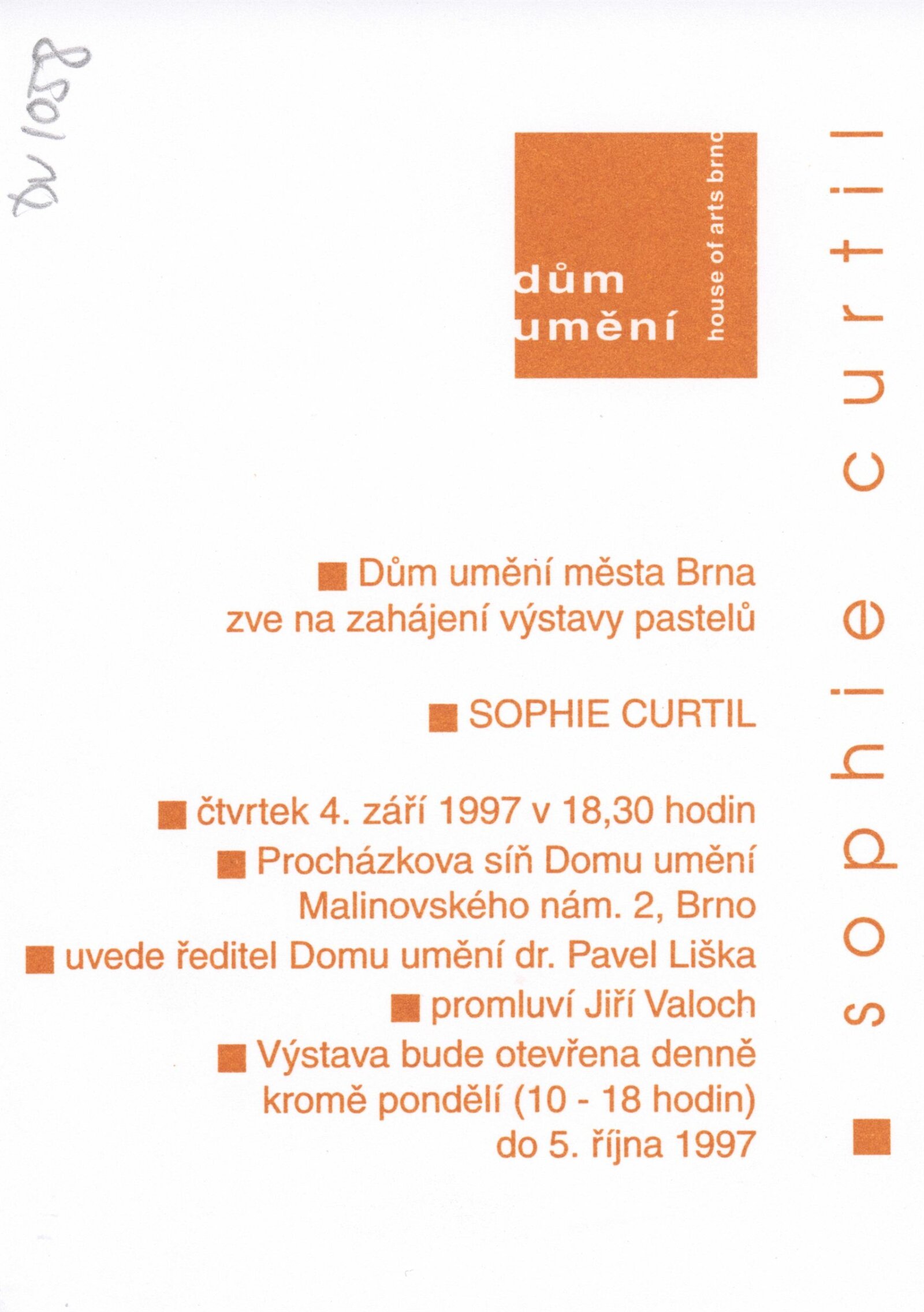 Sophie Curtil: Dům umění města Brna, Procházkova síň, 4. 9. – 5. 10. 1997 / Text: Jiří Valoch. – Brno: DUmB, 1997. – skládačka (6 s., obr.), DU 1058. – MZK