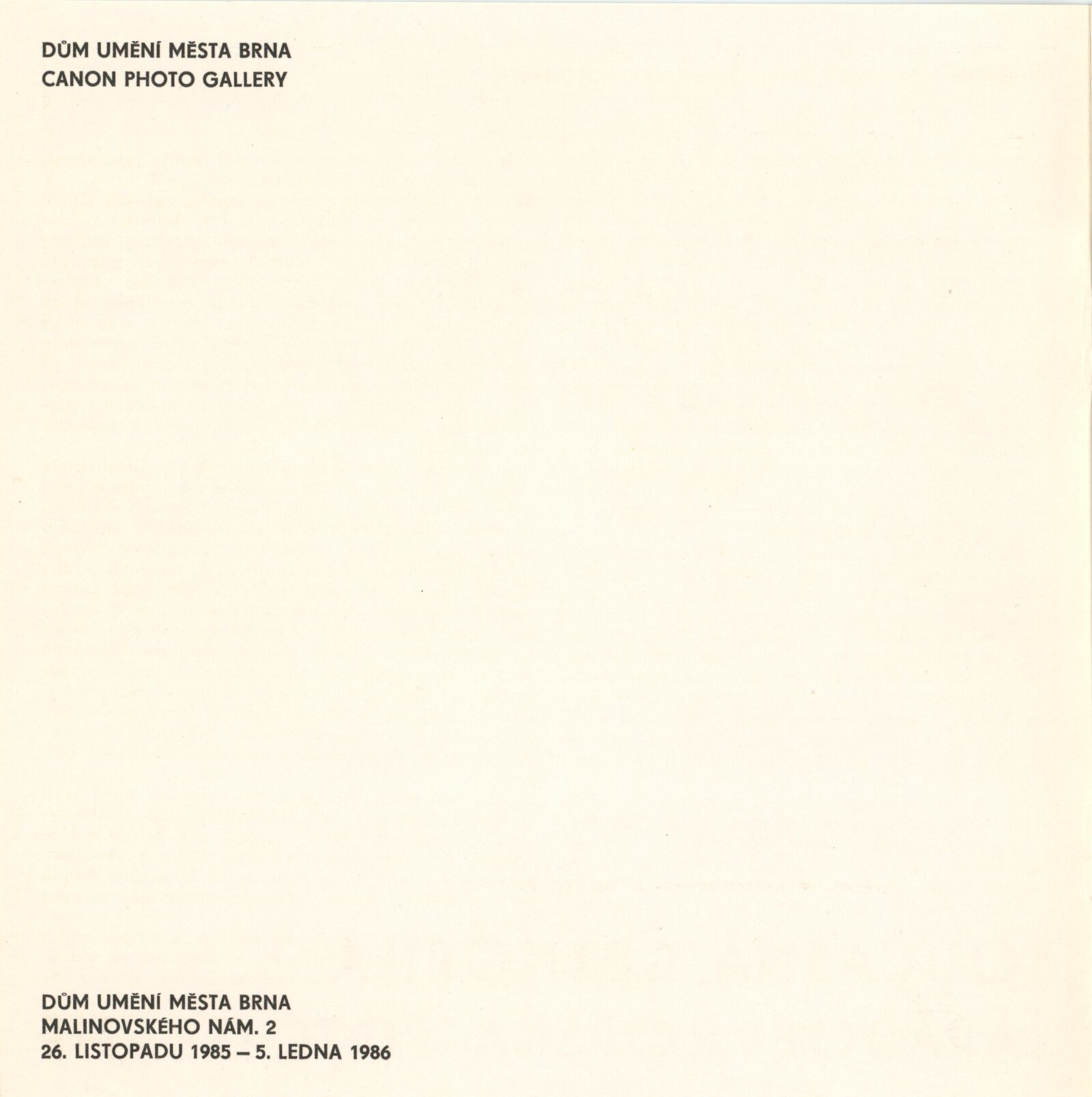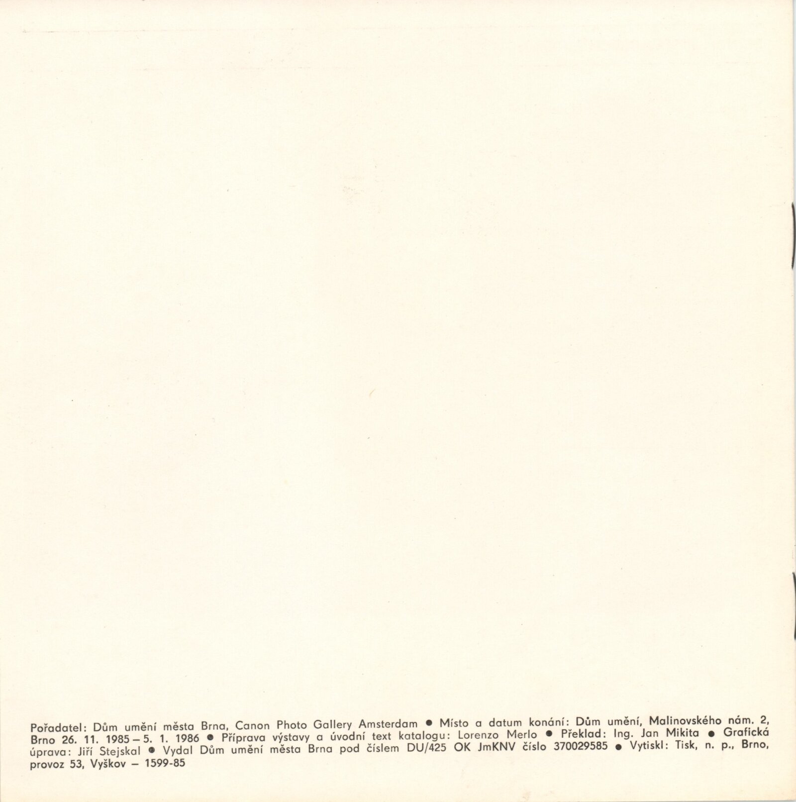 Současná černobílá západoevropská fotografie: Dům umění města Brna, hala, 26. 11. 1985 – 5.1. 1986 / Text: Lorenzo Merlo. – Brno: DUmB, 1985. – 9 s., obr., DU 808. – MG