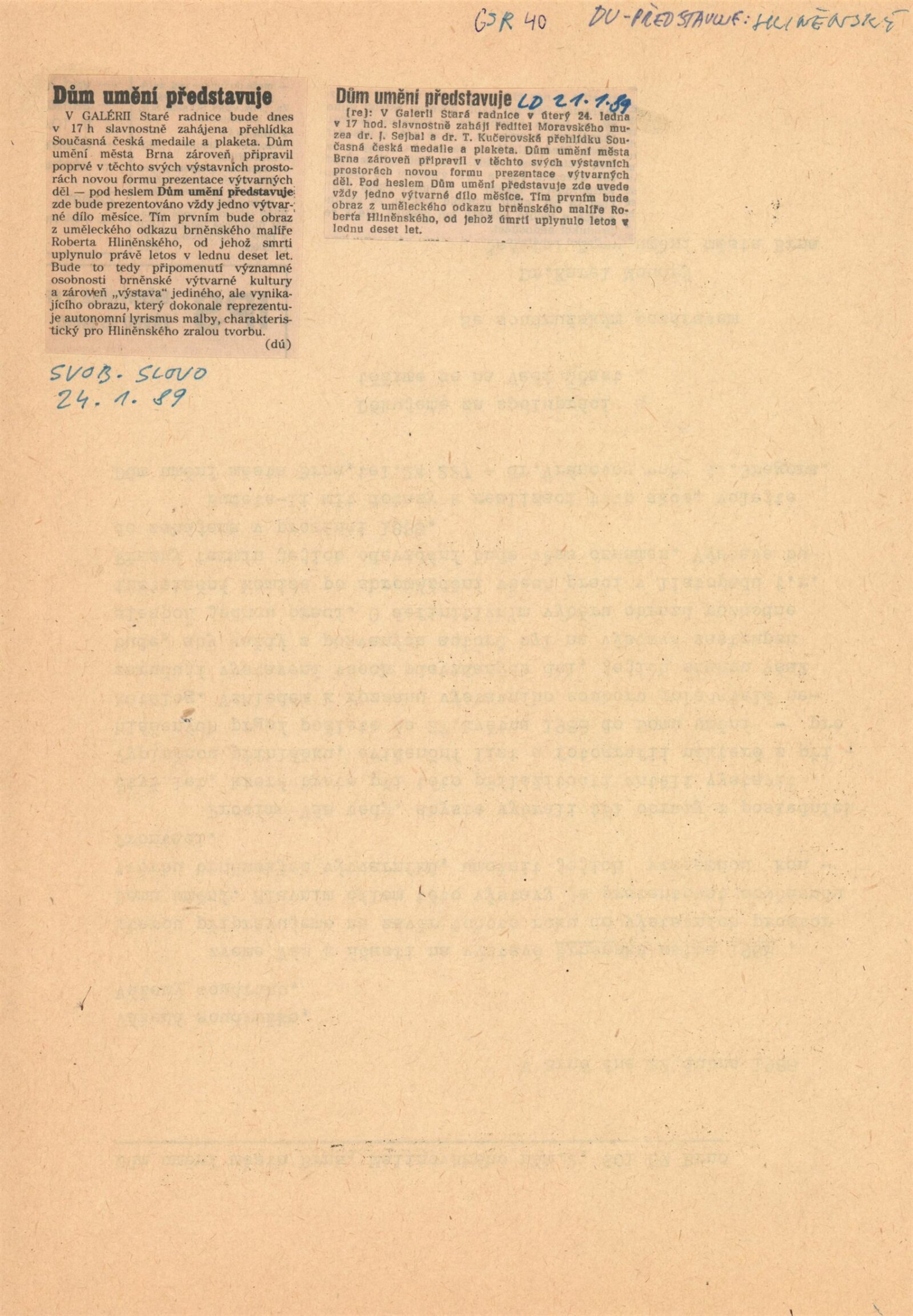žádost a potvrzení o konání výstavy, recenze v tisku