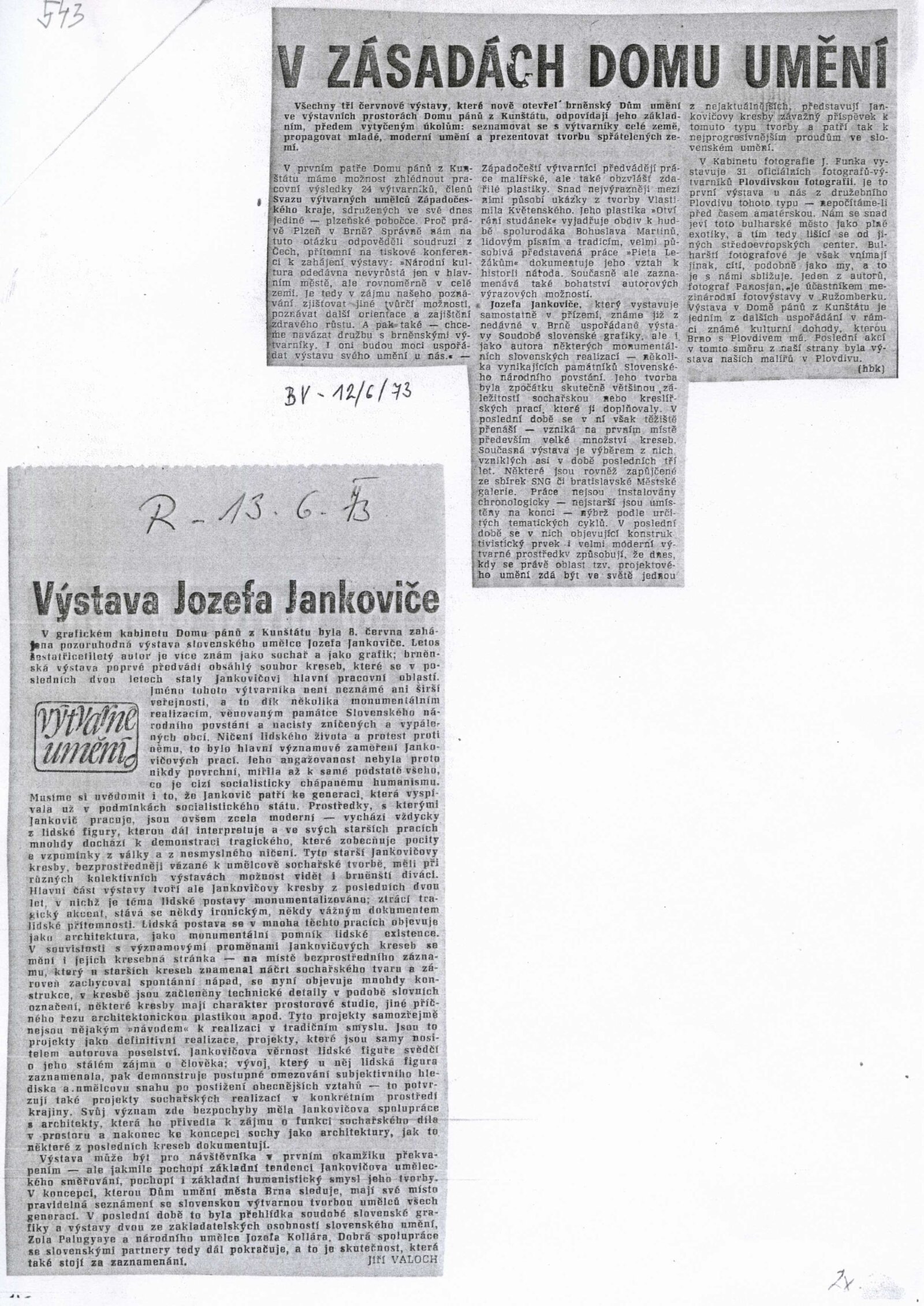 pozvánka, fotografie z vernisáže a výstavy, seznam děl (RJ), zpráva o výstavě, recenze v tisku