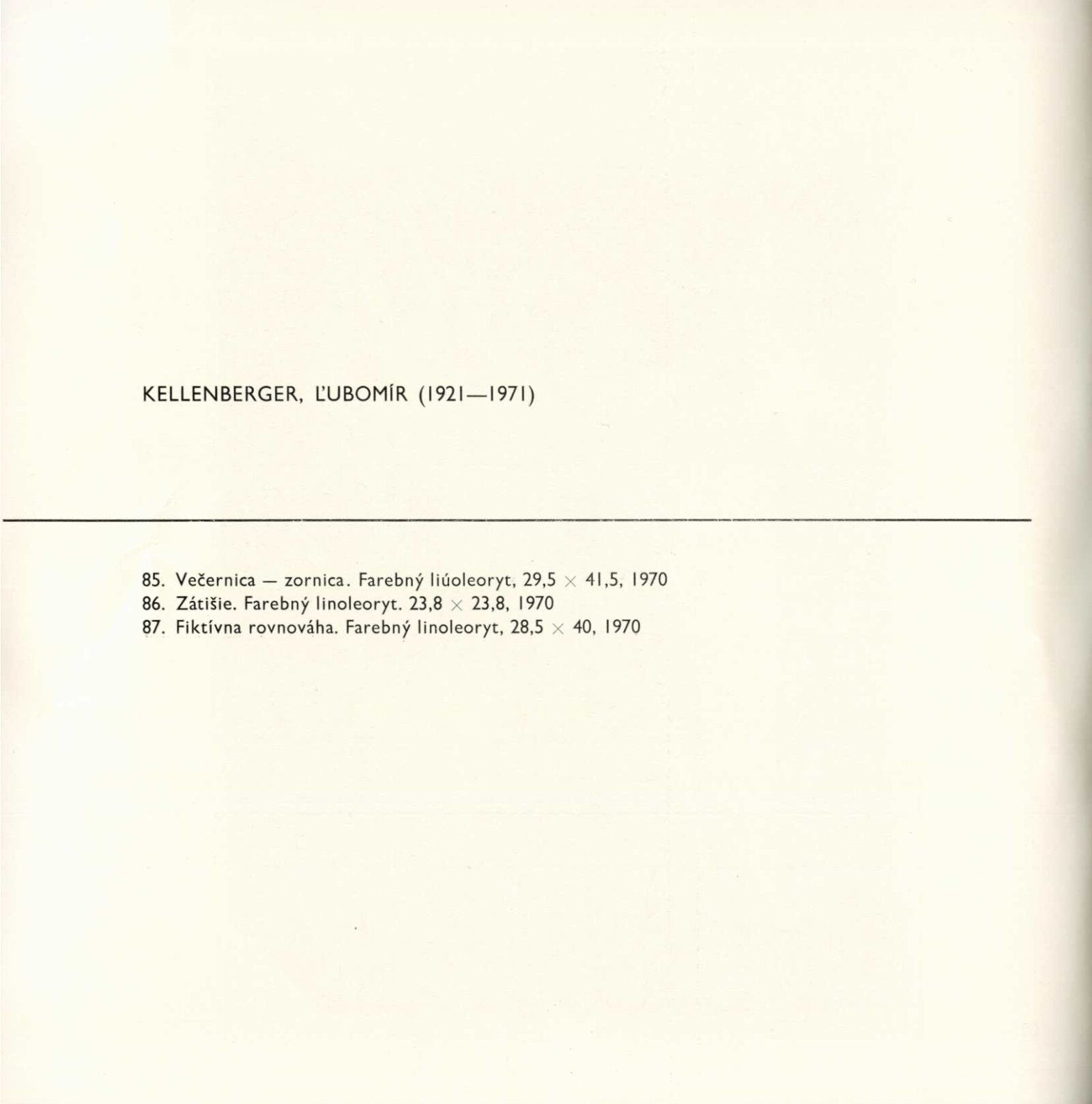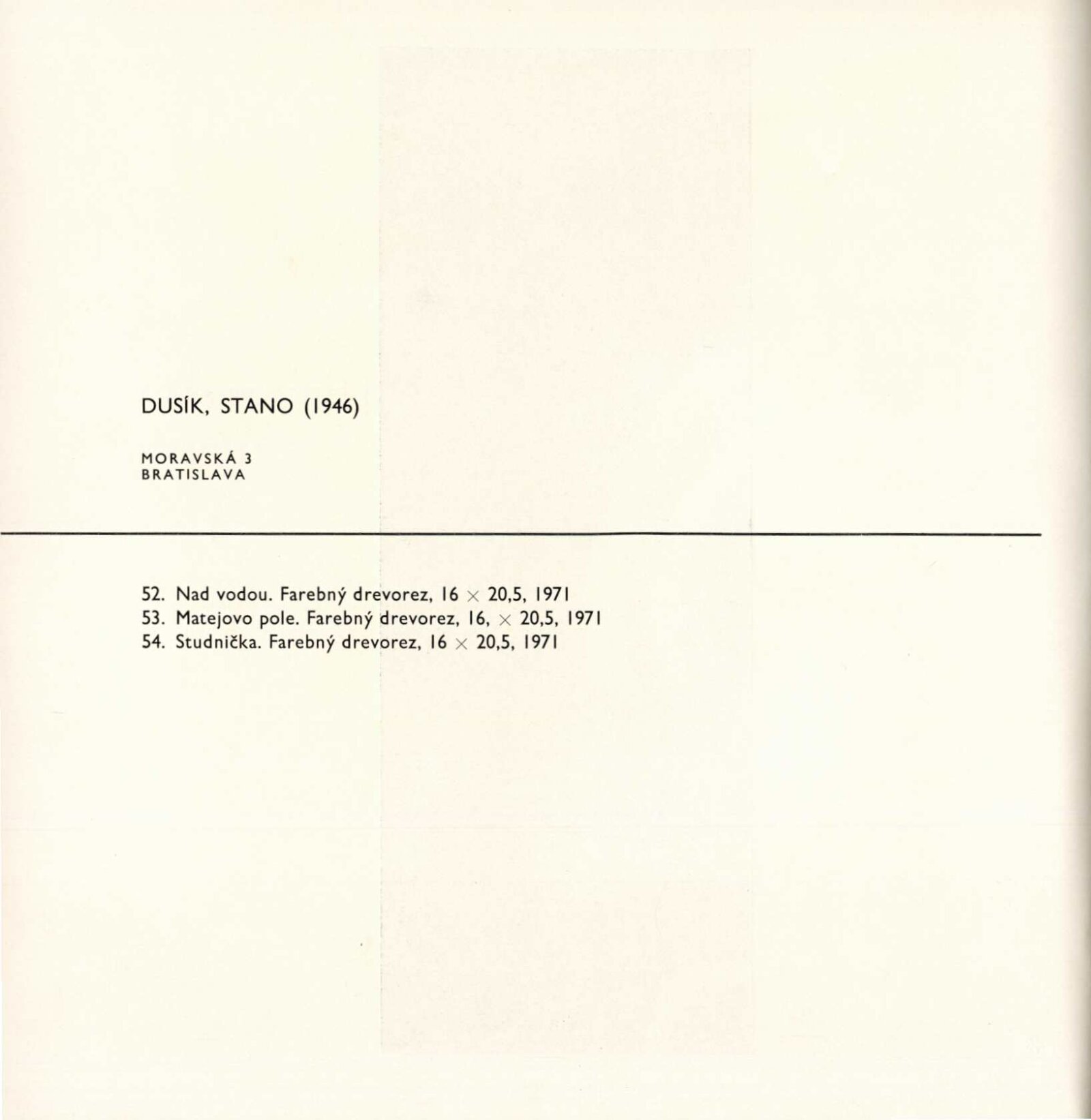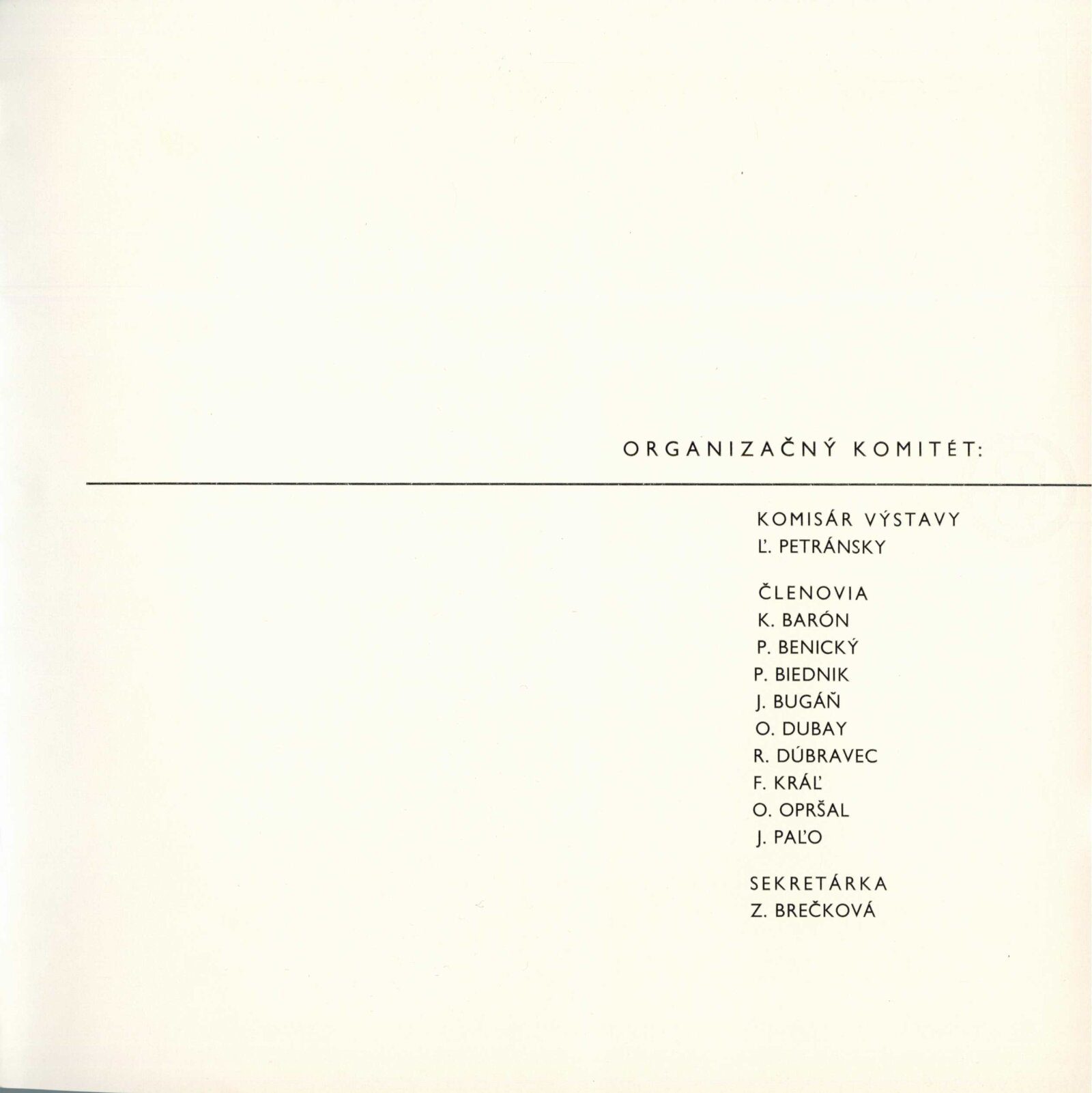 Současná slovenská grafika: Dům umění / Dům pánů z Kunštátu, 131. výstava Kabinetu grafiky, 4. 2. – 25. 2. 1973 / Převzatý katalog. Súčasná slovenská grafika: Oblastná galéria Banská Bystrica, 27. 8. – 31. 10. 1971 / Text: Ľudo Petránsky. – Banská Bystrica, Oblastná galéria, 1971. – 128 s., obr., vložený list s českým textem Ľ. Petránského, DPK 527