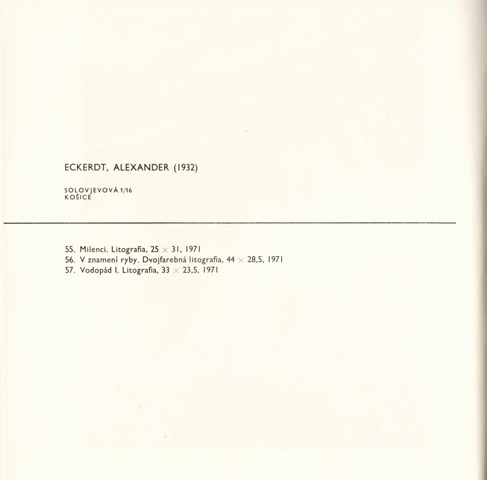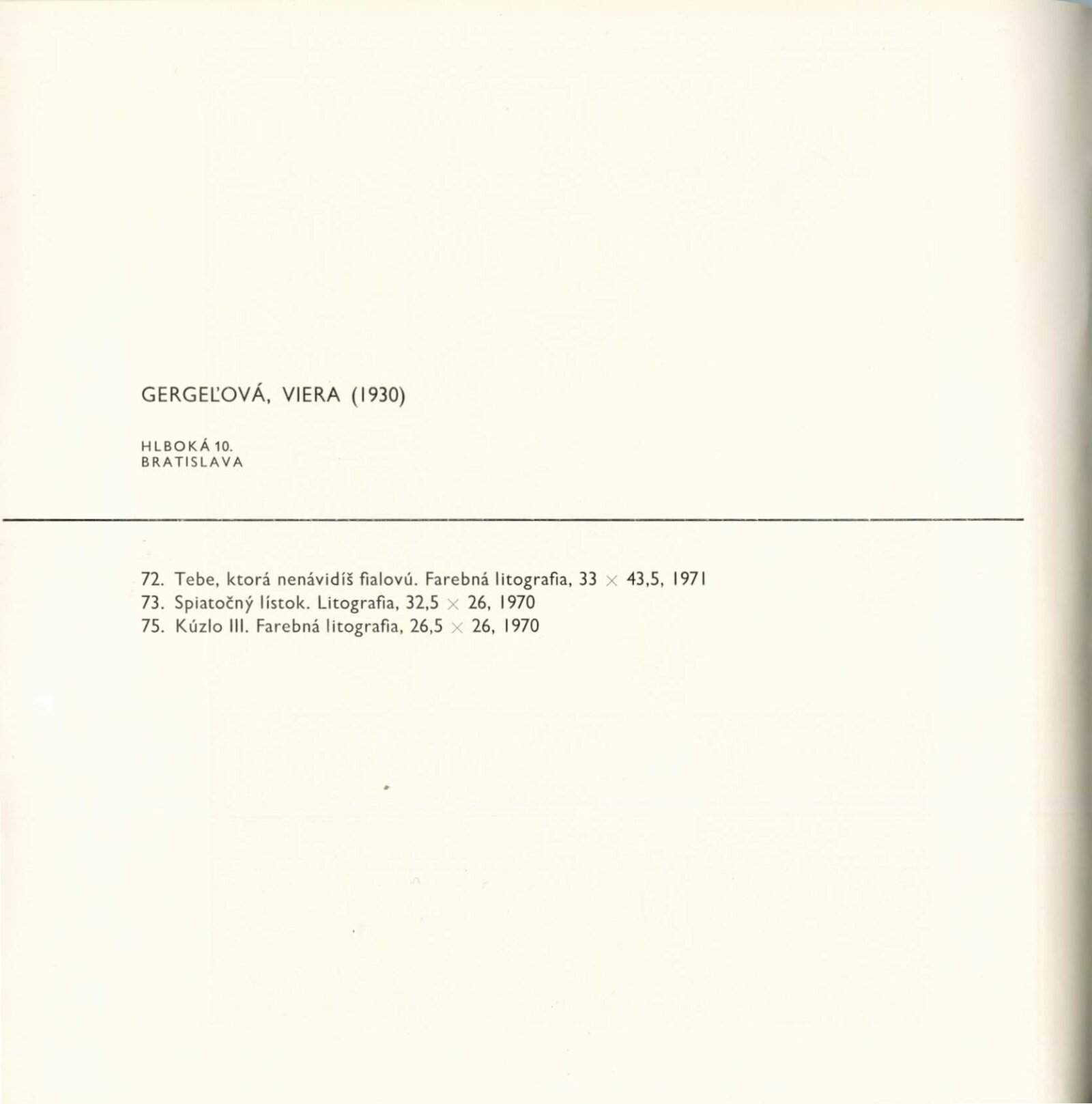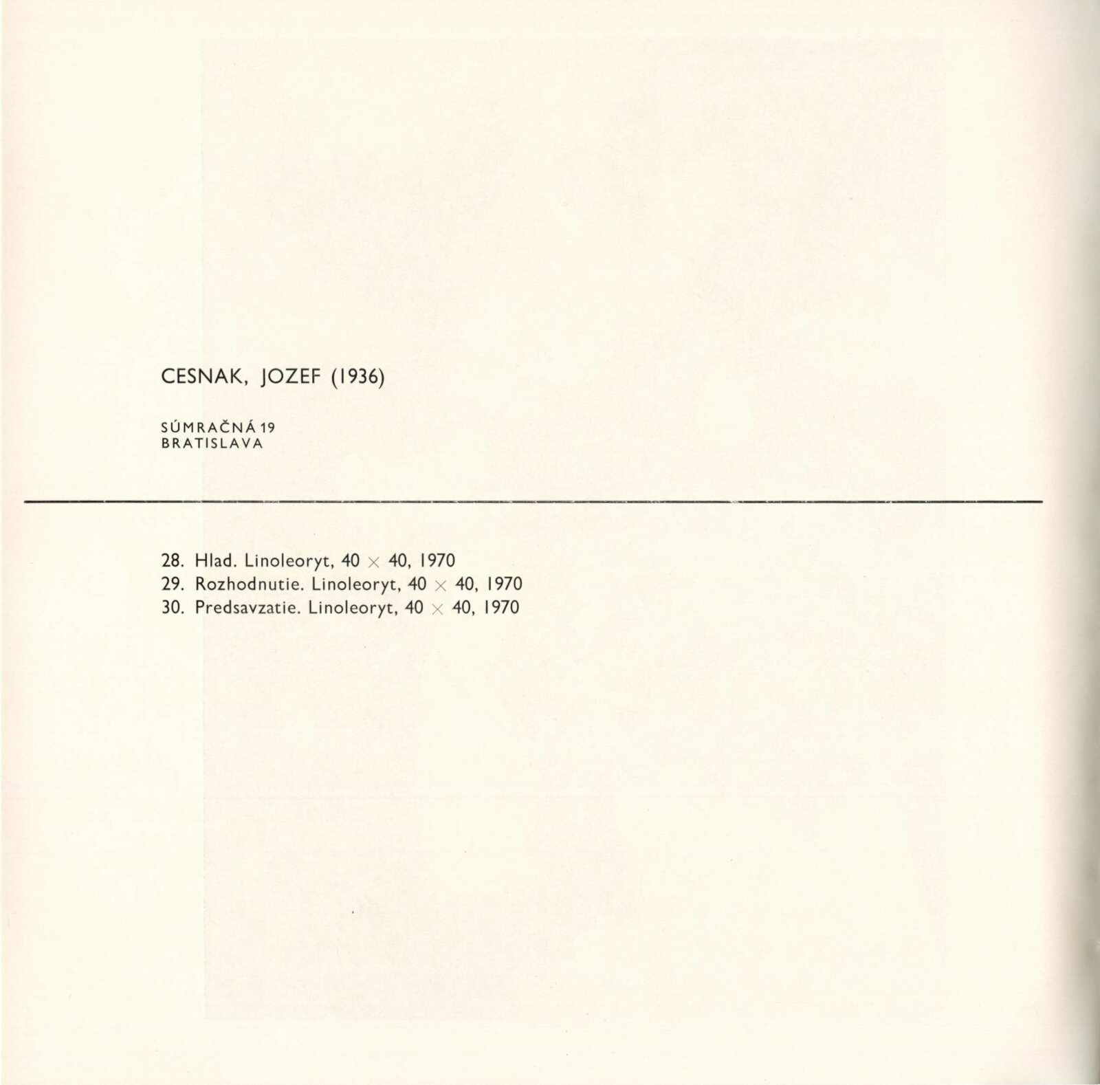 Současná slovenská grafika: Dům umění / Dům pánů z Kunštátu, 131. výstava Kabinetu grafiky, 4. 2. – 25. 2. 1973 / Převzatý katalog. Súčasná slovenská grafika: Oblastná galéria Banská Bystrica, 27. 8. – 31. 10. 1971 / Text: Ľudo Petránsky. – Banská Bystrica, Oblastná galéria, 1971. – 128 s., obr., vložený list s českým textem Ľ. Petránského, DPK 527