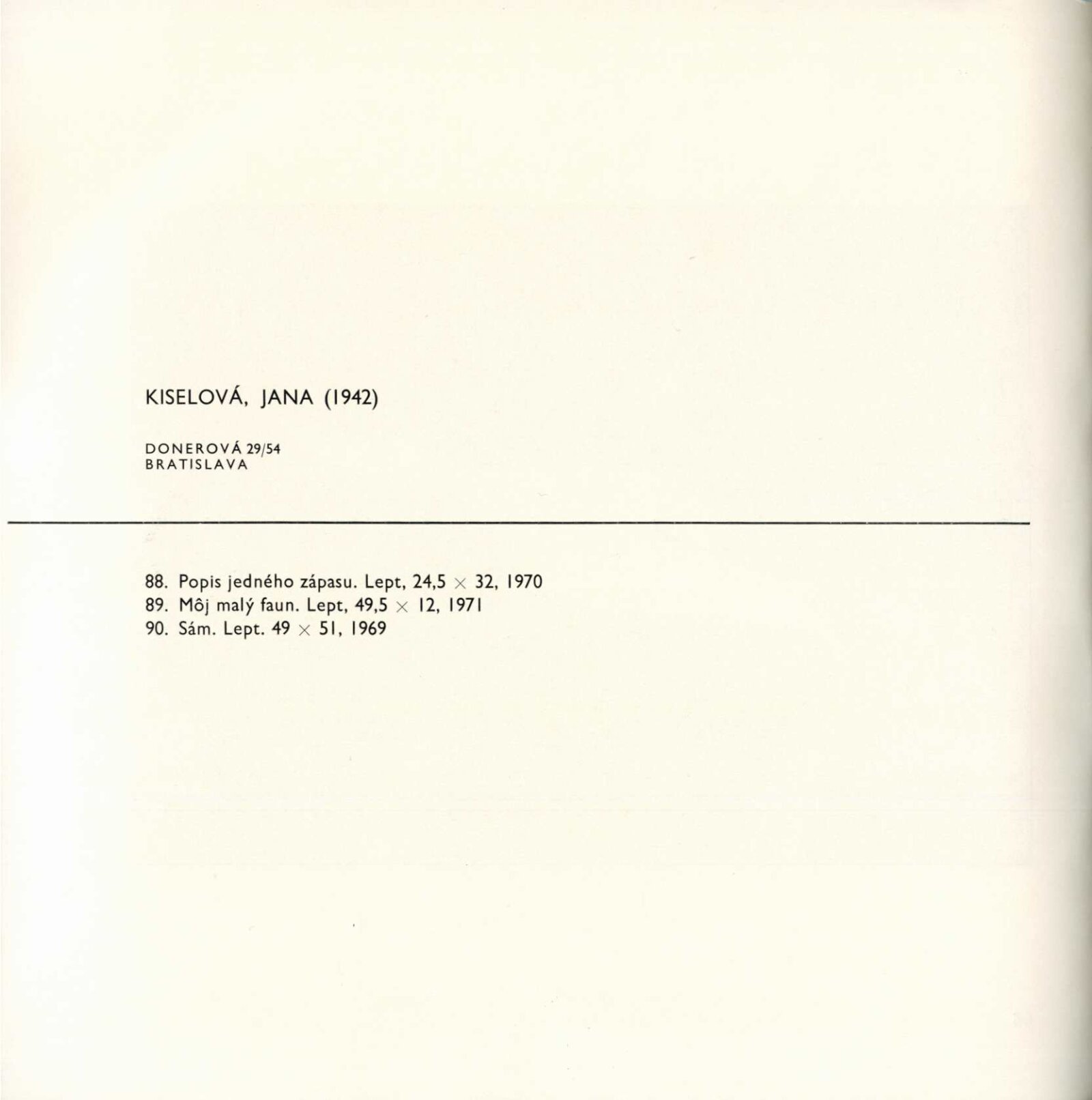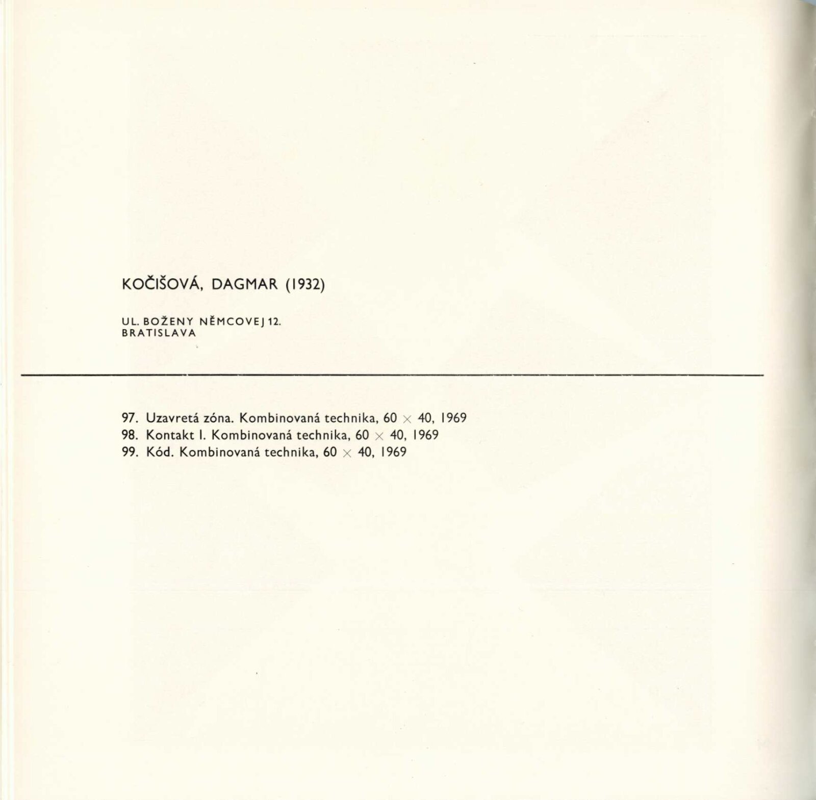 Edita Ambrušová, Eduard Antal, Josef Baláž, Stanislav Balko, Karol Baron, Peter Bartoš, Viera Bombová, Róbert Brož, Albín Brunovský, Josef Cesnak, Miroslav Cipár, Štefan Čapka, Juraj Deák, Milan Dobeš, Andrej Doboš, Orest Dubay, Róbert Dúbravec, Stano Dusík, Alexander Eckerdt, Rudolf Fila, Stanislav Filko, Ľudovít Fulla, Kveta Fulierová, Vladimír Gažovič, Viera Gergeľová, Mira Haberernová, Vincent Hložník, Jozef Jankovič, Ľubomír DaKellenberger, Jana Kiselová, Alojz Klimo, Tamara Klimová, Dagmar Kočišová, Július Koller, František Kráľ, Gustáv Kružič, Terézia Kružlicová, Miroslav Marček, Ján Ondriska, Jarmila Pavlíčková, Anna Pelikánová-Bartošová, Štefan Prukner, Naďa Rappensbergerová, Igor Rumanský, Emil Sedlák, Ivan Schurmann, Fudolf Sikora, Július Szabó, Kamila Štanclová, Alžběta Štefunková-Szabová, Gabriel Štrba, Dezider Tóth, Miloš Urbásek, Blanka Votavová, Ivan Vychlopen, Dušan Zapletal