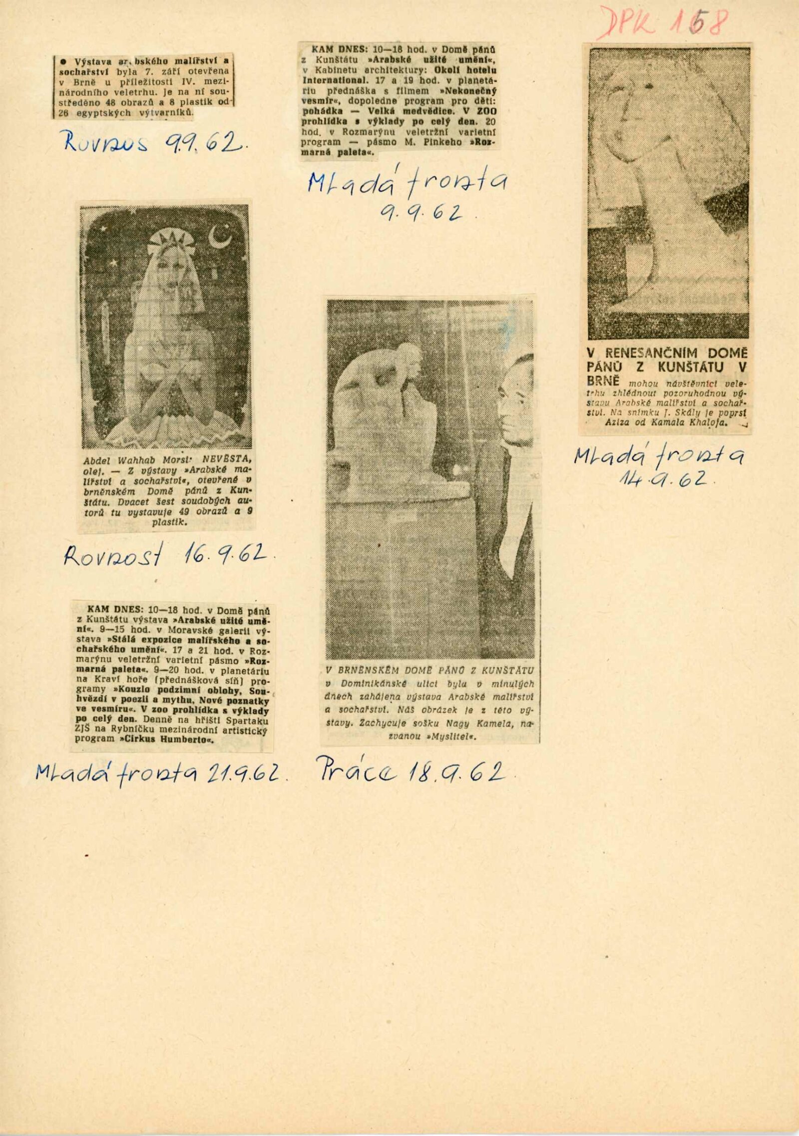 pozvánka, seznam vystavovaných prací, fotografie děl, korespondence (změna termínu výstavy, příprava a předání výstavy DU – Správa kulturních zařízení, MŠK), recenze v tisku, leták „Několik poznámek k současnému výtvarnému umění SAR“