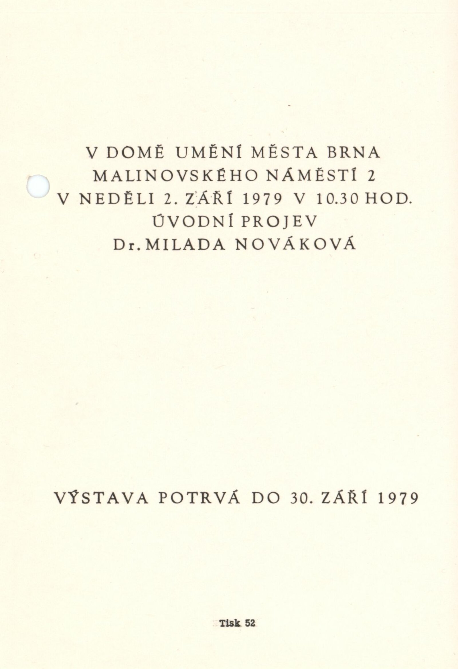Současný polský plakát. Výstava k 35. výročí vzniku Polské lidové republiky: hala Domu umění 2. 9. – 30. 9. 1979 / Text Milada Nováková. - Brno: DUmB, - 9 s., obr. + Seznam vystavených prací 2 s. DU 695; MZK; MG