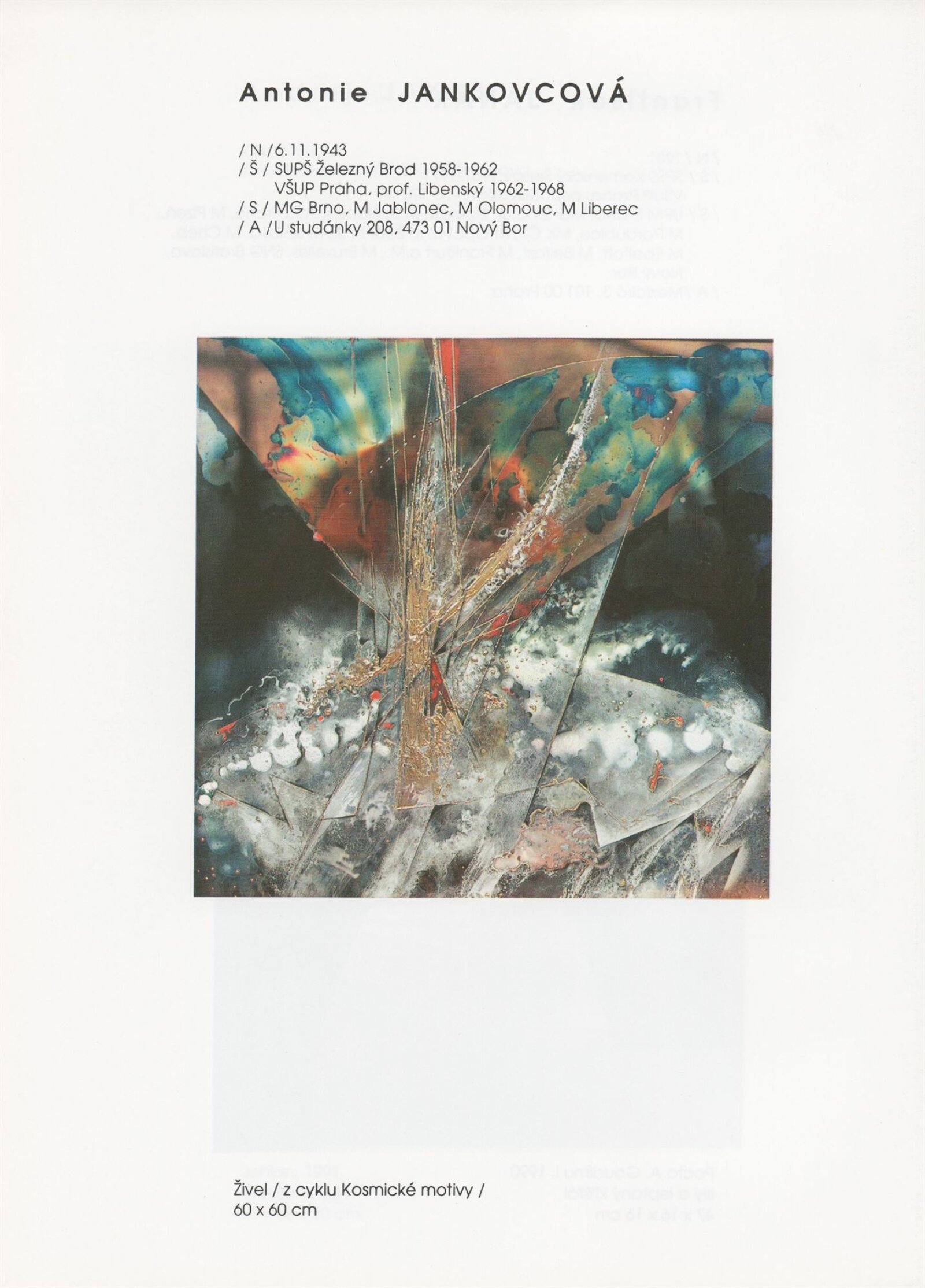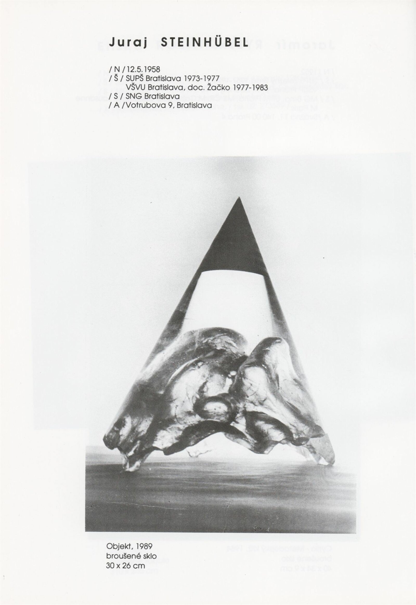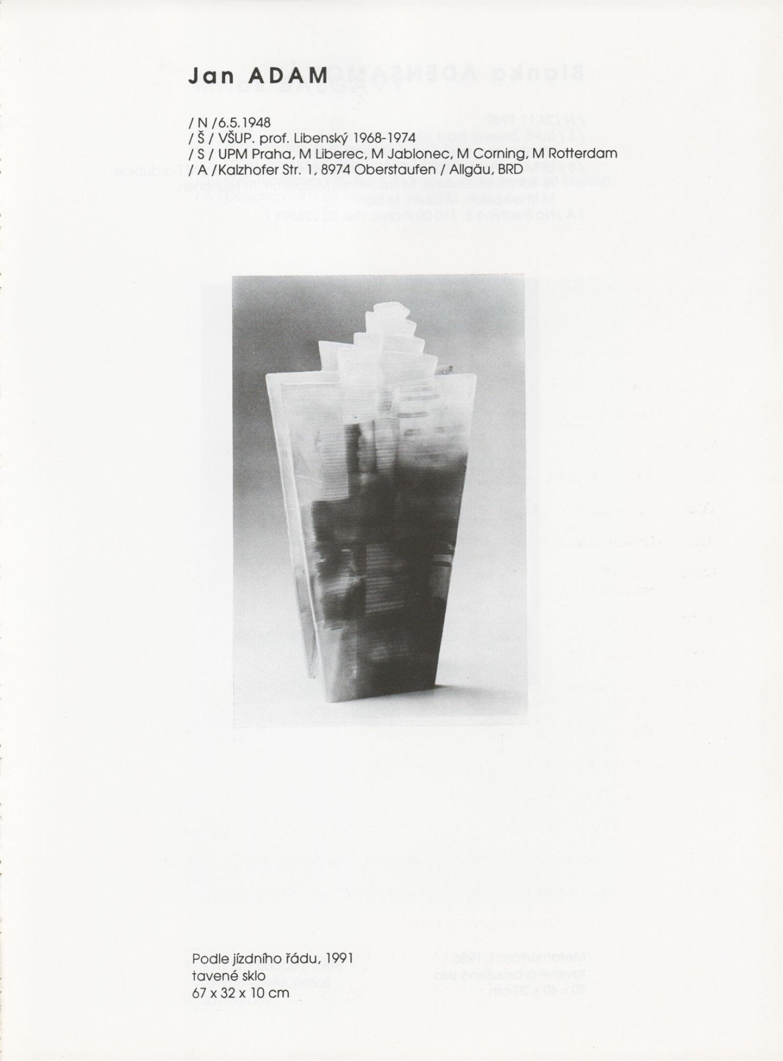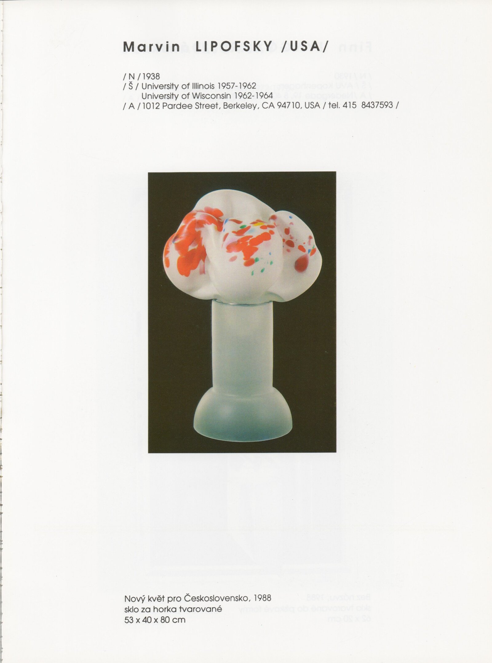 pozvánka, katalog, tisková zpráva, fotografie a negativy děl, záběr z výstavy, seznam děl, pojistný seznam, popisky prací, zápis ze schůzky, provozní a institucionální korespondence, nabídky repríz výstavy v zahraničí, potvrzení o převzetí děl, žádosti, dohody, smlouvy, reverzy, adresy, recenze v tisku, poznámky, katalogy - R. a M. Roubíčkovi., 1992, Eva Heřmanská, P. R. Manoušek, Interglas sympozium Nový Bor 1988, pozvánky k jiným výstavám