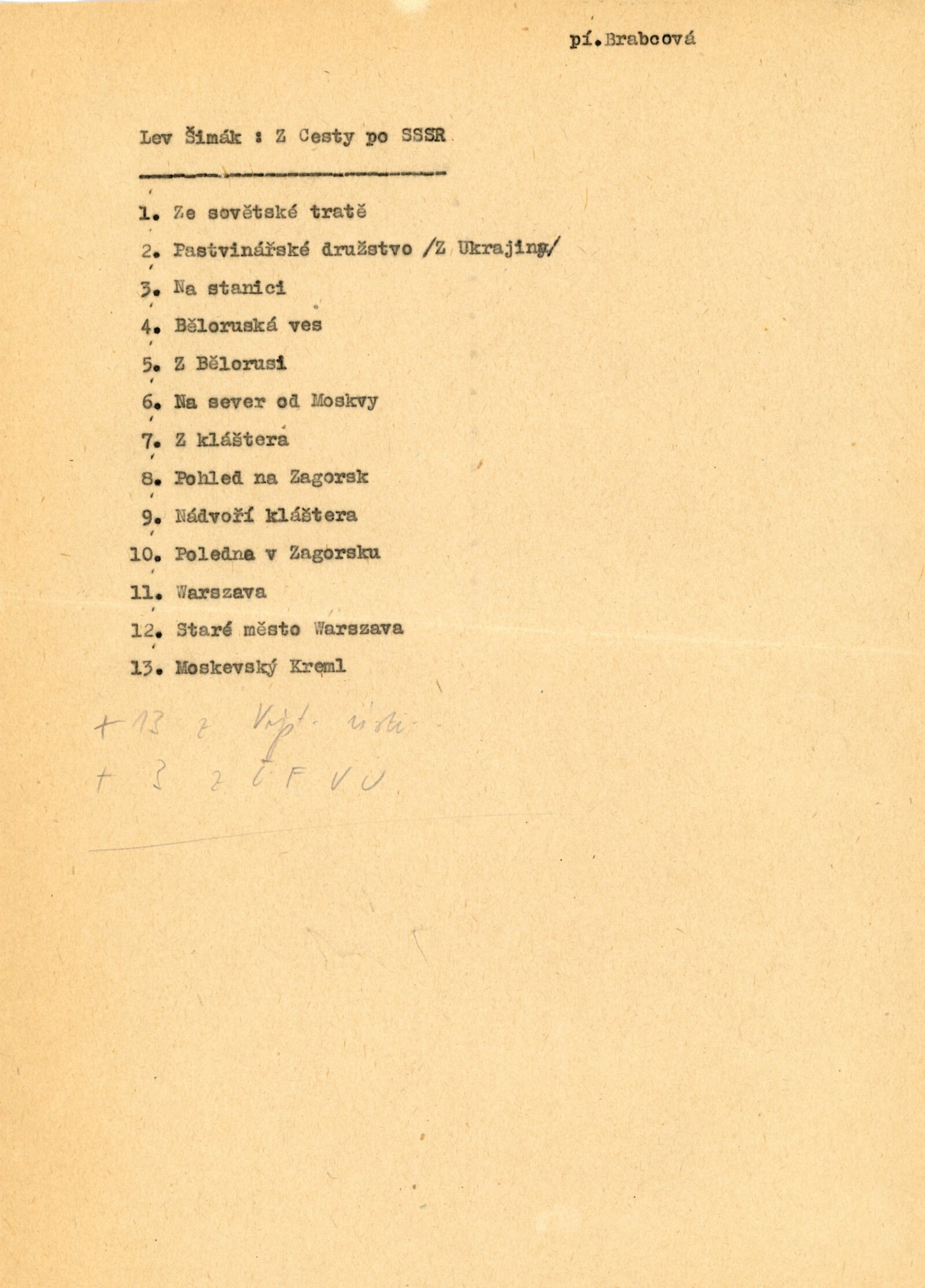 text k výstavě, korespondence (o výstavě, Adolf Kroupa, L. Kára – Výtvarný život, korespondence o vracení exponátů), soupis děl Lva Šimáka, program akcí k MČSSP