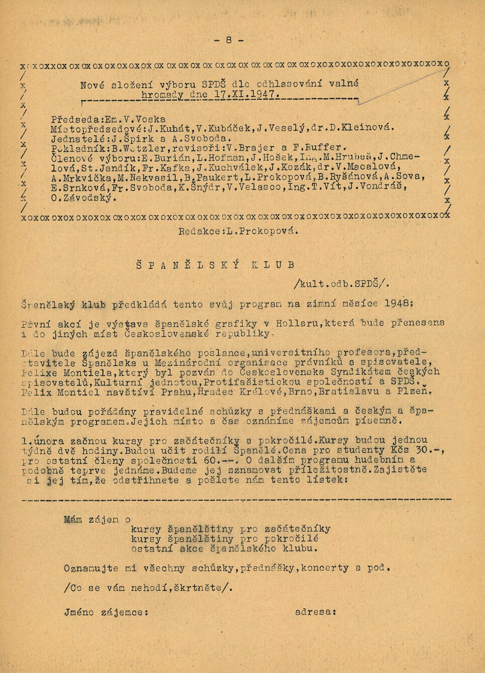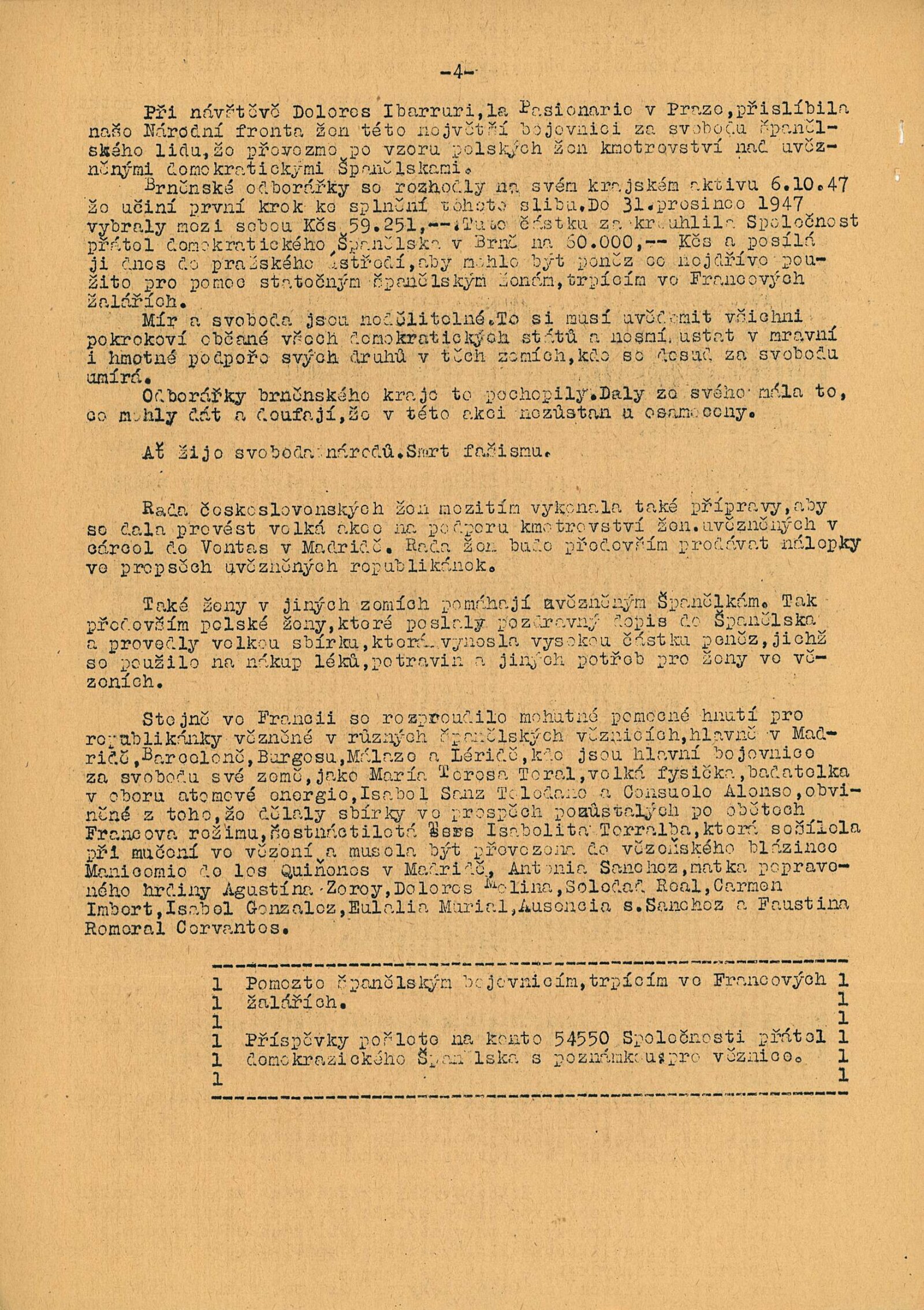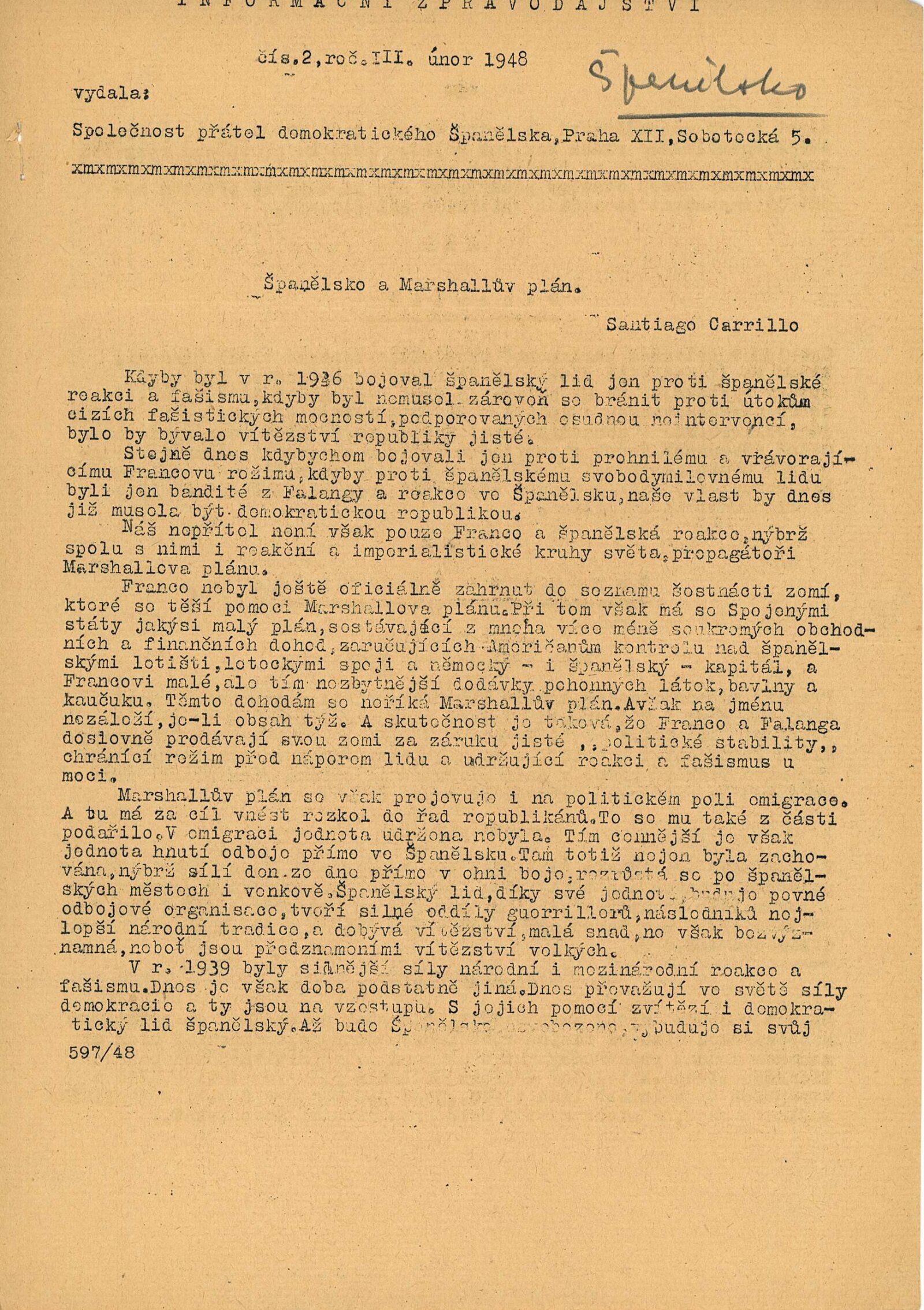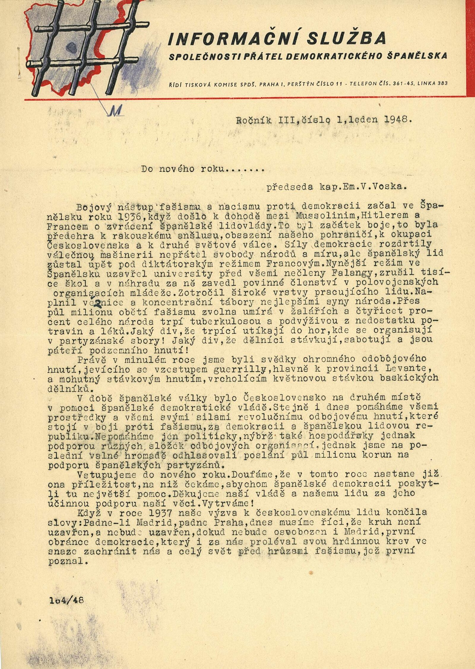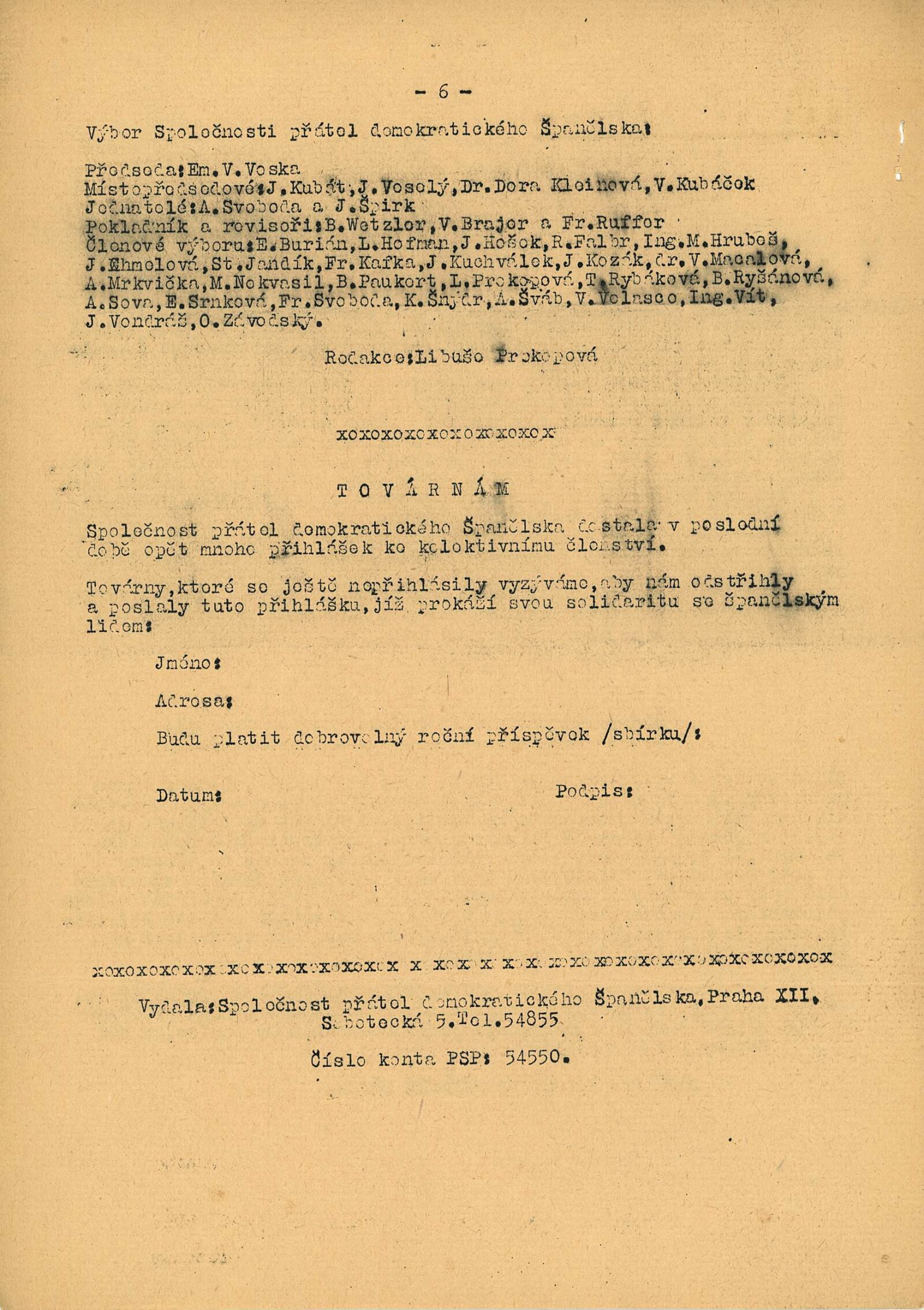 pozvánka, seznam vystavujících umělců, fotografie z výstavy, texty Informační služby Společnosti přátel demokratického Španělska, provozní korespondence (s cenami prodejných děl), potvrzení o převzetí děl, recenze v tisku, pozvánka na výstavu (Praha)