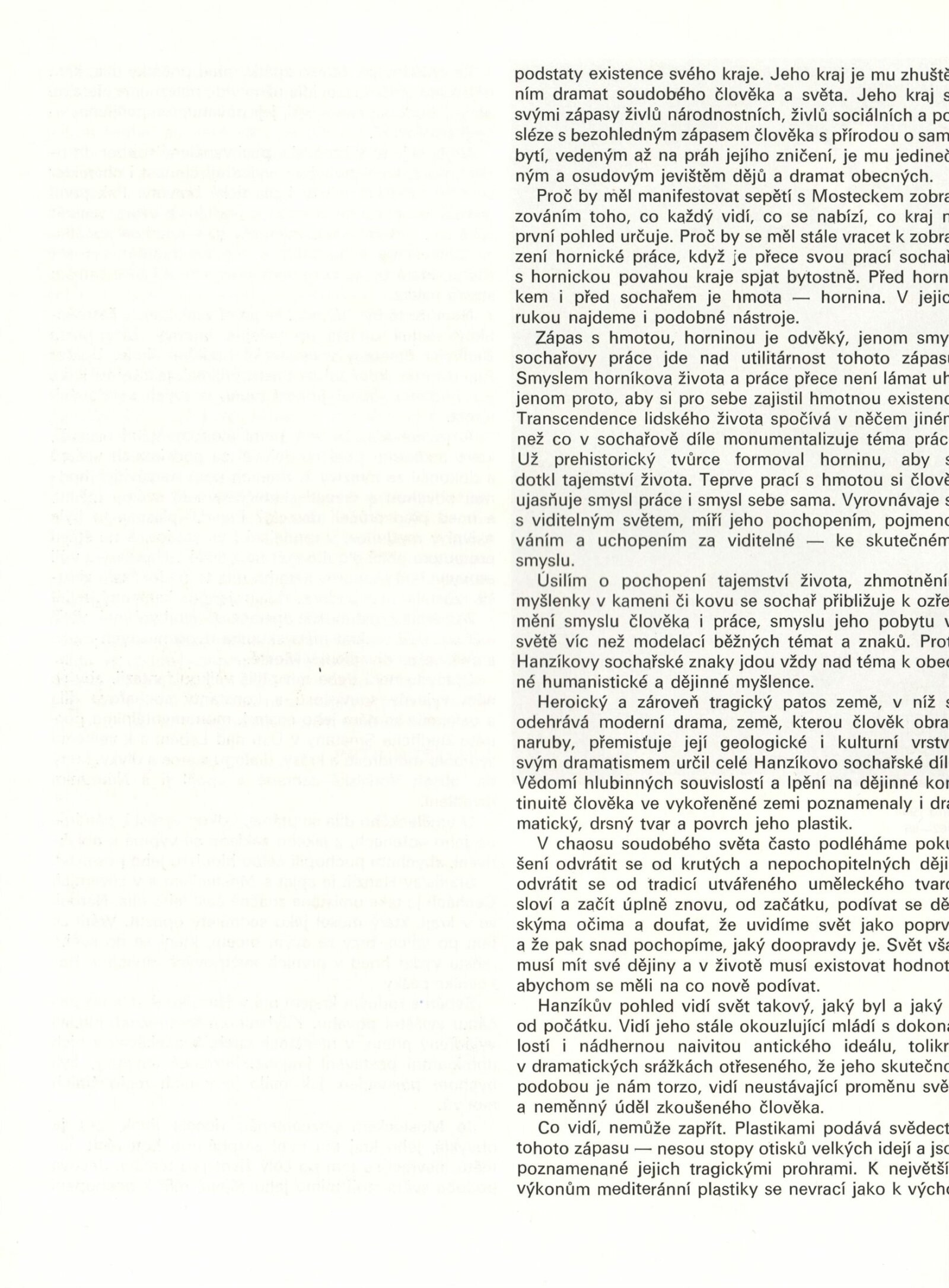 pozvánka, katalog - putovní výstava, katalog (stejný pro Most, Litoměřice, Prahu, Košice a Brno), plakát na výstavu, fotografie ke katalogu, fotografie výstavy a vernisáže, seznam vystavených děl, pojistný seznam, provozní korespondence, smlouvy o výpůjčce, navracení a potvrzení převzetí, rukopis sochařovy žádosti o výstavu, žádost o povolení výstavy, recenze v tisku, pozvánka na výstavu Stanislava Hanzíka v SČGVU v Litoměřících (1986), Košicích (1986), Mostě, deska s nahranou básní Máj od K. H. Máchy, přednes R. Hrušínky (vydané VSVU v Mostě, 1986)