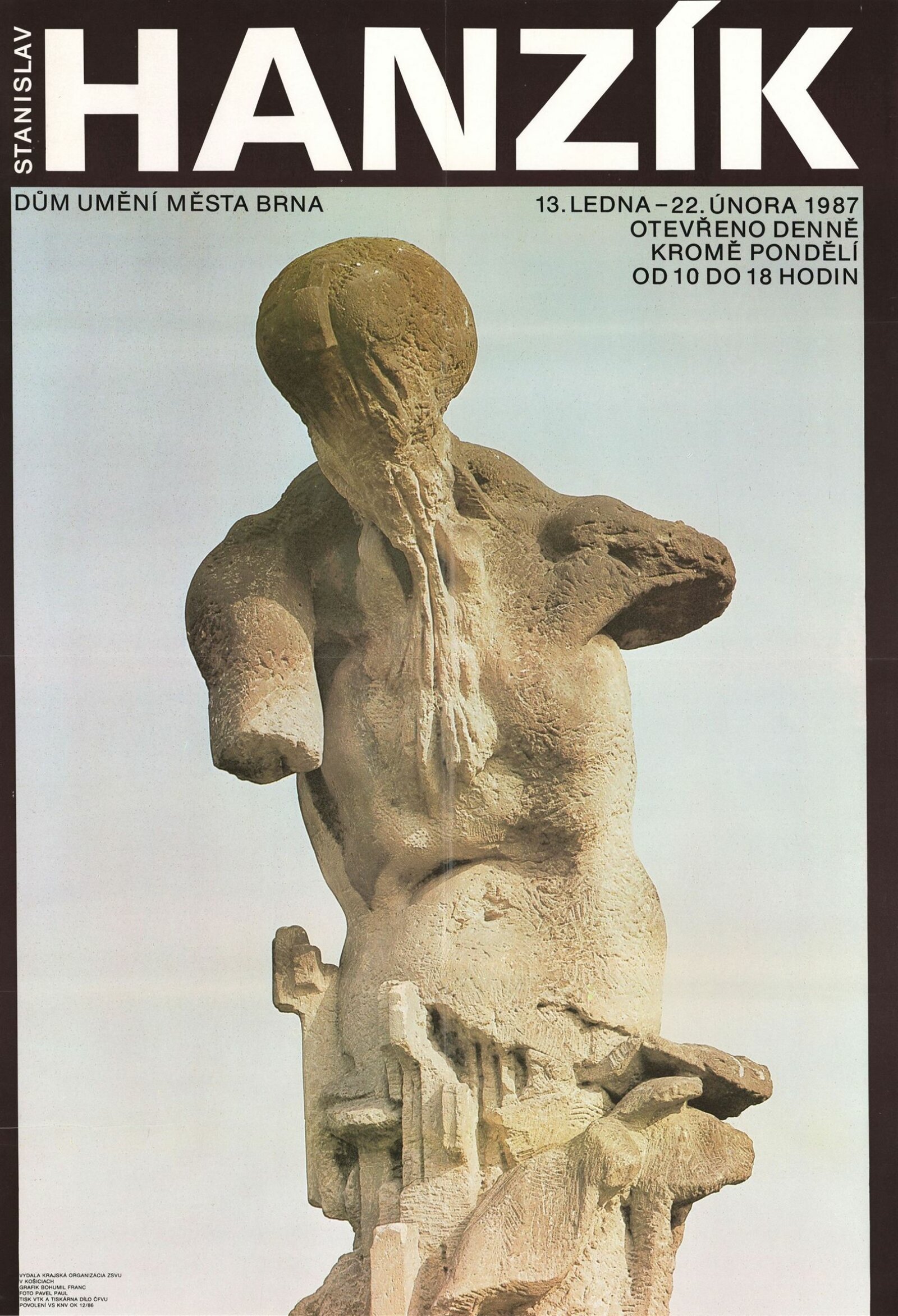 Stanislav Hanzík. Výběr z díla ... Dům umění města Brna [13. 1. – 15. 2. 1987] / Text Petr Wittlich. - Most: Výstavní síň výtvarného umění, [1986]. - [74] s., obr. Životní data, realizace v architektuře, portrét DU 830