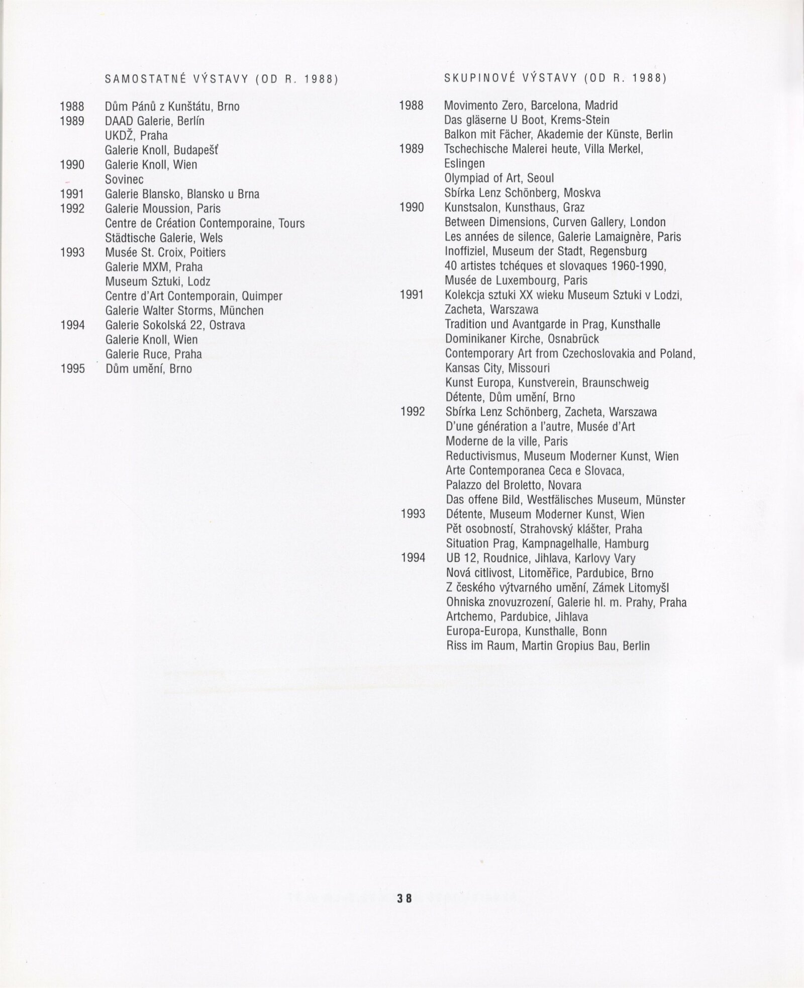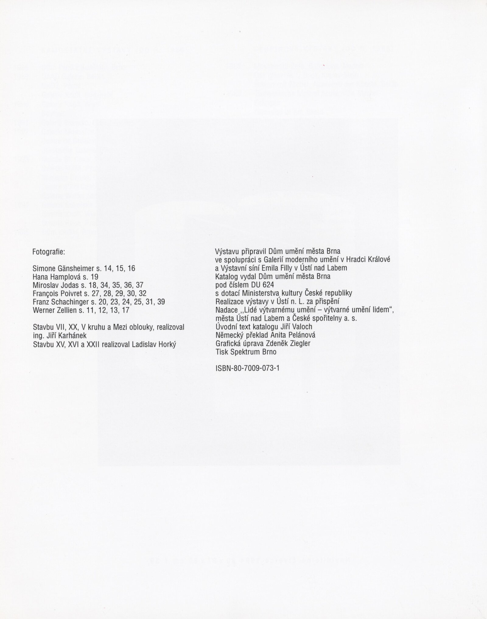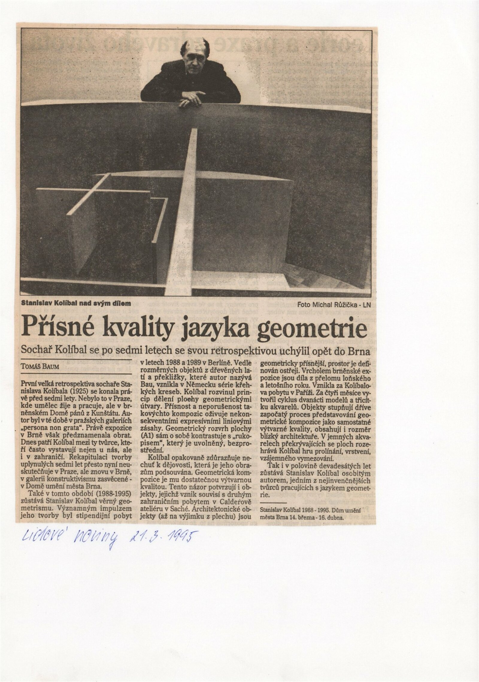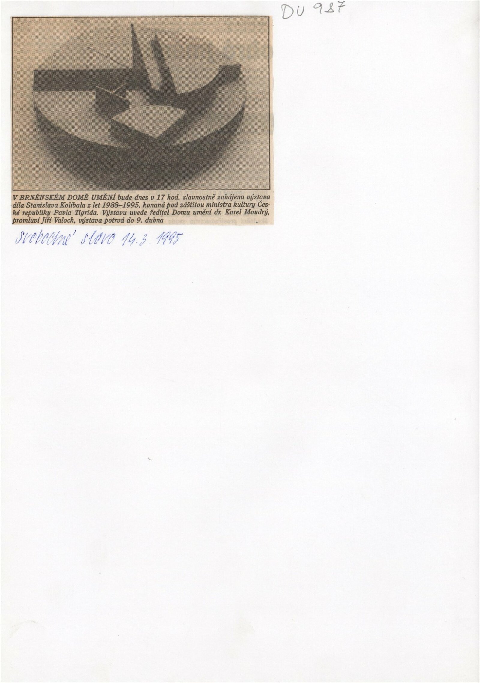 Stanislav Kolíbal, 1988–1995: Dům umění města Brna 14. 3. – 16. 4. 1995 ... / Text Jiří Valoch, autor. - Brno: DUmB, - 39 s., obr. DU 987; MZK