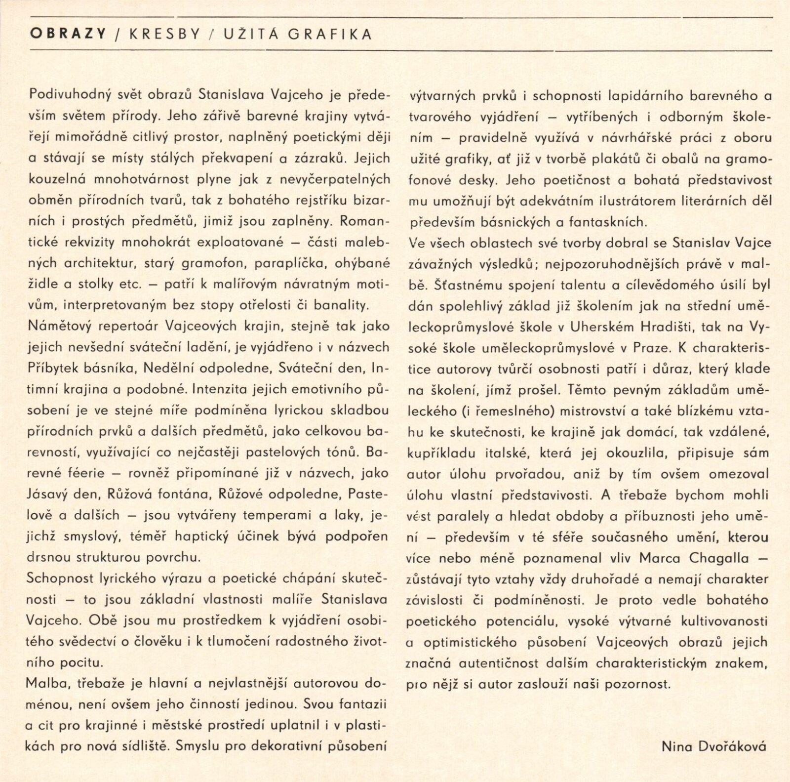 Stanislav Vajce. Obrazy, kresby, užitá grafika: Dům umění / Dům pánů z Kunštátu, 1. patro, 24. 2. – 23. 3. 1980 ... / Text Nina Dvořáková. - Brno: DUmB, - 16 s., obr., Životní data, výstavy, DPK 730; MZK; MG