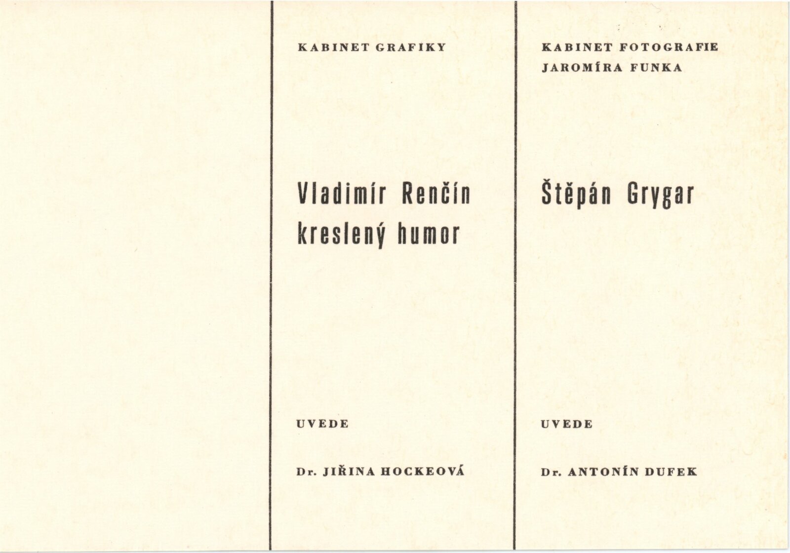 Štěpán Grygar. Fotografie: Dům umění / Dům pánů z Kunštátu, Kabinet fotografie Jaromíra Funka, 18. 12. 1984 – 13. 1. 1985 / Text: Antonín Dufek. – Brno: DUmB, 1984. – 9 s., obr., životní data, DPK 832. – MZK; MG