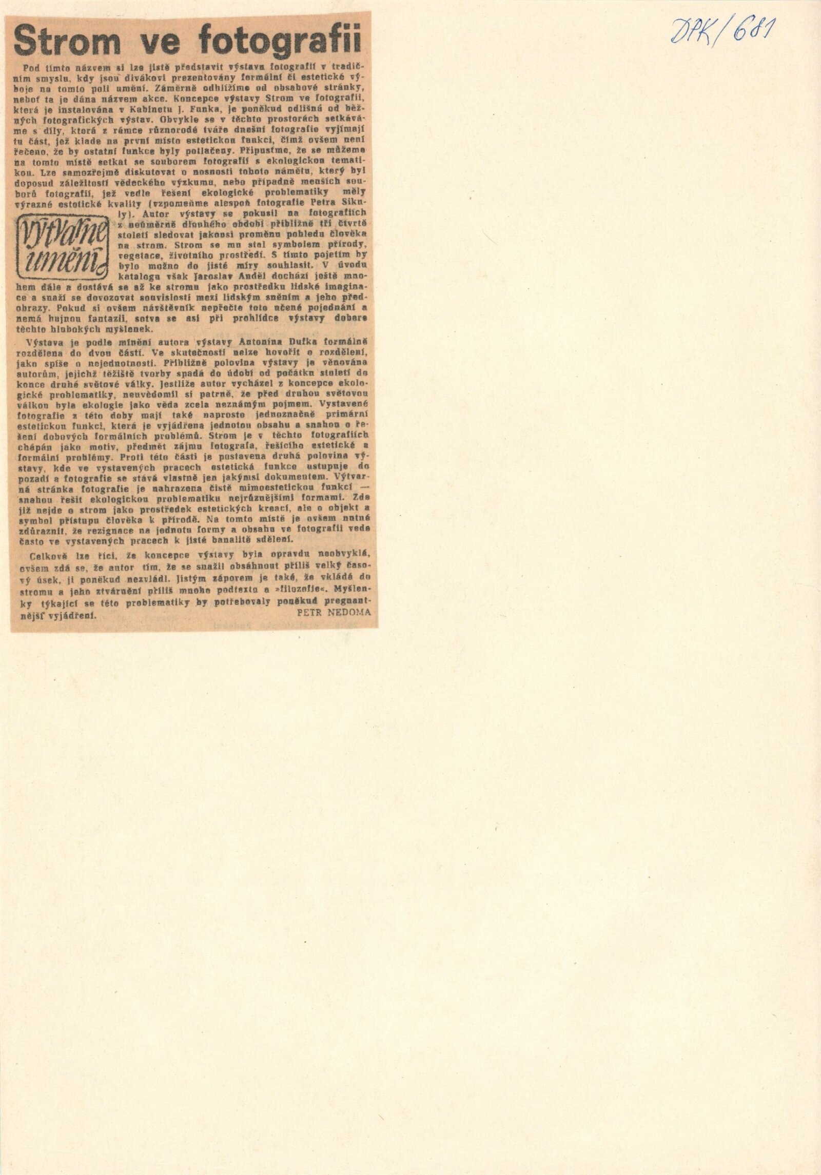 Strom. Fotografie: Kabinet fotografie J. Funka, 165. výstava, Dům pánů z Kunštátu 6. 10. – 5. 11. 1978 / Text Jaroslav Anděl. - Brno: DUmB, 24 s., obr. DPK 681; MZK; MG