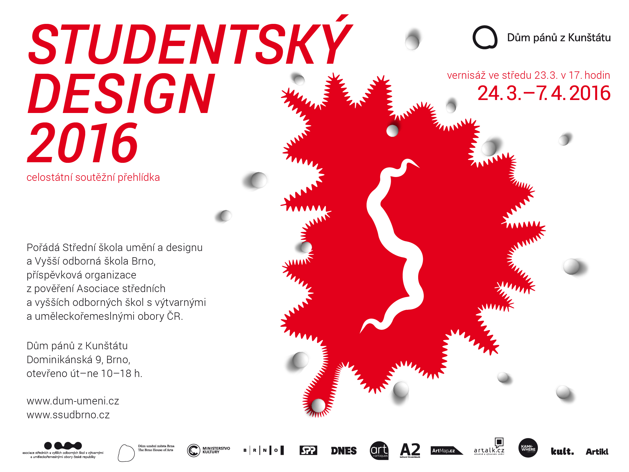 Studentský design 2016 – soutěž pro žáky a studenty středních a vyšších odborných škol odehrávající se v pěti kategoriích: produktový design, grafický design, oděv, sklo, multimédia. Ve velké většině se jedná o práce absolventské, maturitní, příp. klauzurní. Vystavené práce jsou tak přehlídkou úrovně středních uměleckých škol celé republiky. Pořádá Střední škola umění a designu v Brně.