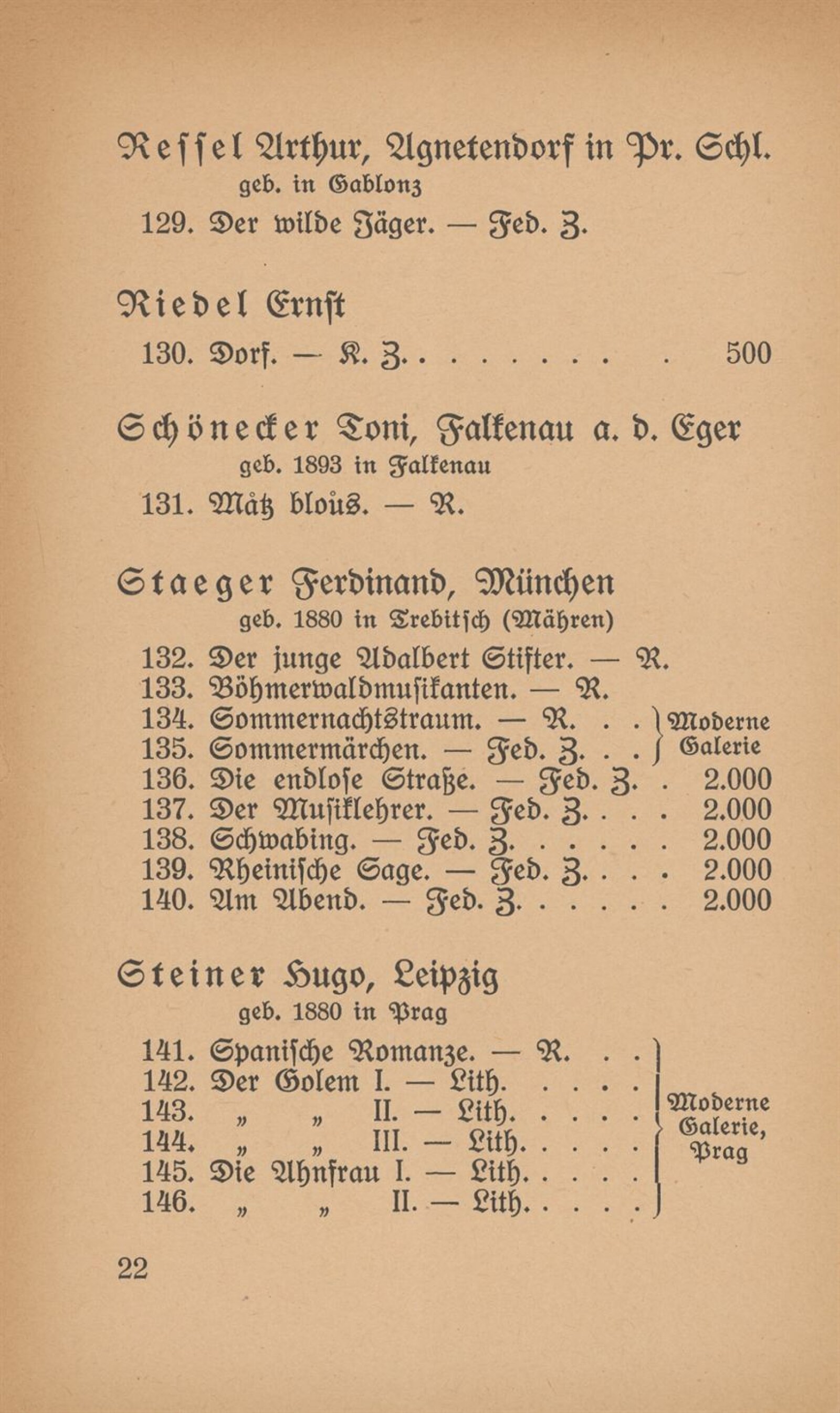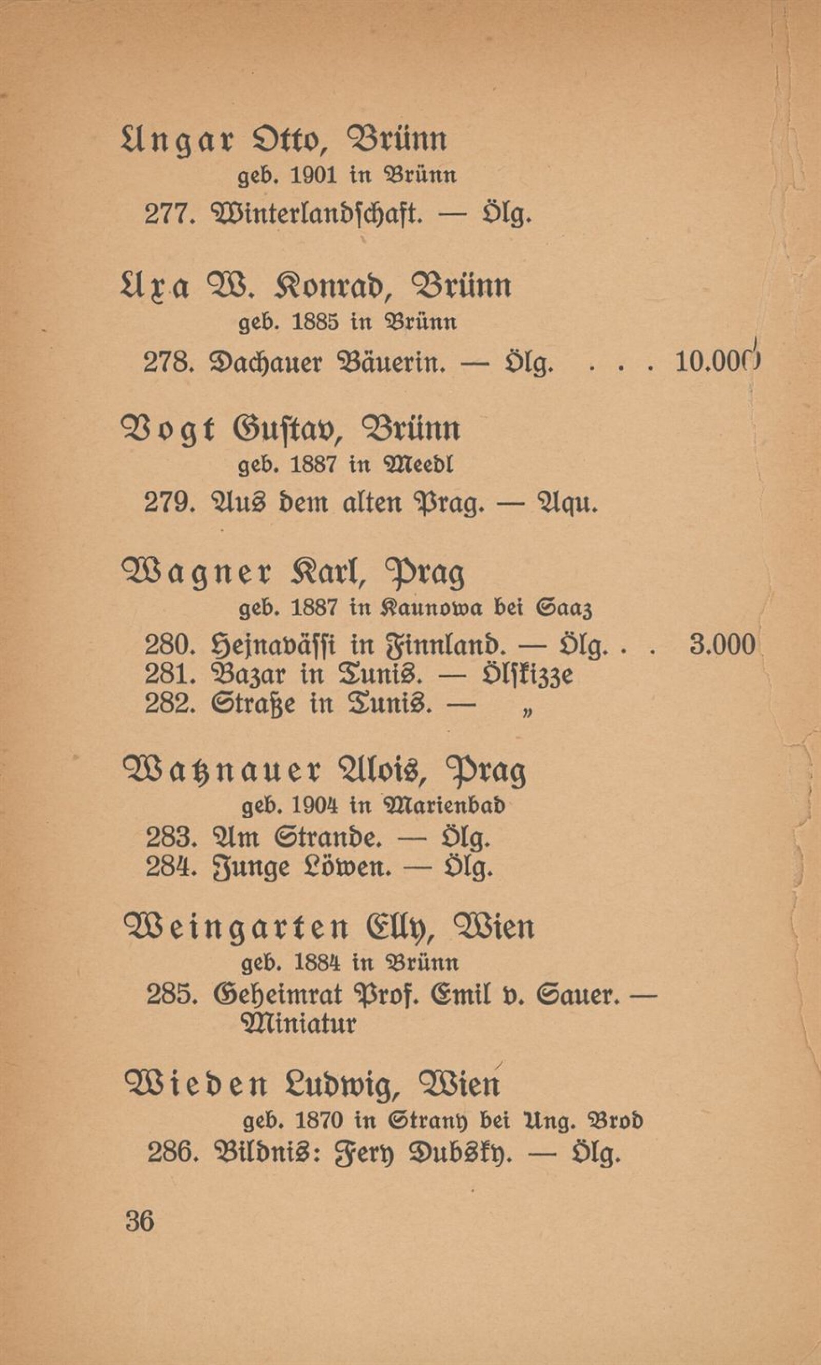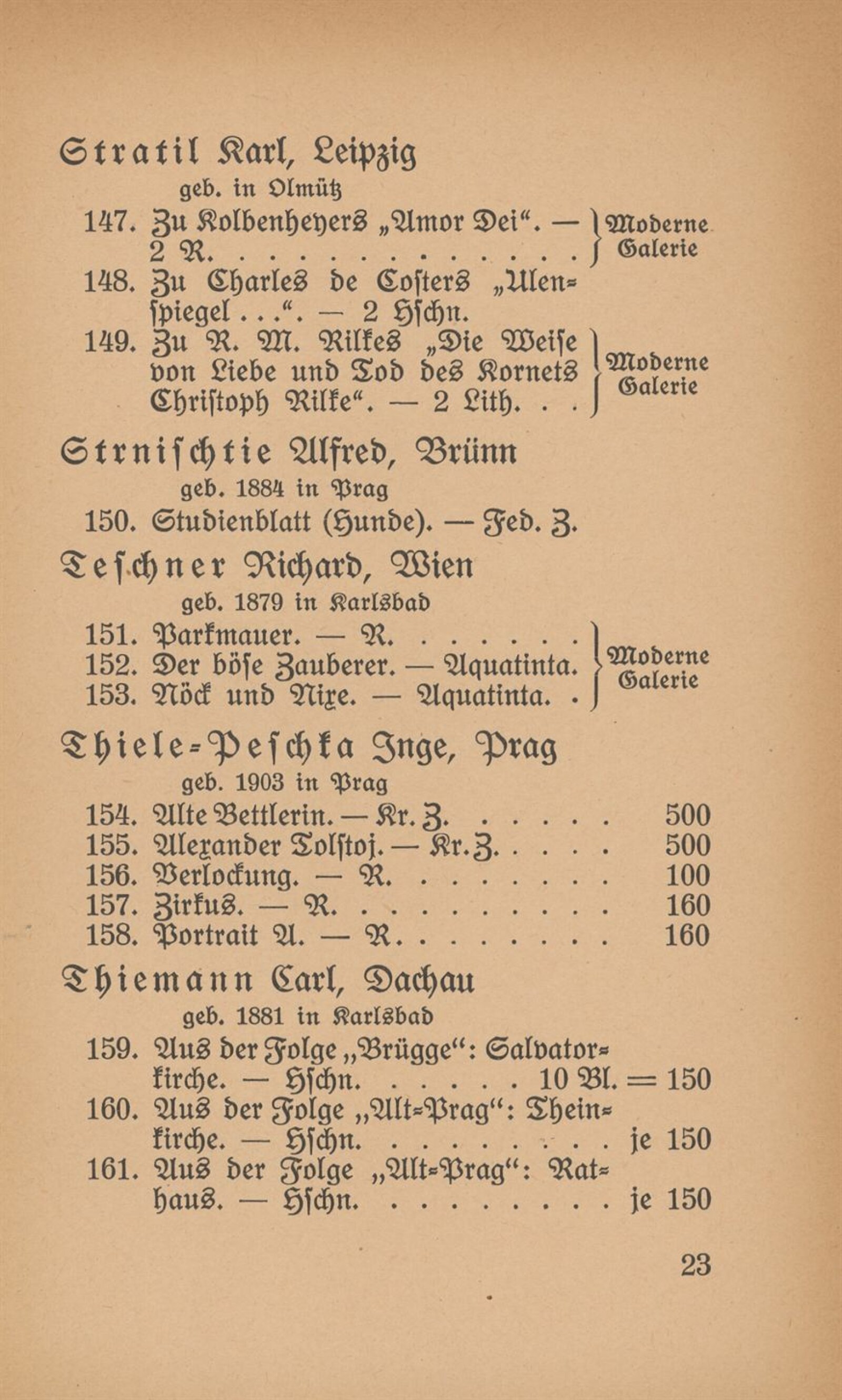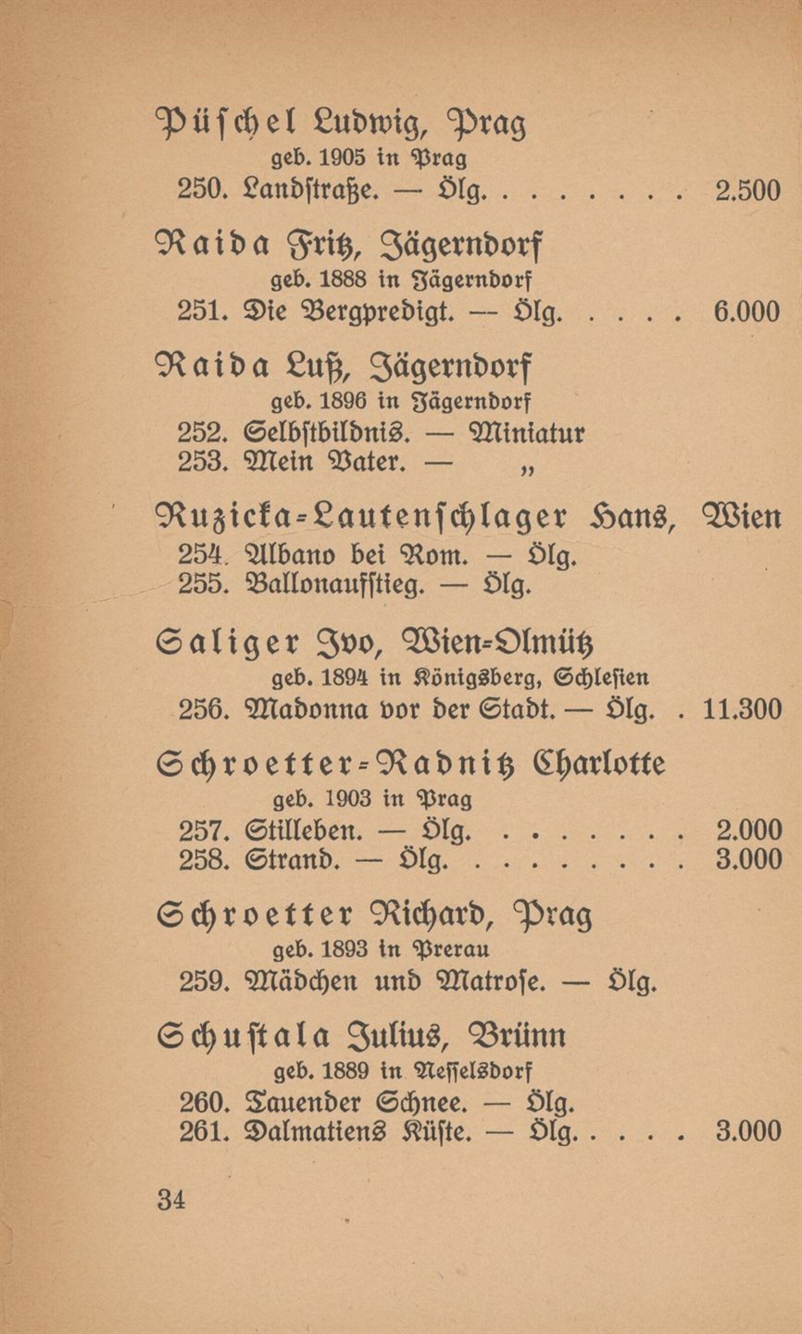 Hugo Baar, Franz Barwig, Leopold Bauer, Bruno Beran, Paul Berger-Bergner, Felix Bibus, Rudolf Bitzan, Gustav Böhm, B. Böhm, August Brömse, Anton Bruder, Samuel Brunner, Hans Canon, Eduard Csank, Elfe Csank, Franz Dietl, Alfred Dorn, Mary Duras, Zoltan Egri, Karl Eichhoff, Friz Ehlotzky, Heinrich Fanta, Friedrich Feigl, Karl Fischer, Leopold Fitz, Richard Fleißner, Hugo Flögel, Paul Gebauer, Rudolf Geisler, Lilli Göbl-Brandhuber, Erwin Görlach, Georg Grohmann, Franz Gruß, August Hablik, Anton Hanak, Eugenie Hauptmann-Sommer, Emanuel Hegenbarth, Josef Hegenbarth, Emil Helzel, Walter Hermann, Anton Hlavaczek, Hugo Hodiener, Josef Hoffman, Oswald Hofmann, Adolf Hölzel, Franz Homolatsch, Heinrich Hönich, Wenzel Franz Jäger, Alexander Jakesch, Rudolf Jelinek, Oskar Just, Eugen von Kahler, Engelbert Kaps, Rudolf Karasek, Josef Eberhard Karger, Georg Kars, Fritz Kausek, Walter Klemm, Reinhold Koeppel, Anton Kolig, P. A. Kopetzky, Maxim Kopf, Karl Korschann, Karl Krattner ml., Karl Krattner st., Rudolf Krauß, Alfred Kubin, Willy Lang, Hermine Laukota, Hugo Lederer, Dorette Loew, Bertold Löffler, Theodor Malléner, Adolf Mayerl, Ludwig Martin, Rudolf Mather, Moriz Melzer, Franz Metzner, Otto Mlčoch, Raimund Mosler, Erwin Müller, Richard Müller, Fred Neumann, Anton Nowak, Willy Nowak, Josef Obeth, Viktor Oppenheimer, Walter Orliczek, Emil Orlik, Rudolf Otto, Artur Payr, Tina Pezellen, Jost Piestch, Franz Plischke, Hilde Pohl-Stein, Josef Prinke, Ludwig Püschel, Fritz Raida, Luß Raida, Fritz Reiner, Arthur Ressel, Ernst Riedel, Hans Ruzicka-Lautenschlager, Ivo Saliger, Martha Schöpflin, Toni Schönecker, Charlotte Schroetter-Radnitz, Richard Schroetter, Julius Schustala, Fritz Slawik, Rudolf Sokol, Oskar Spielmann, Sidonie Springer, Wilhelm Srb-Schloßbauer, Ferdinand Staeger, Hugo Steiner, Karl Stratil, Alfred Strnischtie, Richard Teschner, Franz Thiele, Inge Thiele-Peschka, Th. Thiele, Carl Thiemann, Walter Trier, Alfred Thuma, Carl Maria Thuma, Emil Tranquillini, Karl Truppe, Otto Ungar, Franz Urban, Wilhelm Konrad Uxa, Gustav Vogt, Oswald Voh, Karl Wagner, Gabriele Waldert, Alois Watznauer, Elly Weingarten, Ludwig Wieden, Karl Wollek, Hermann Zettlitzer