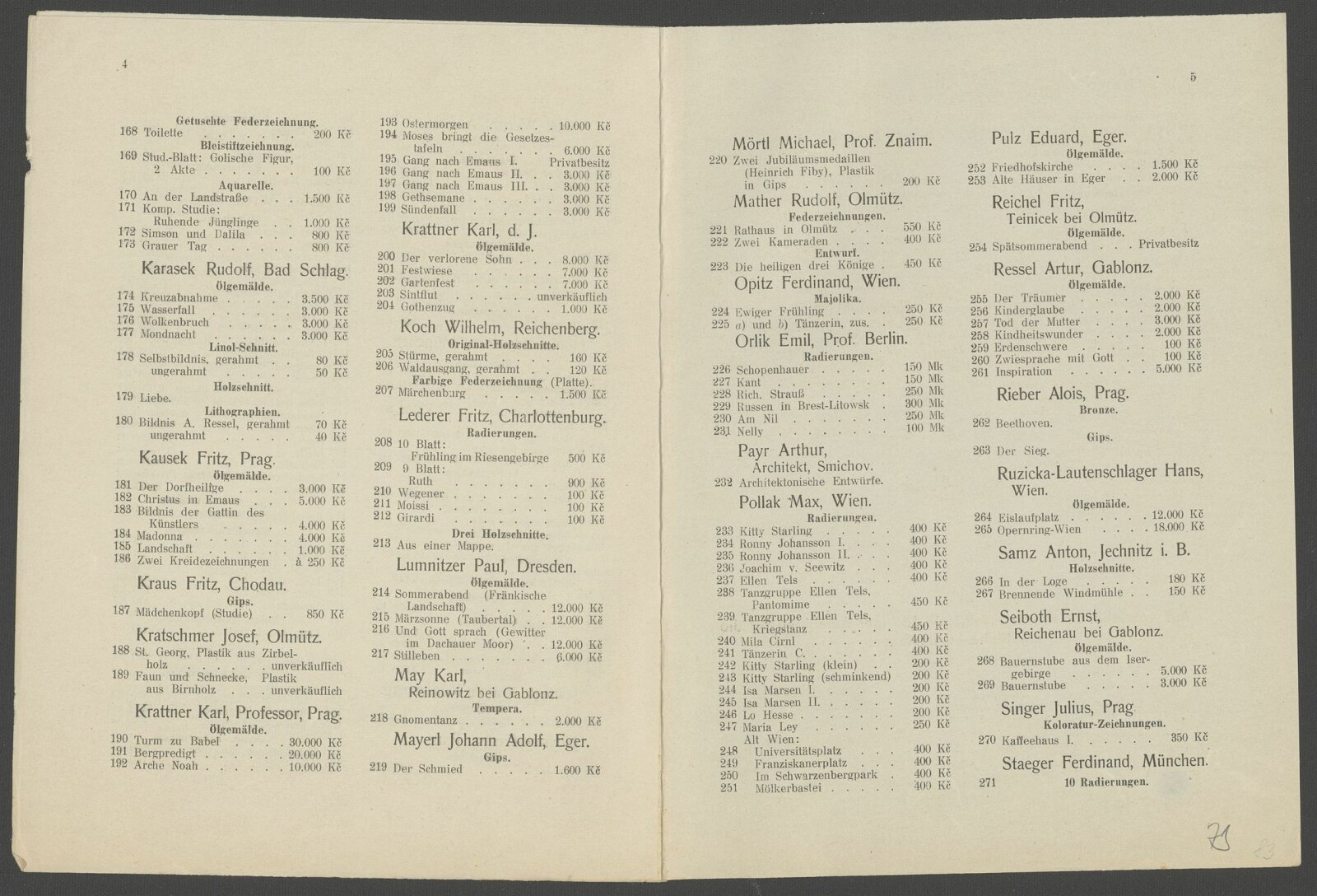 Alois Berger, Rudolf Bitzan, P. A. Brömse, Hans Canon, Franz Dietl, Lili Gödl-Brandhuber, Jaques Groag, Wenzel Hablik, Eugenie Hauptmann-Sommer, Josef Hegenbarth, Emil Helzel, Norbert Hochsieder, Heinrich Hönich, V. J. Jäger, Rudolf Jakubek, Georg Jilovsky, Alfred Justitz, Rudolf Karasek, Fritz Kausek, Maxim Kopf, Fritz Kraus, Josef Kratschmer, Karl Krattner, Karl Krattner (d. J.), Wilhelm Koch, Fritz Lederer, Paul Lumnitzer, Karl May, Johann Adolf Mayerl, Michael Mörtl, Rudolf Mather, Ferdinand Opitz, Emil Orlik, Arthur Payr, Josef Pietsch, Max Pollak, Eduard Pulz, Fritz Reichel, Artur Ressel, Alois Rieber, Hans Ruzicka-Lautenschlager, Anton Samz, Ernst Seiboth, Julius Singer, Ferdinand Staeger, Hugo Steiner, Theodor Sternhell, Franz Thiele, Karl Wagner, Maria Wilfert