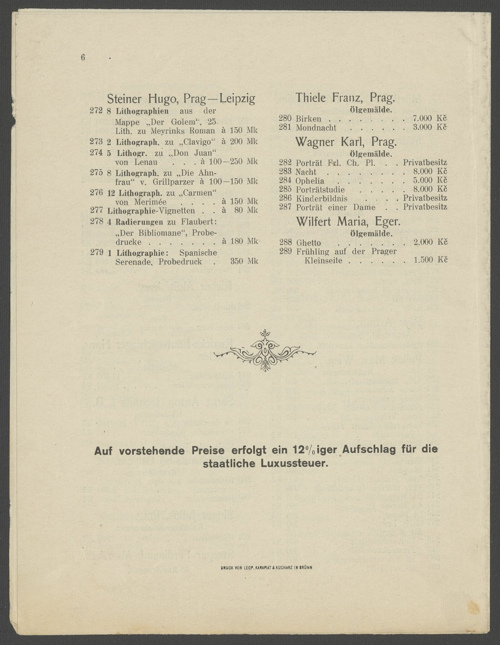 Sudetendeutsche Künstler: 143. Ausstellung des Mährischen Kunstvereines 27. 3. – 24. 4. 1921/ Brünn: Mährischer Kunstverein, 1921. – 6 s. – MZA; AMB