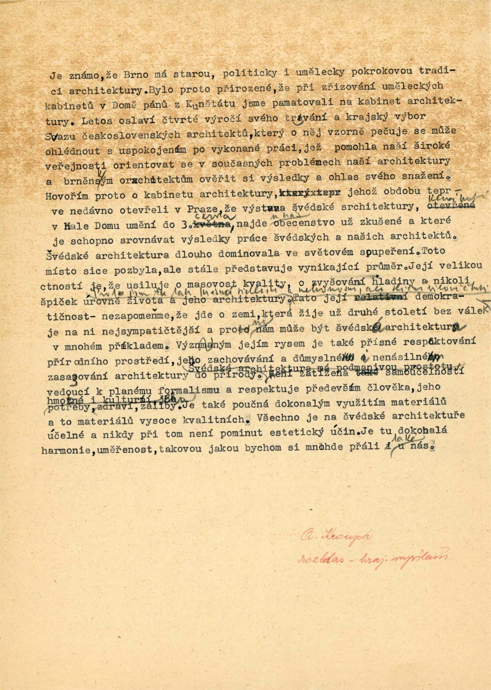text Adolfa Kroupy pro rozhlas, korespondence (o převzetí výstavy z Bratislavy a dalším předání do Prahy), recenze v tisku
