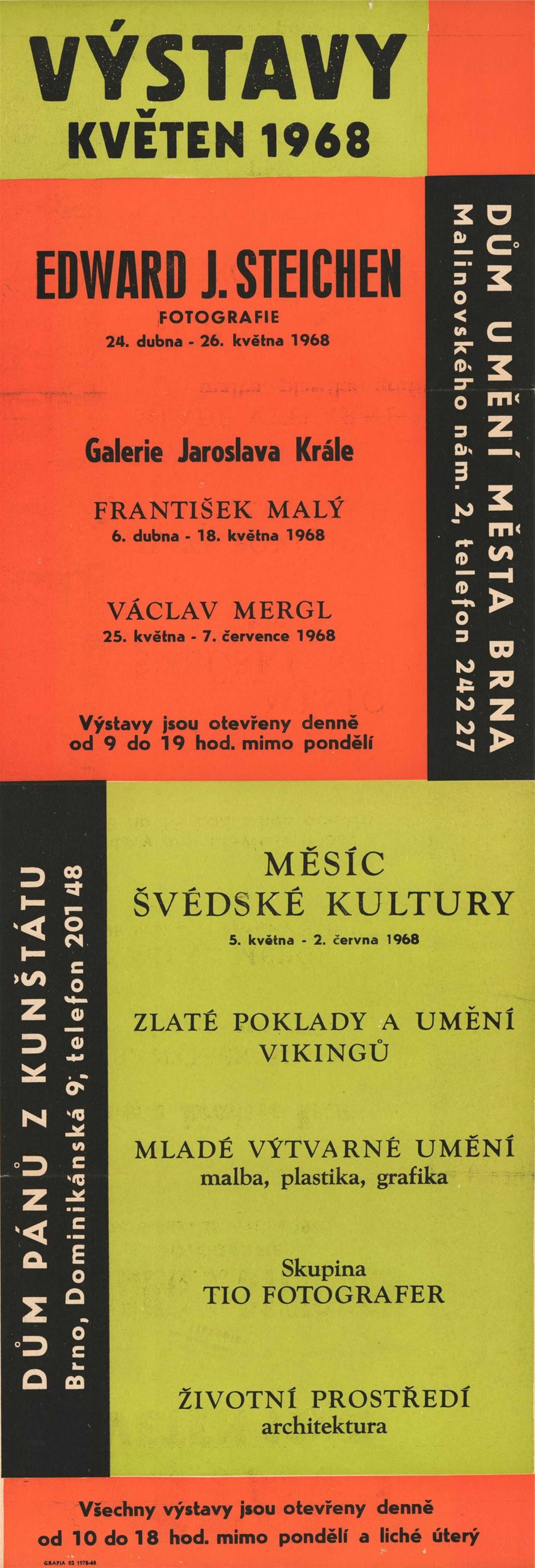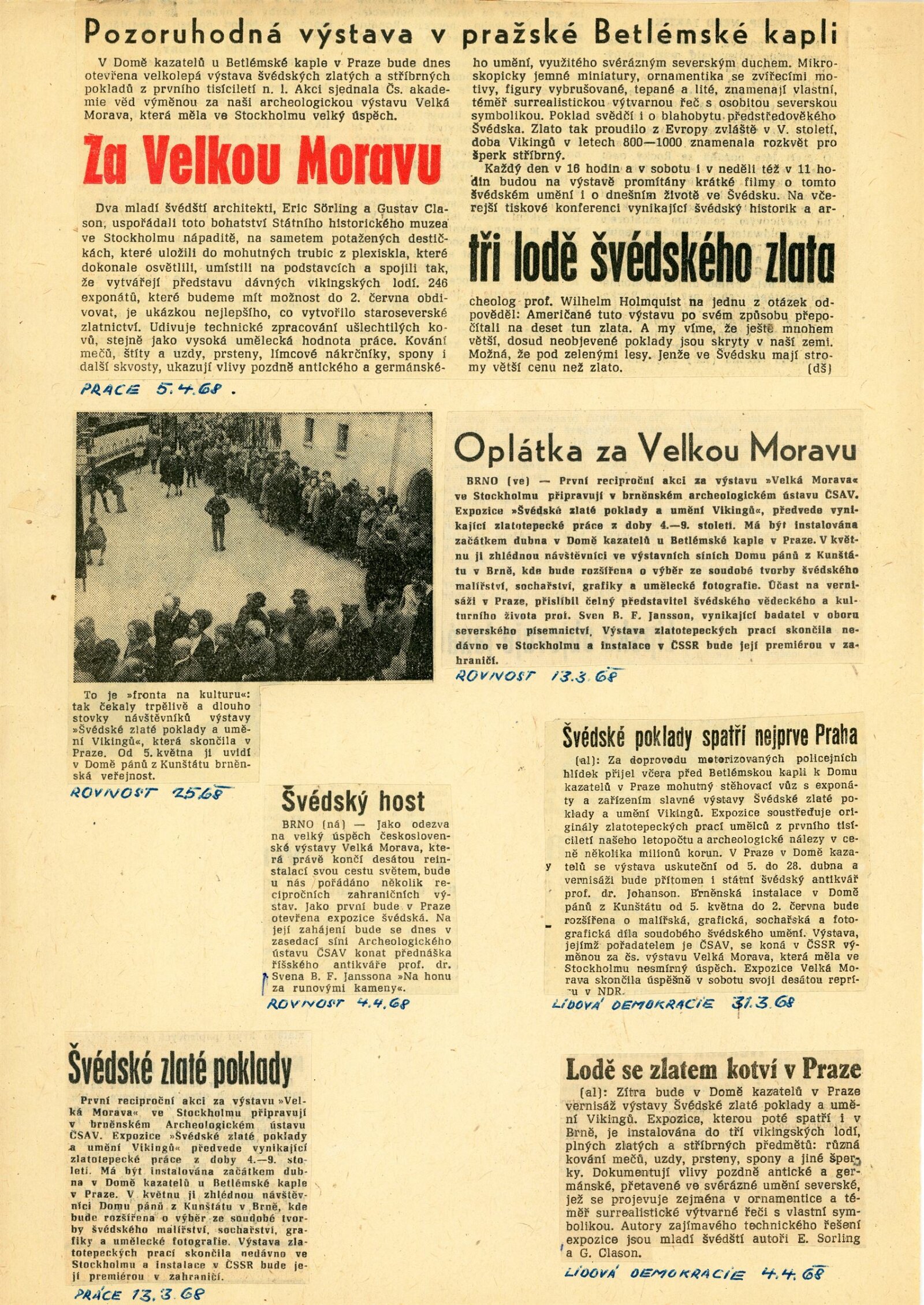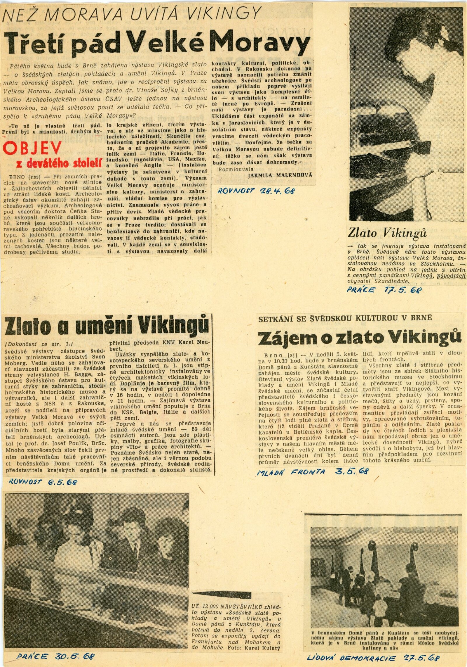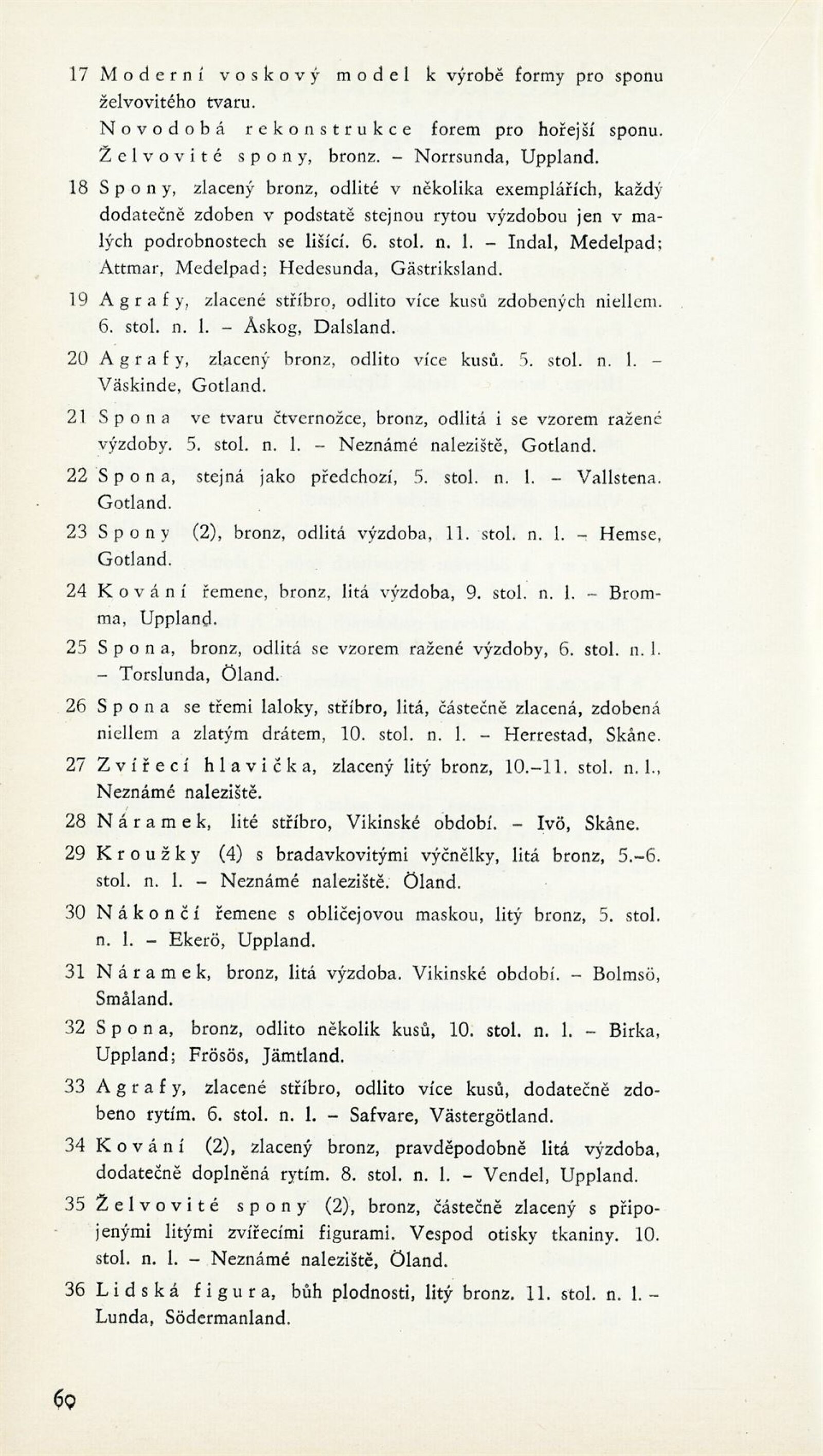 Švédské zlaté poklady a umění Vikingů: Dům umění města Brna / Dům pánů z Kunštátu, 1. patro, 5. 5. – 2. 6. 1968 / V rámci měsíce švédské kultury. Společný katalog. Švédské zlaté poklady a umění Vikingů. Katalog výstavy Státního historického muzea ve Stockholmu Praha – Brno, 1968 / Texty: Bedřich Svoboda a řada švédských vědců. – Praha: Československá akademie věd, 1968. – 11, 71 s., 24 s., obr. příl., DPK 377